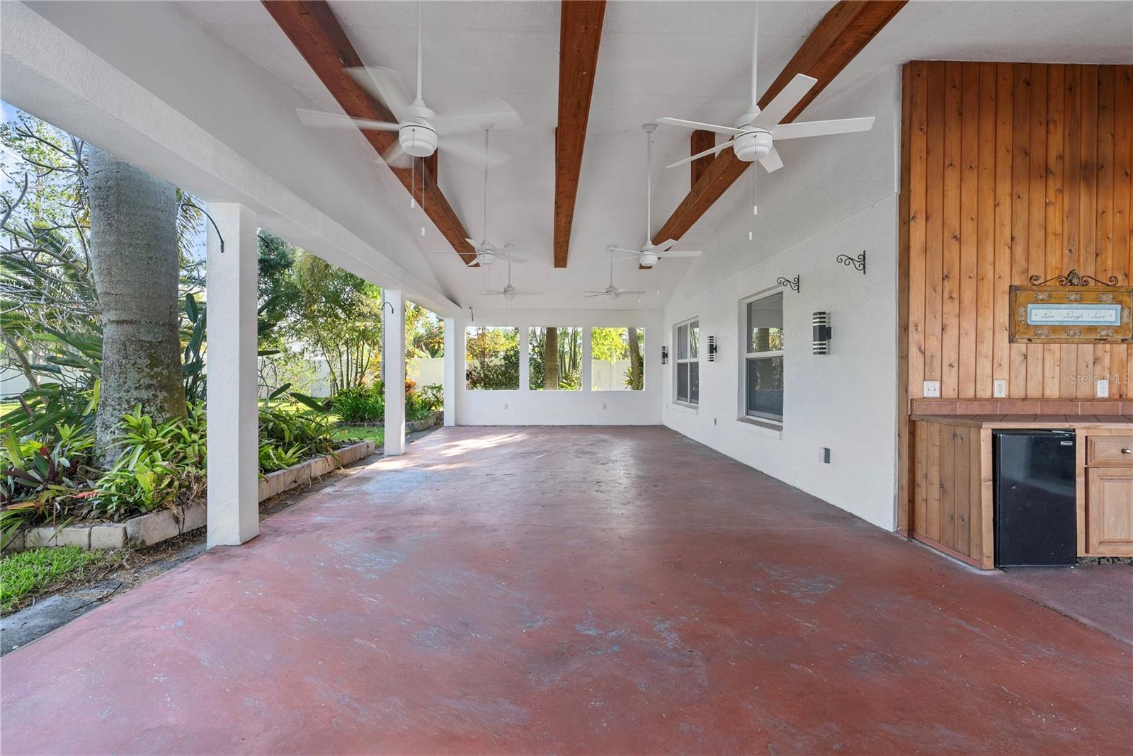 A Hidden Oasis – Custom Modern Home in Serene Cul-de-Sac . 3 Bedroom with Bonus Den and option to convert into a 4th bedroom! The bonus room has double doors and one of the most spectacular views to the botanical backyard! This stunning custom-designed home is truly a hidden gem, tucked away in a peaceful cul-de-sac. Enjoy the perfect blend of privacy and convenience—just minutes from stores and attractions, yet ideally situated on the outskirts to escape the hustle and bustle of traffic. Step inside and be welcomed by a modern, open-concept layout featuring elegant column walls and an abundance of natural light that flows throughout the home, creating a bright and inviting atmosphere—ideal for entertaining. The heart of the home lies in the expansive backyard oasis. With over 20 years of lovingly maintained landscaping, the yard boasts lush, mature foliage and exotic flowers that bloom vibrantly throughout the year. A true Miami-style retreat, it’s fully enclosed with a vinyl privacy fence and offers the perfect setting to enjoy your morning coffee or unwind with evening sunsets. Highlights of the backyard include: •A large cement porch with thoughtfully placed cut-out windows to preserve the view •A built-in mini bar •Ceiling fans for year-round comfort. The interior continues to impress with: •Hurricane-impact windows •French doors off the breakfast nook, providing easy access to the backyard •Updated tile flooring and modern trim throughout •New ceiling fans and light fixtures inside and out •Spacious walk-in pantry• Redesigned master bedroom closet with custom storage •Renovated master bath with new plumbing, fixtures, faucets, and toilets •Additional lighting outlets ideal for LED accent strips above kitchen cabinets• New A/C compressor and heat pump fan •Central vacuum system (equipment needed to activate) •Indoor attic storage space added to guest bedroom, to preserve items from the heat. Additional perks include Bonus Additional Den off the Master Bedroom, buyer can possibly turn into bedroom. Architectural roof shingles, an additional refrigerator in the garage and a transferable security system (accessible via app).With photo documentation available of the spectacular seasonal blooms, this home is truly a must-see. Don’t miss your opportunity to own this private paradise that reflects pride of ownership at every turn!