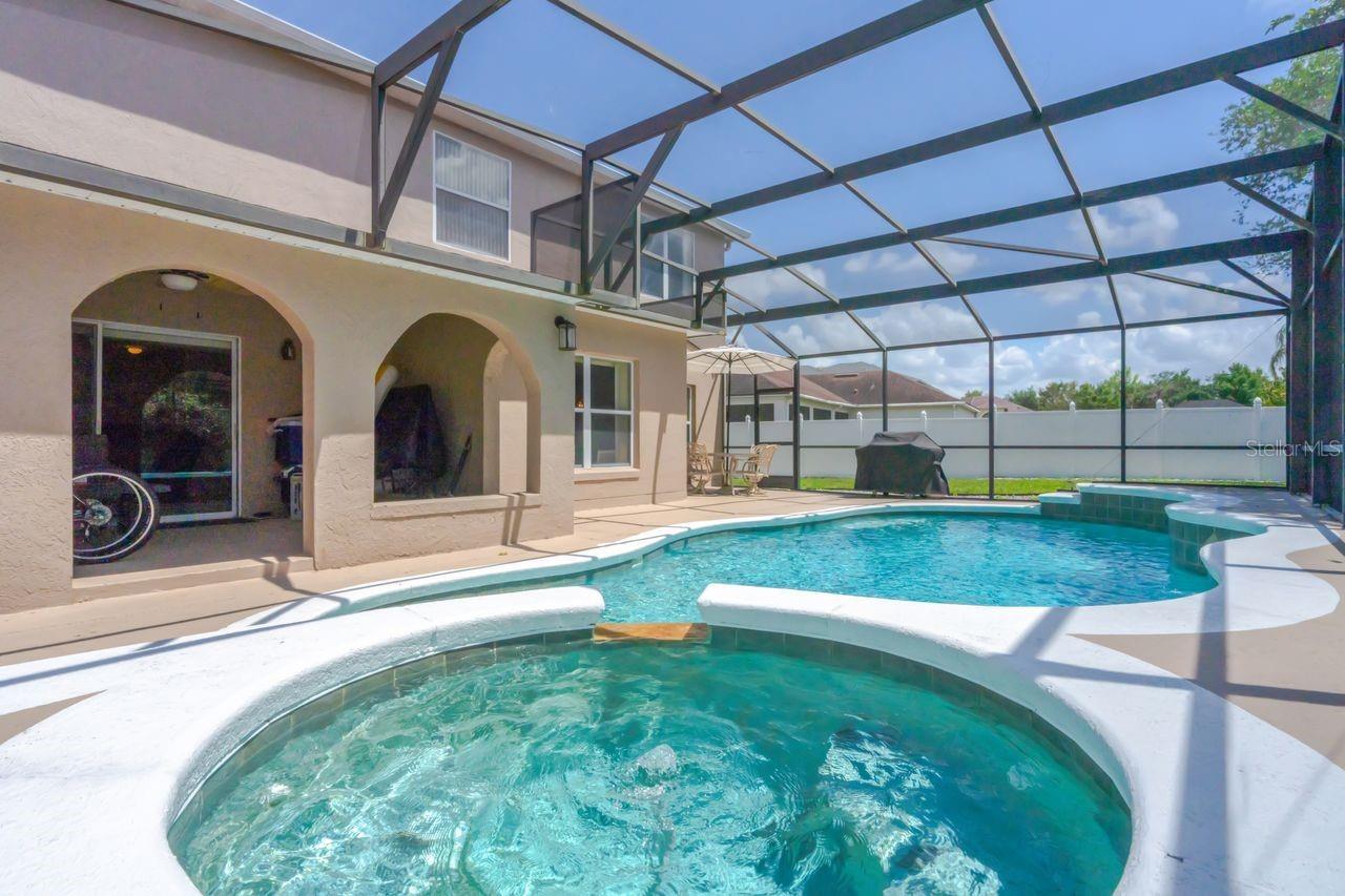 Welcome to your dream two-story home in the heart of Kissimmee! This beautifully updated 4-bedroom, 2.5-bathroom pool home offers 2,847 sq ft of spacious living on a generous 8,518 sq ft lot. From the moment you walk in, you're greeted by soaring ceilings, elegant tile flooring throughout, and a warm, modern ambiance that instantly feels like home. The heart of the home is the gourmet kitchen — a true chef’s delight — featuring sleek countertops, stainless steel appliances, and ample cabinet space for all your storage needs. Whether you're whipping up weeknight meals or entertaining guests, this kitchen is as functional as it is stylish. Step outside to your own private backyard oasis, where a sparkling screened-in pool and built-in jacuzzi await. The expansive patio area offers plenty of space for lounging, grilling, and enjoying the Florida sunshine year-round — ideal for weekend gatherings or quiet evening soaks under the stars. Upstairs, you'll find all four bedrooms, including a spacious primary suite with a spa-like ensuite bath and plenty of room to relax. Additional highlights include a 2-car garage, tons of natural light, and a prime location within a desirable HOA community. Situated just minutes from major highways and world-renowned attractions like Disney, Universal, and more, this home offers the perfect blend of luxury, convenience, and comfort. Don’t miss your chance to own a slice of paradise in Kissimmee — schedule your private showing today!