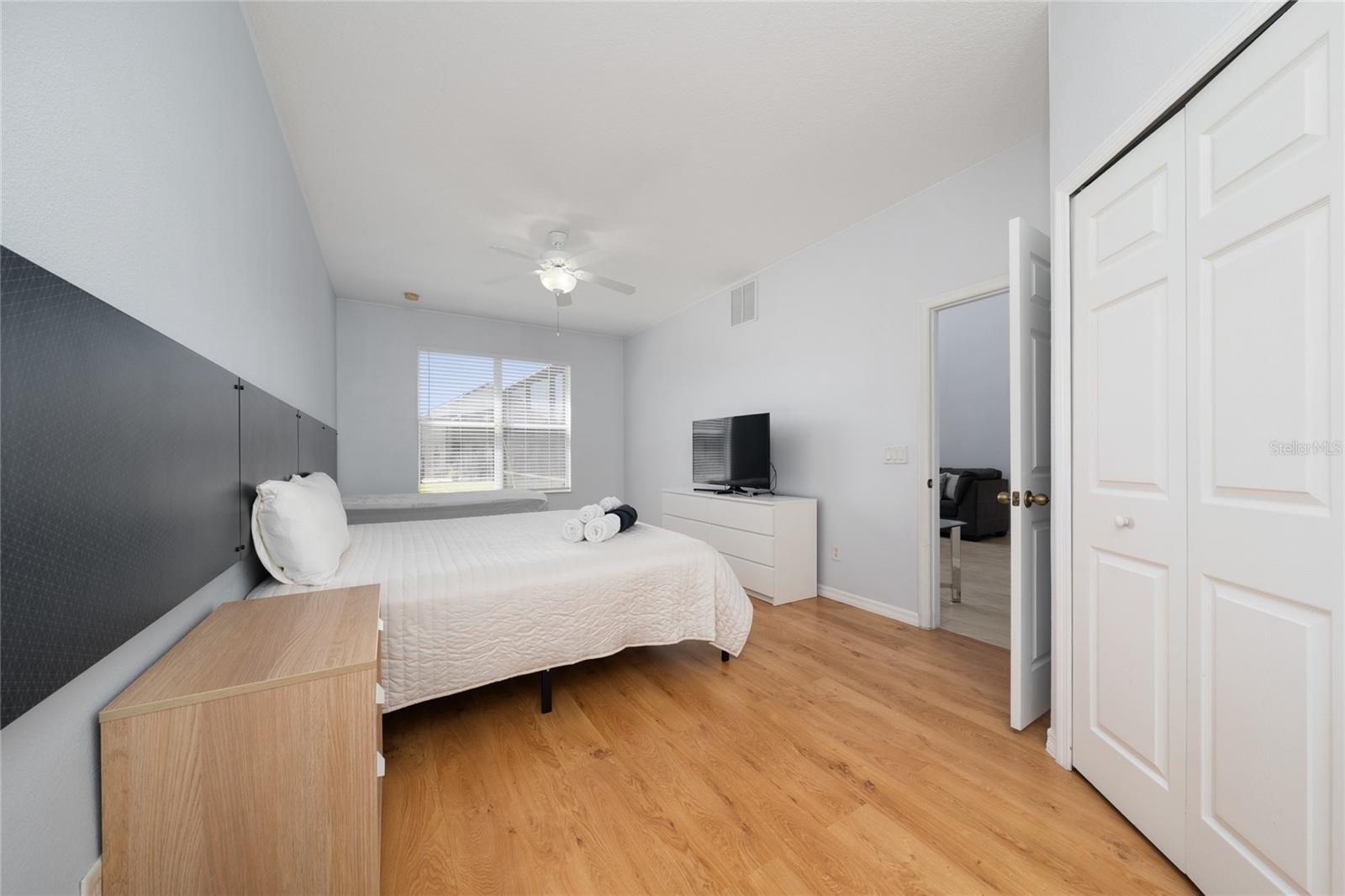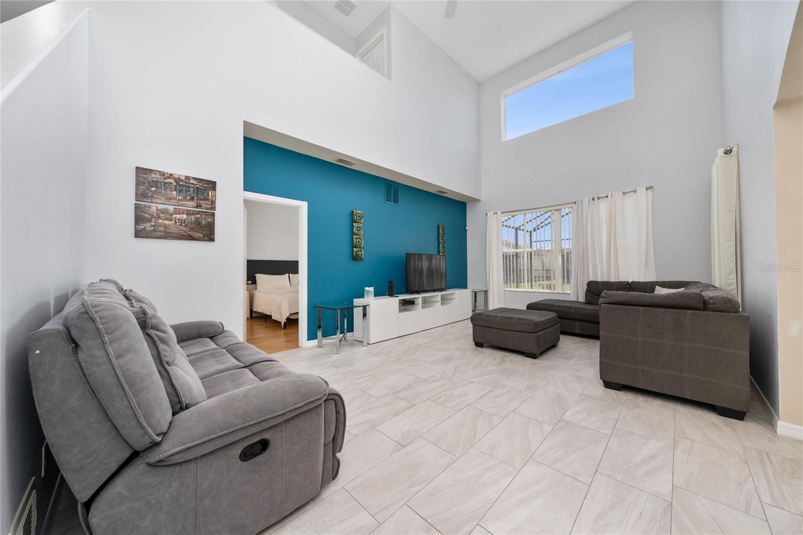 FOR SALE!! Beautiful fully furnished, two story, 5 bedroom house at Crystal Cove! Open floor plan includes a large high ceiling living room and a separated dinning room. Flooring is with tile and laminate throughout the house. The primary bedroom is downstairs and the other 4 bedrooms upstairs. It has a covered back porch with a screened-in private pool. Crystal Cove is a gated community with resort-style amenities such as: clubhouse, community pool, fitness center and playground. Excellent location, close to shopping, dinning, schools and major highways. This property can be your primary residence or an investment. Crystal Cove is zoned for residence, and/or short and long term rentals. A MUST SEE!!