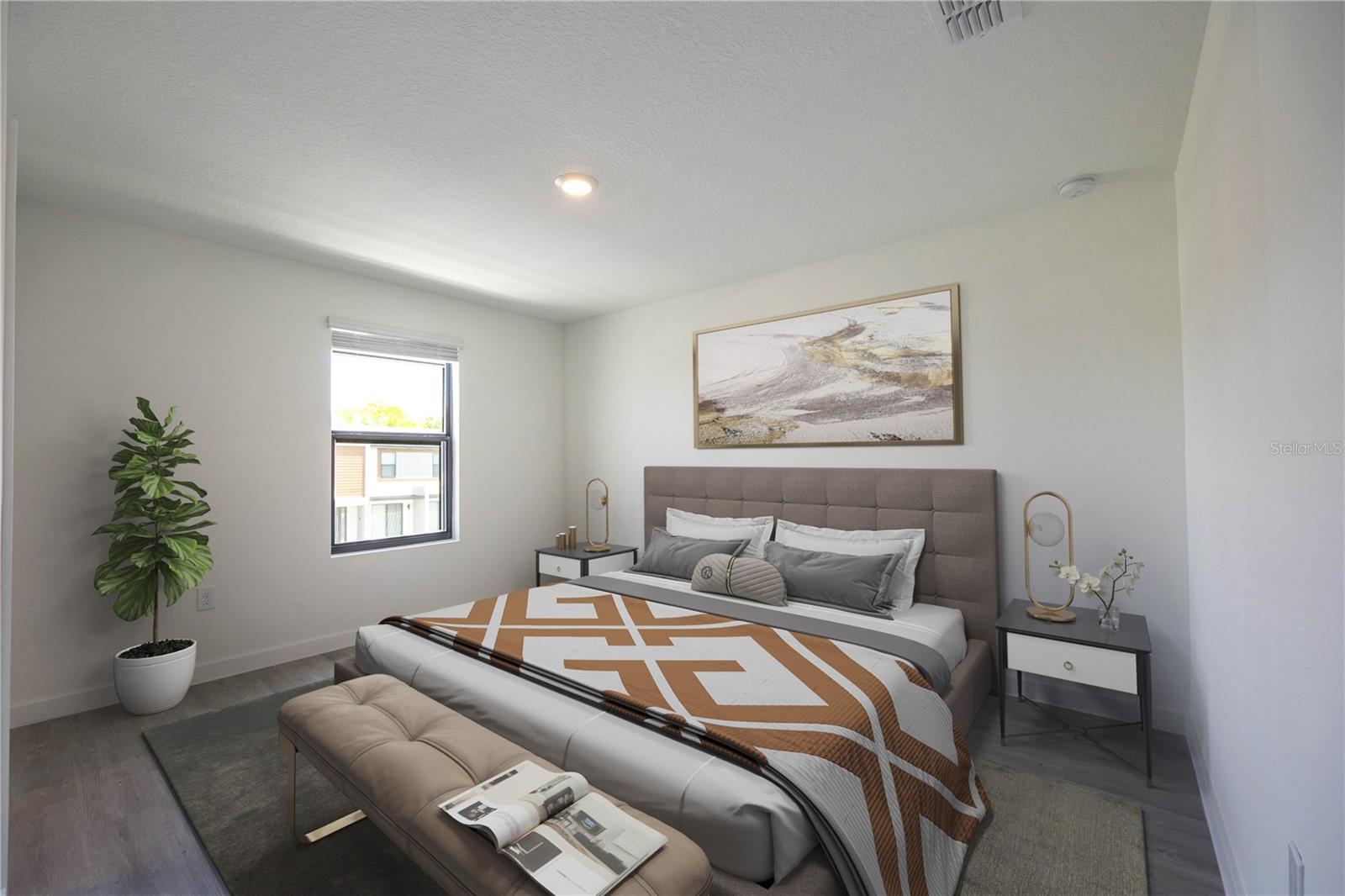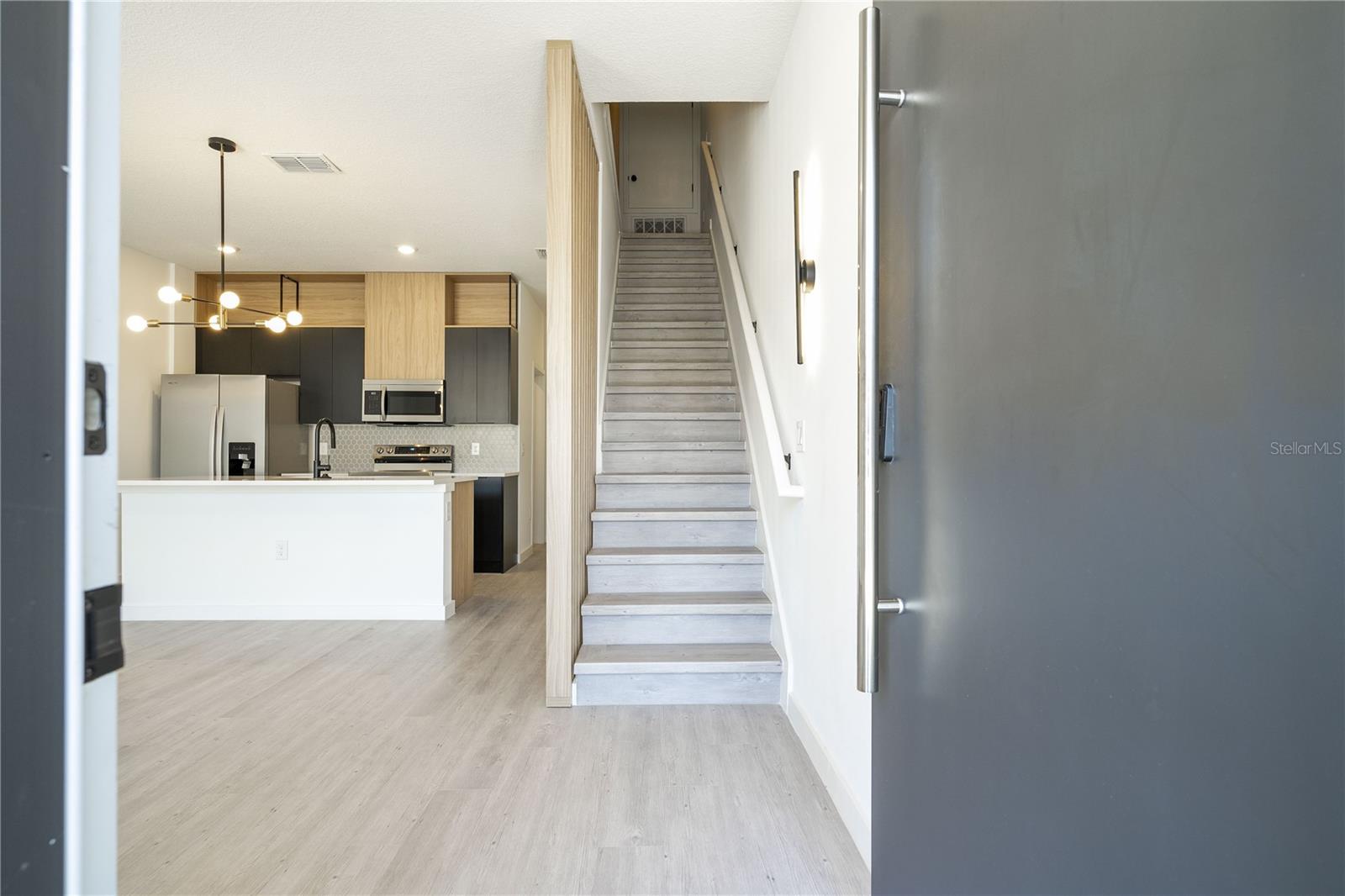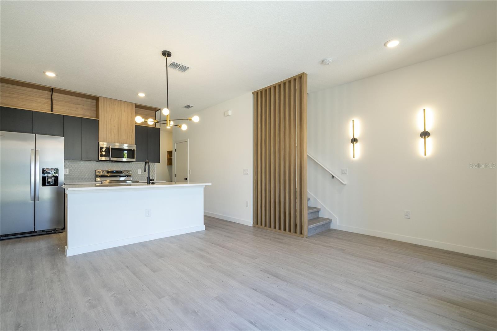 One or more photo(s) has been virtually staged. Beautiful 3 bedrooms (all in suite with walk in closets) + loft Townhome in the desirable community The Hub at Westside. Modern and functional layout, with wood looking vinyl plank flooring and $20k in finish upgrades from the builder, including vinyl flooring in the whole house (no carpets), cabinets, wall panels, pendants and more. Kitchen with full appliances, beautiful quartz counter tops and modern hardware throughout the house. Also, the house has NO neighbors behind, giving extra privacy to the owner and guests. This home is available for short-term rent, long-term rent and/or residency. Gated community with a gym, clubhouse and a pool, and perfectly situated near the Disney parks, restaurants and shopping.