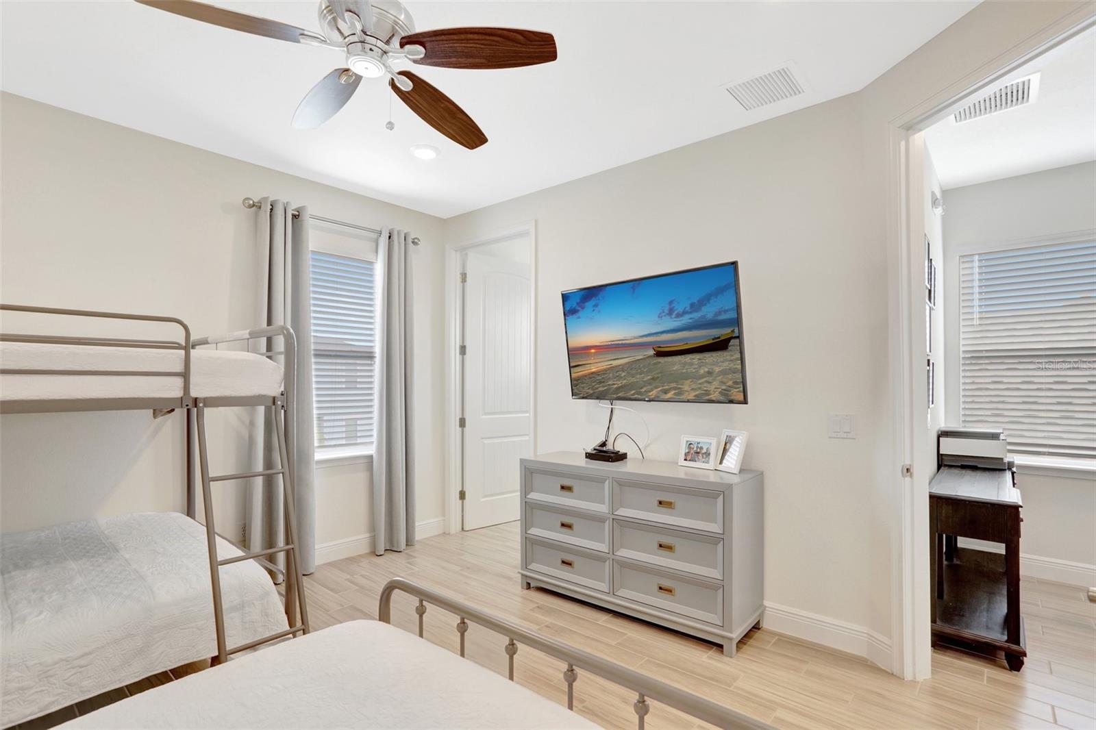 Your island-inspired escape awaits at 8044 Lost Shaker Ln inside the Margaritaville Resort Orlando! Live like you're always on vacation in this beautifully upgraded 3-story bungalow style home. Whether you're searching for a primary residence, a vacation home, or a successful short-term or long-term rental investment, this 4-bedroom, 4.5-bathroom tropical retreat checks all the boxes. Step inside to find 2,066 sq ft of bright, open-concept living space with a gourmet kitchen featuring quartz countertops, stainless steel appliances, and custom cabinetry, all flowing effortlessly into a spacious living and dining area perfect for entertaining or relaxing after a day at the parks. Each of the four bedrooms includes its own private en-suite bathroom, offering privacy and comfort for all guests or family members. The second and third floors include two private balconies, ideal for enjoying morning coffee or Florida sunsets with a breeze. Outside, enjoy a lushly landscaped paved patio area surrounded by palm trees, your own private oasis. This home comes fully furnished with many of Margaritaville’s signature furniture packages, so it's move-in or rent-ready from day one! Additional features include a tankless water heater, full-size washer and dryer, and ceiling fans throughout. As part of the vibrant Margaritaville Resort community, you'll have access to resort-style pools, a fitness center, a full-service spa, on-site water park, and the entertainment district of Sunset Walk, featuring restaurants, shops, and live music just steps away. Just minutes from Disney Parks and other major Orlando attractions, 8044 Lost Shaker Ln is a tropical dream come true, whether you live in it, rent it out, or both!