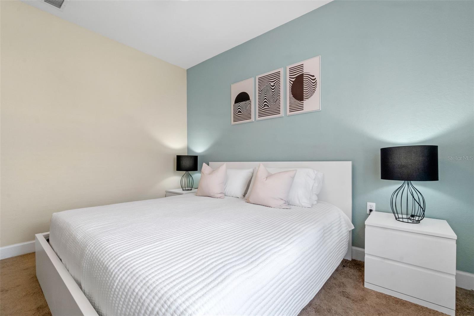 Location, Location, Location! Beautiful 3-bedroom, 2-bath fully furnished townhome in Lucaya Village Resort, Kissimmee, FL — just minutes from Walt Disney World and Orlando’s top attractions. This move-in-ready home features an open floor plan, modern kitchen with stainless steel appliances, and a spacious master suite with private bath conveniently located on the first floor, offering comfort, privacy, and easy access to the main living areas Enjoy resort-style amenities, including a heated pool, fitness center, clubhouse, playground, and 24-hour gated security. Perfect as a vacation home, short-term rental investment, or primary residence. Located near shopping, dining, and major highways.