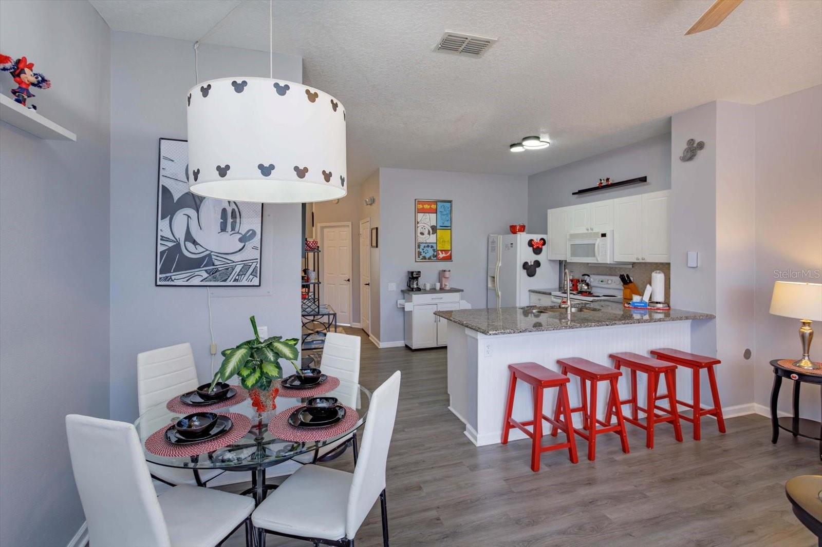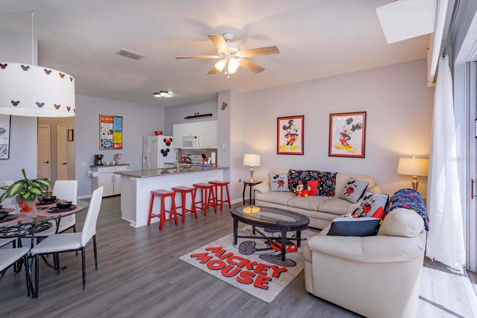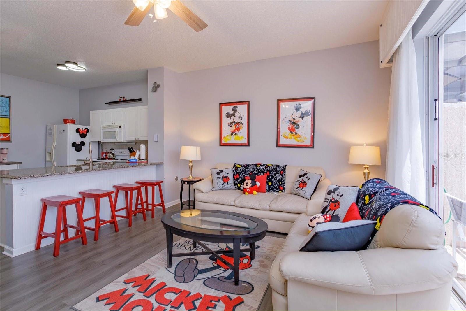 3Bedrooms with 3 attached bathrooms and PRIVATE POOL Guard Gated Community. 4 miles from Disney's Animal Kingdom. Sleeps 8. Short term rentals allowed. Turn Key everything comes with the sale. The whole house decor is Mickey inspired including bedding, furniture, and art work. First floor: Bedroom with queen size bed, bathroom enters from within bedroom. Fully equipped kitchen over abundance of appliances and dish-ware anything you or your guests will ever need. 2 large closets in the kitchen. The Pantry is loaded with larger bowls and small appliances for guest access. The second is for you, a locked closet with new extra sheets, towels, blankets and cleaning supplies. Newer granite countertops open to the family room with a leather couch and glass top dining table. Look out to your private pool and large green space while relaxing or eating. Swim anytime at midnight or before going to the parks! 2nd floor: 2 bedrooms. The primary has a king size bed, walk in closet with a second owner’s lock-off closet and en suite bathroom. Second bedroom has 2 sets of newer bunk beds to sleeps 4, walk in closet, and it’s own full bathroom. This could also be a secondary primary suite. Full washer, full dryer and extra pool towels are on the second floor for your convenience. The home has vinyl plank flooring throughout that is 4 years old. Windows have additional tint on the south side of the home. Roof is 5 years old. New air conditioner and hot water tank installed 9 mo. old. We are willing to show this great rental in between current booked guests.