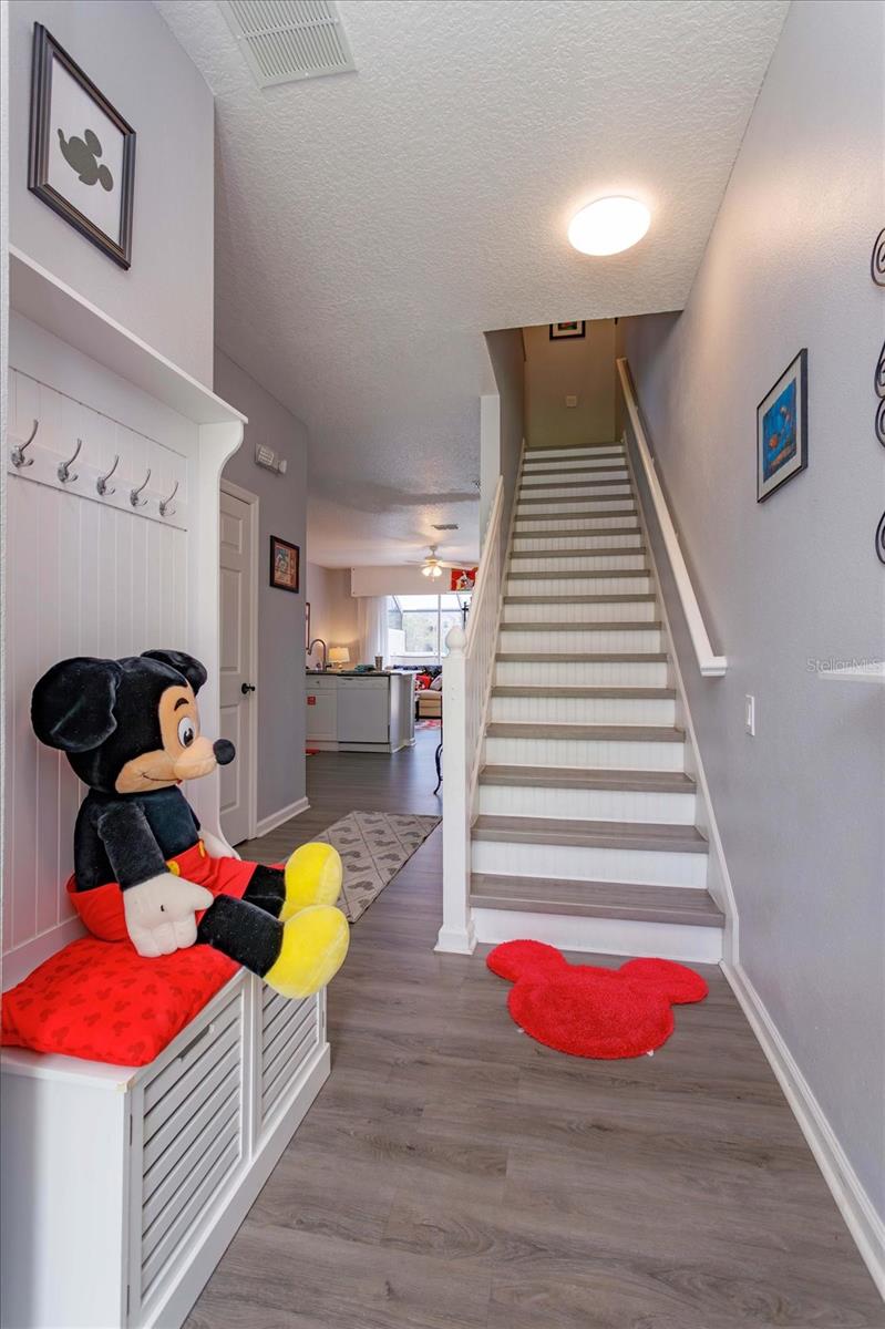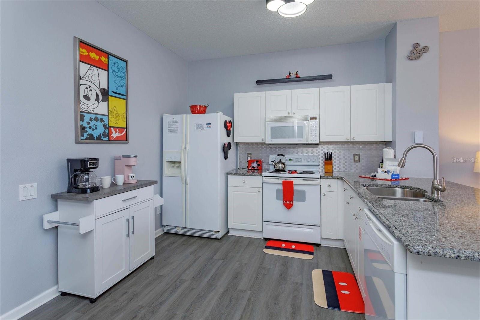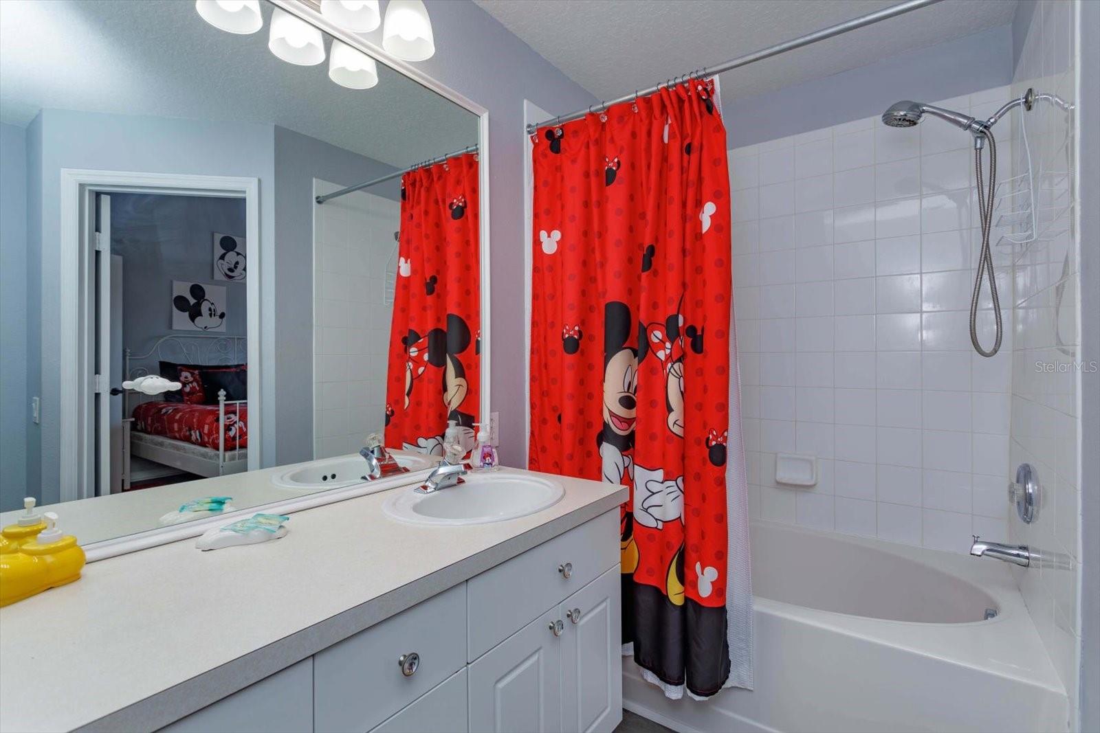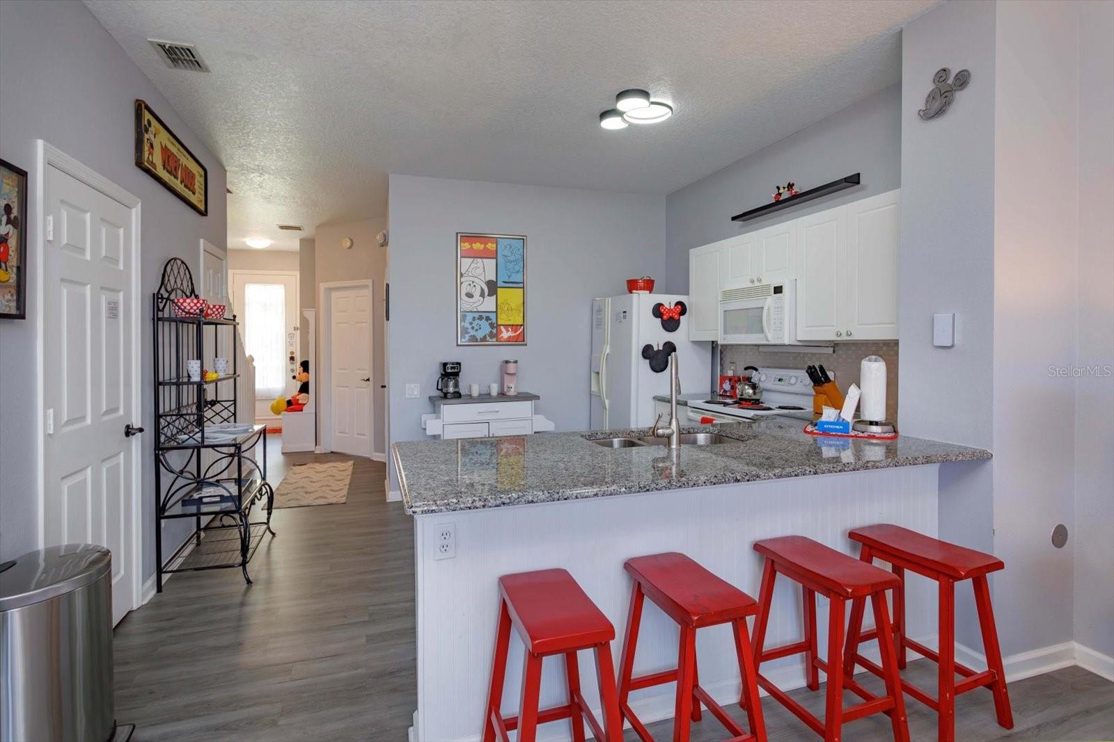 3Bedrooms with 3 attached bathrooms and PRIVATE POOL Guard Gated Community. 4 miles from Disney's Animal Kingdom. Sleeps 8. Short term rentals allowed. Turn Key everything comes with the sale. The whole house decor is Mickey inspired including bedding, furniture, and art work. First floor: Bedroom with queen size bed, bathroom enters from within bedroom. Fully equipped kitchen over abundance of appliances and dish-ware anything you or your guests will ever need. 2 large closets in the kitchen. The Pantry is loaded with larger bowls and small appliances for guest access. The second is for you, a locked closet with new extra sheets, towels, blankets and cleaning supplies. Newer granite countertops open to the family room with a leather couch and glass top dining table. Look out to your private pool and large green space while relaxing or eating. Swim anytime at midnight or before going to the parks! 2nd floor: 2 bedrooms. The primary has a king size bed, walk in closet with a second owner’s lock-off closet and en suite bathroom. Second bedroom has 2 sets of newer bunk beds to sleeps 4, walk in closet, and it’s own full bathroom. This could also be a secondary primary suite. Full washer, full dryer and extra pool towels are on the second floor for your convenience. The home has vinyl plank flooring throughout that is 4 years old. Windows have additional tint on the south side of the home. Roof is 5 years old. New air conditioner and hot water tank installed 9 mo. old. We are willing to show this great rental in between current booked guests.