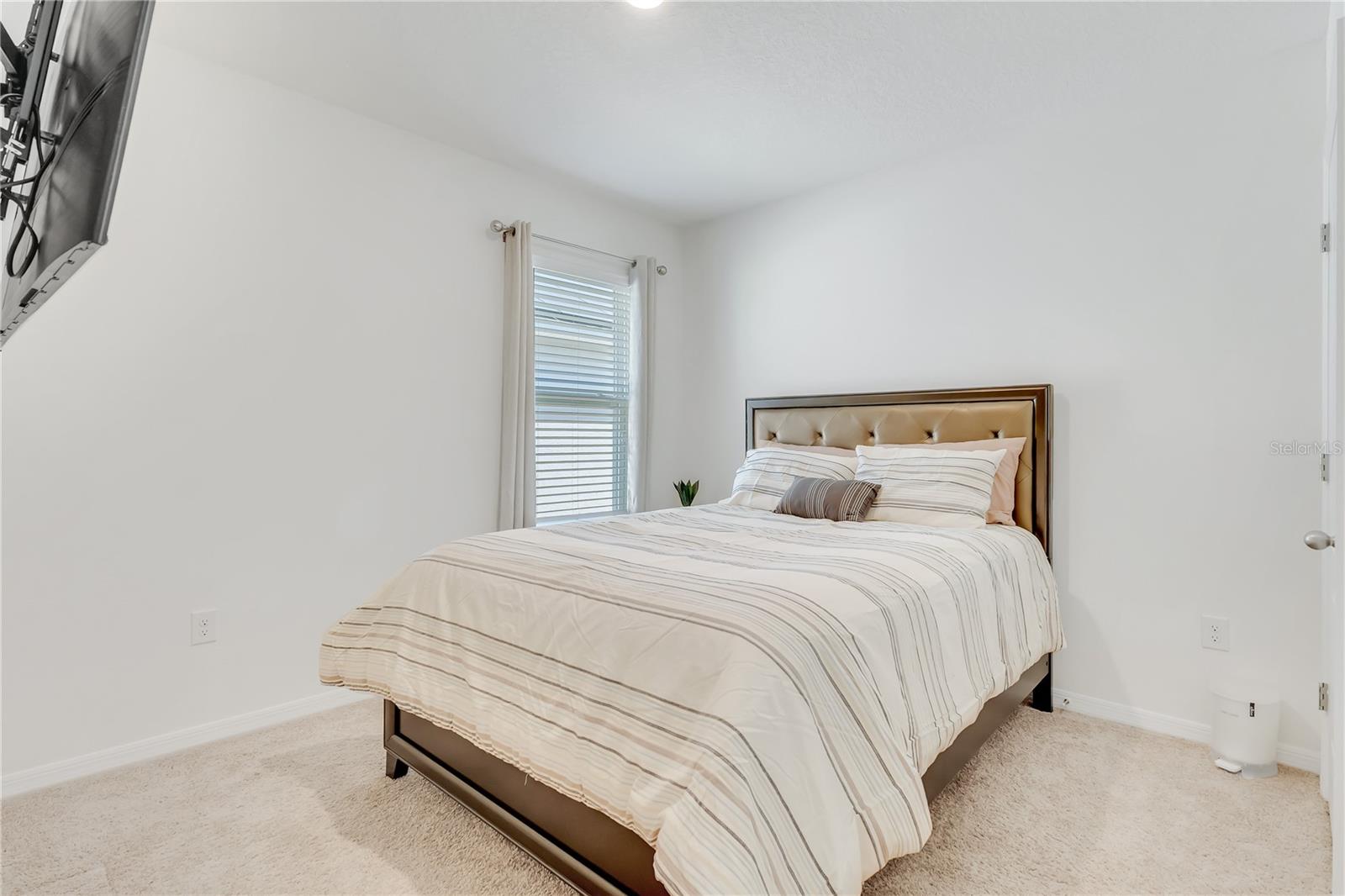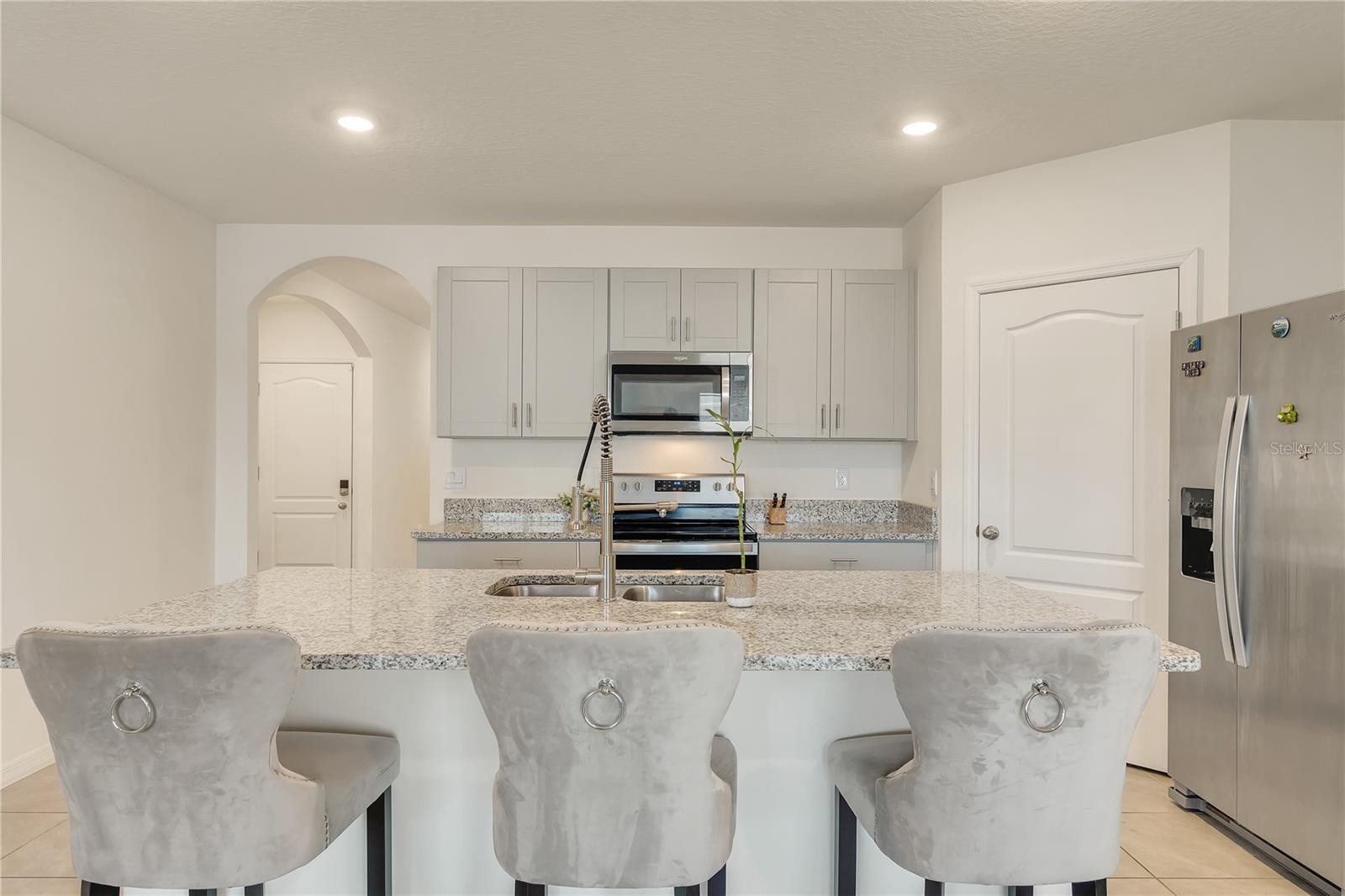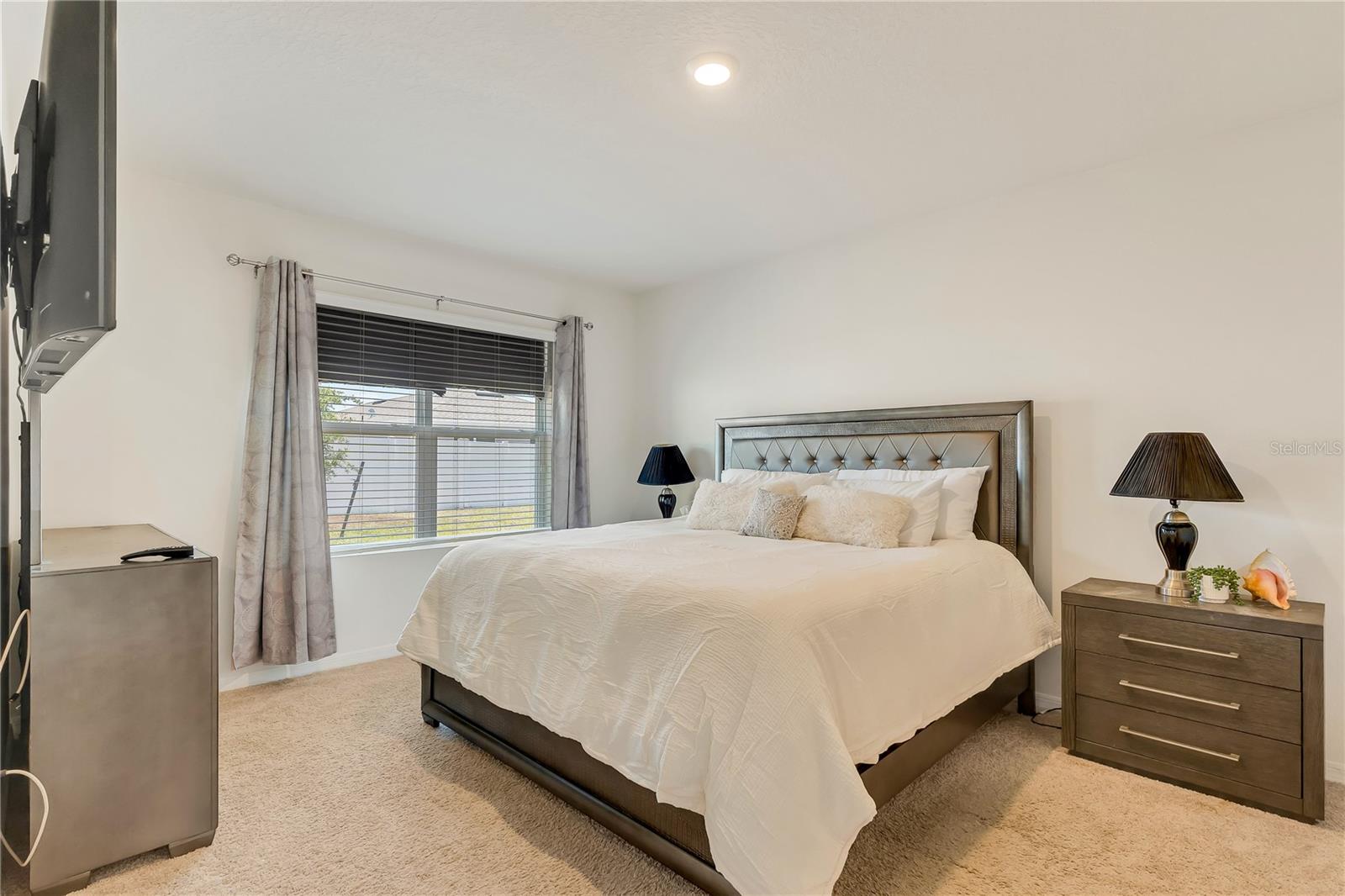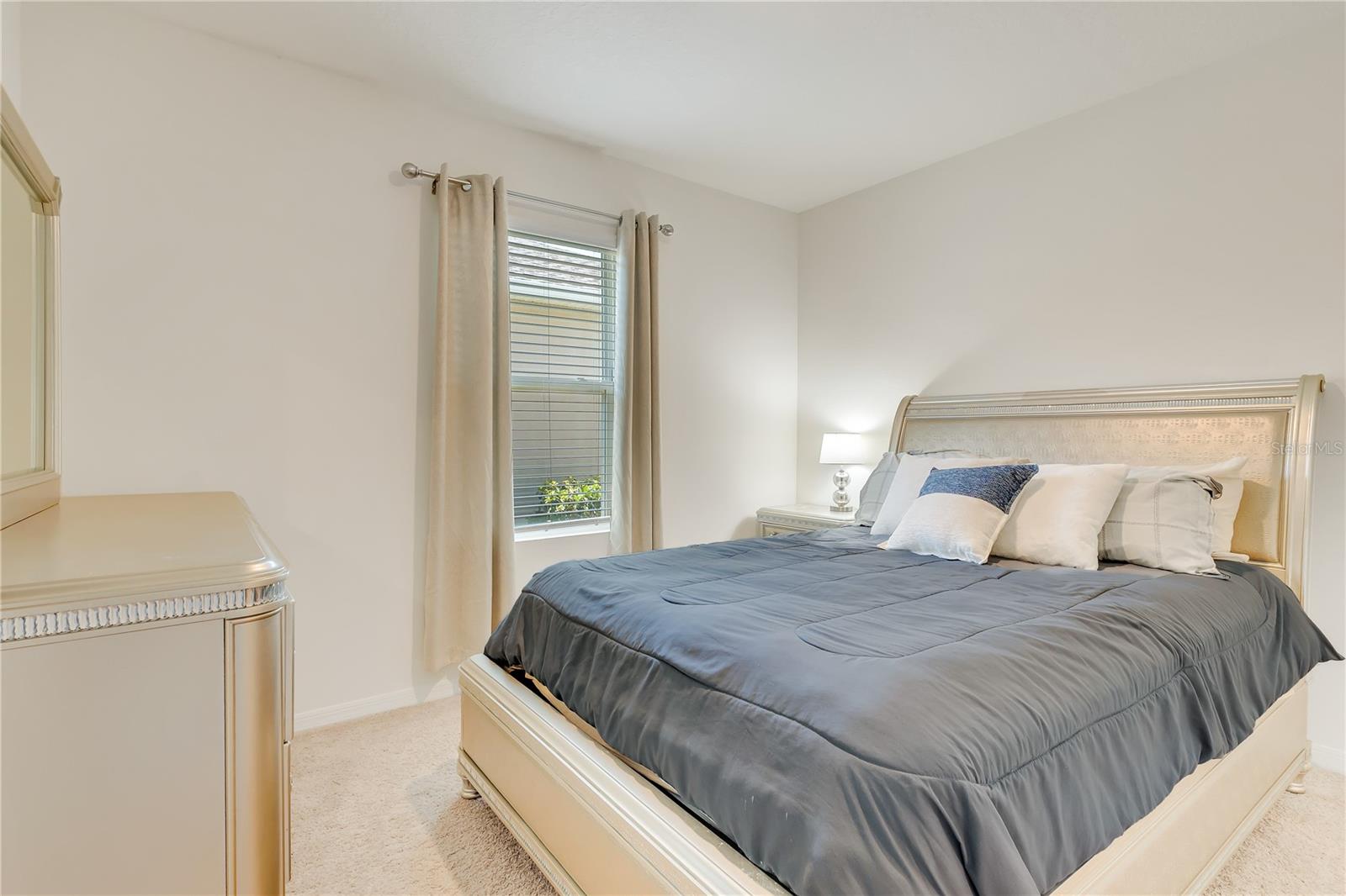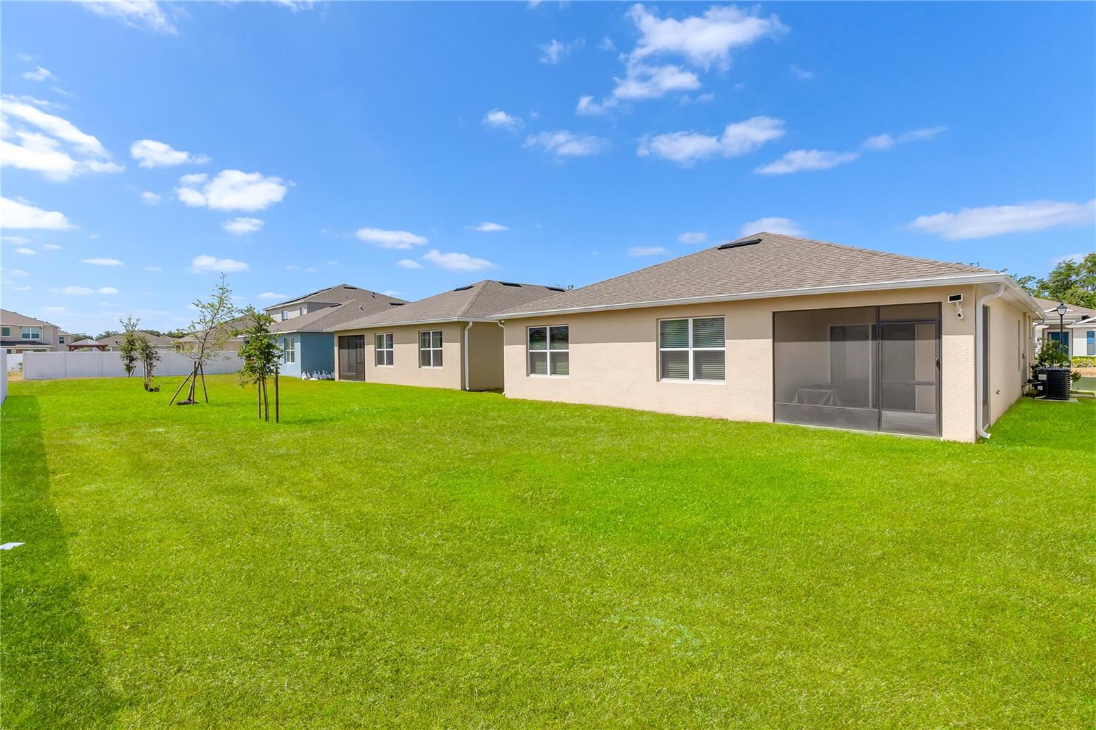 Spacious, stylish, and move in ready! That's exactly how this four bedrooms, three bathrooms Cali floorplan feels like. Thoughtfully designed for comfort and style, this residence opens up to an ample hallway that leads into an open concept living area. The kitchen stands out with sleek neutral tones, granite counter tops, stainless steel appliances, an island with a breakfast bar for extra seating, and a walk-in pantry. The dining area and living room receive plenty of natural light from the windows that overlook the fenced backyard. Right off of the living room you will find a very spacious primary bedroom that serves as a serene retreat, and an en suite with two roomy closets for all your fashion storage needs. The other three bedrooms of this split floorplan are located closer to the entrance hallway, providing privacy within each space. You will be able to spend evenings relaxing in the screened porch, or afternoon gatherings with friends and family in the yard. Even the water is pleasant here with a water softening system included, gutters and downspouts are also already installed. If you want a to live in a community with resort like amenities, your search is over. From pools, to scenic walking trails, playgrounds, a clubhouse, and more, this home blends convenience with an unbeatable lifestyle.