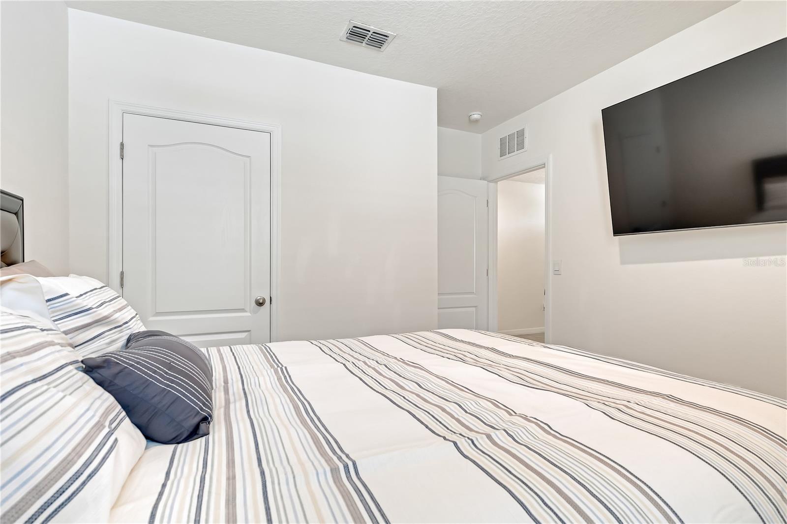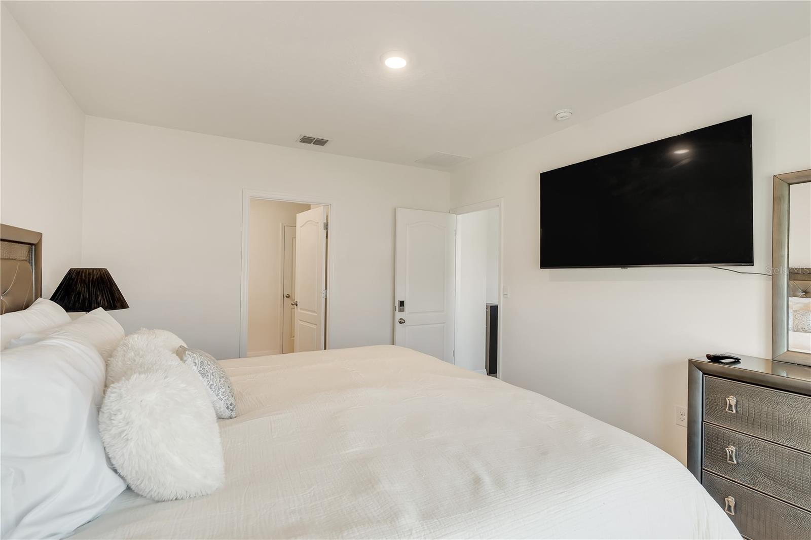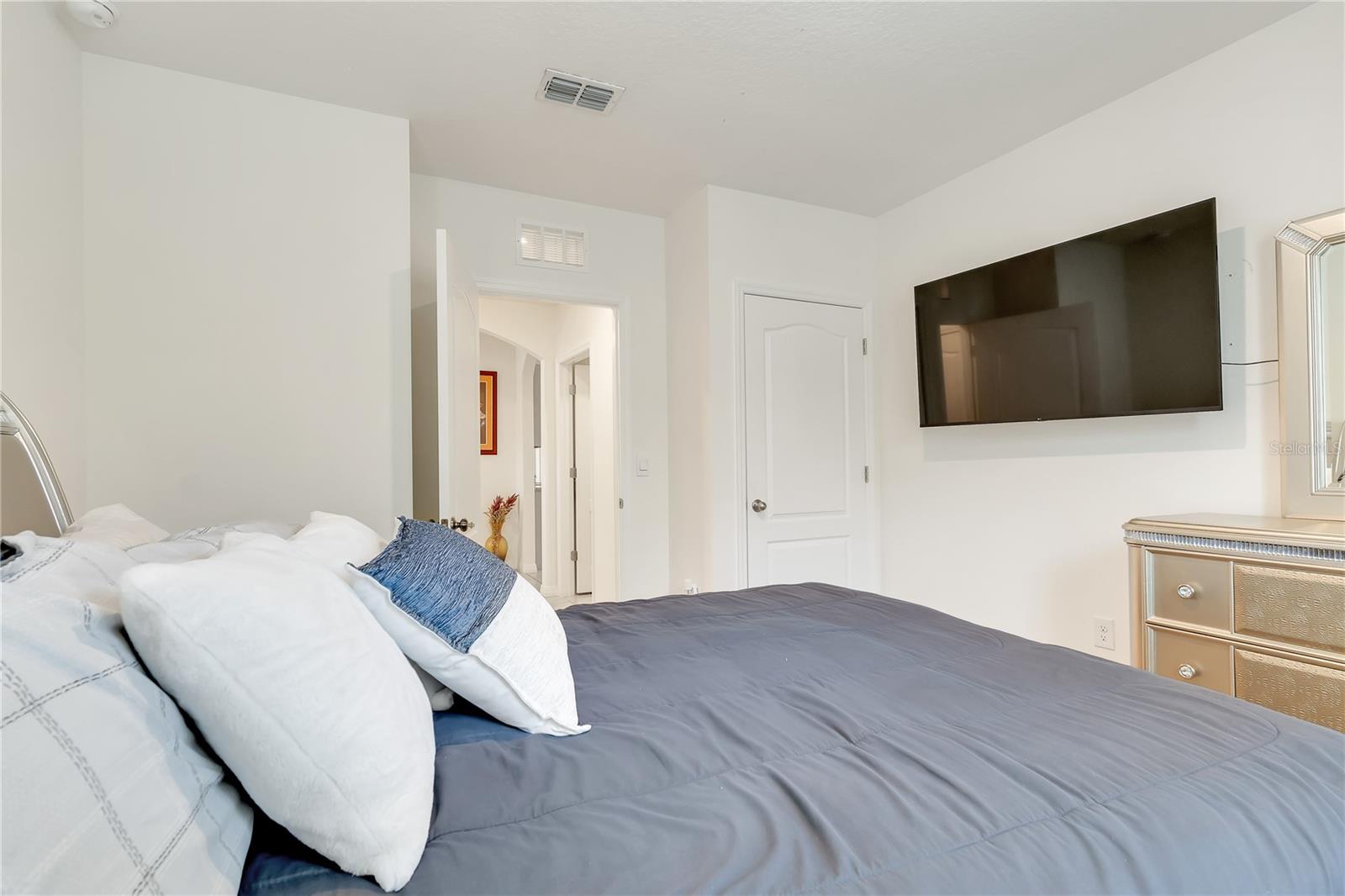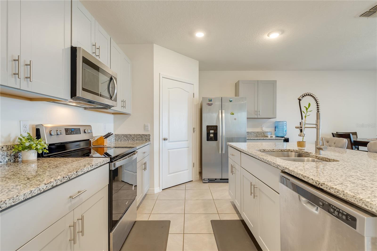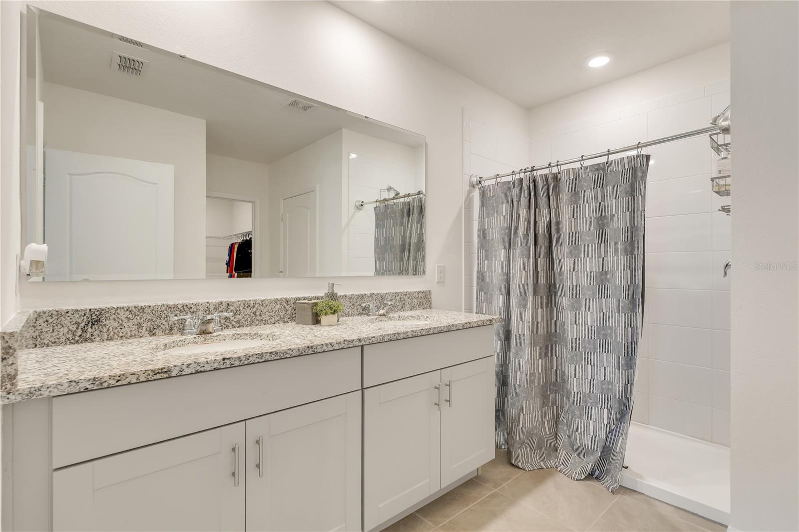 Spacious, stylish, and move in ready! That's exactly how this four bedrooms, three bathrooms Cali floorplan feels like. Thoughtfully designed for comfort and style, this residence opens up to an ample hallway that leads into an open concept living area. The kitchen stands out with sleek neutral tones, granite counter tops, stainless steel appliances, an island with a breakfast bar for extra seating, and a walk-in pantry. The dining area and living room receive plenty of natural light from the windows that overlook the fenced backyard. Right off of the living room you will find a very spacious primary bedroom that serves as a serene retreat, and an en suite with two roomy closets for all your fashion storage needs. The other three bedrooms of this split floorplan are located closer to the entrance hallway, providing privacy within each space. You will be able to spend evenings relaxing in the screened porch, or afternoon gatherings with friends and family in the yard. Even the water is pleasant here with a water softening system included, gutters and downspouts are also already installed. If you want a to live in a community with resort like amenities, your search is over. From pools, to scenic walking trails, playgrounds, a clubhouse, and more, this home blends convenience with an unbeatable lifestyle.