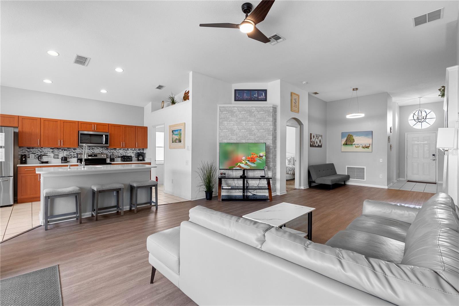 Turnkey Pool Home in Guard-Gated Wyndham Palms – Fully Furnished & Short-Term Rental Ready! This beautifully maintained 4-bedroom, 3-bath FULLY FURNISHED pool home is located in the highly desirable Wyndham Palms Resort, just minutes from Walt Disney World. With short-term rental zoning and resort-style amenities, this home is the perfect opportunity for investors, vacation homeowners, or full-time residents looking for comfort, convenience, and steady rental potential. Inside, you’ll find a bright, open layout featuring soaring cathedral ceilings, two master en-suites, a split-bedroom floor plan, and a spacious eat-in kitchen, ideal for entertaining or hosting multiple guests. Recent upgrades include a NEW ROOF (2023), luxury vinyl plank flooring in the main living area, upgraded bathroom countertops, and ceramic tile in high-traffic areas for easy maintenance. The bedrooms are finished with plush carpeting for added comfort, and the primary suite features a generous walk-in closet. Step outside to your private screened-in oasis, complete with a heated pool and spa, all surrounded by a privacy fence, perfect for relaxing evenings or fun-filled afternoons with family and guests. Located just a short walk from the clubhouse, this home grants you and your guests access to a wealth of resort amenities, including an Olympic-size heated pool and spa, splash zone, fitness center, game room, movie theater, convenience store, and courts for tennis, basketball, and sand volleyball. With close proximity to major highways, world-class golf, shopping, dining, and Orlando’s top attractions, this home offers the best of Florida living, with the added bonus of proven rental income potential in a top-performing vacation rental market. Don’t miss your chance to own this turnkey investment in one of Central Florida’s most sought-after resort communities—schedule your private showing today!