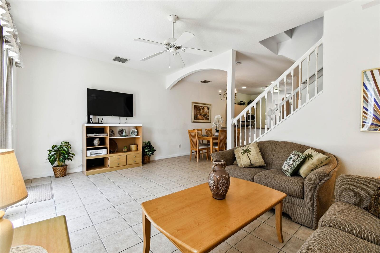 Discover the perfect blend of comfort, convenience, and resort-style living in this beautifully furnished 3-bedroom, 2.5-bath townhome located in the gated community of Fiesta Key, known for its cheerful, ice cream-hued architecture, just minutes from Orlando’s world-famous attractions! This spacious, light-filled home features an open-concept layout with a modern eat-in kitchen with a bay window, tile flooring, a screened-in patio, LG appliances, and an HVAC system. The HOA refreshed the exterior paint in 2021 for added curb appeal. Whether you're searching for a full-time residence or an ideal vacation rental, this two-story gem delivers! Enjoy exclusive access to community amenities including two heated pools, a tennis court, a clubhouse, and a fitness center. Conveniently located near shopping, dining, and US-192. Fully furnished and move-in ready—schedule your private showing today and step into your own slice of Florida paradise!