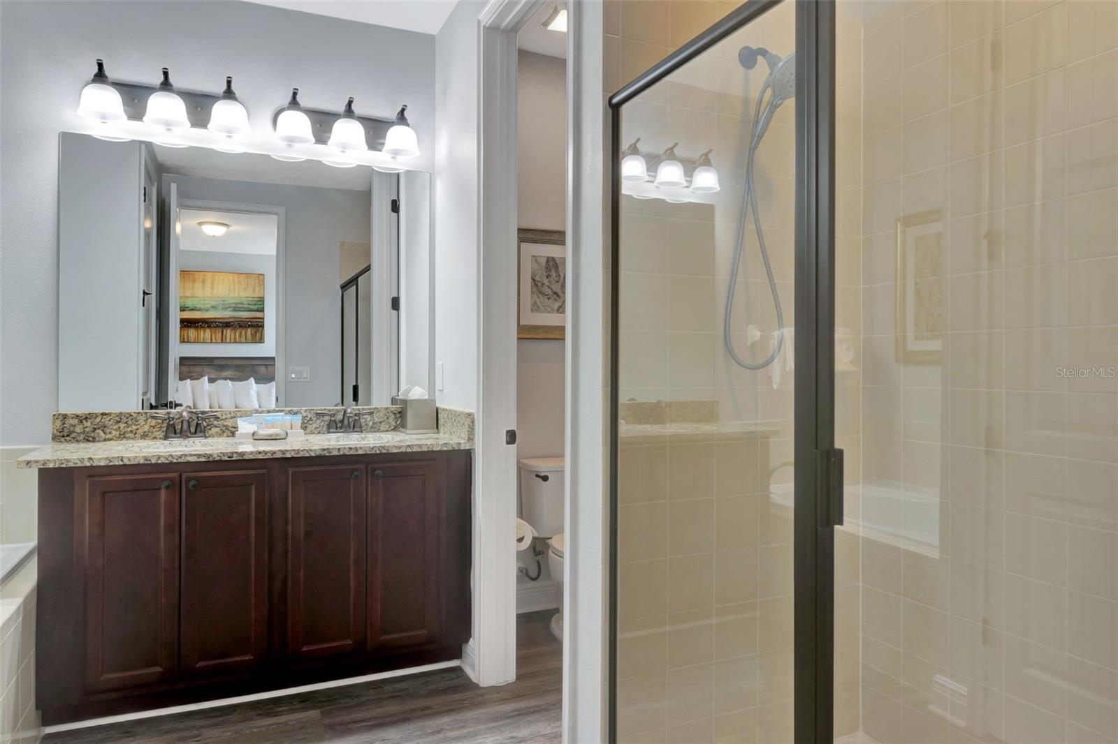 Discover the perfect blend of comfort, space, and privacy in this beautifully appointed 10-bedroom, 10-bathroom INVESTMENT PROPERTY located in the sought-after Encore Resort. Thoughtfully designed and quaintly decorated, this property is a TURNKEY investment opportunity for dream retreats for large groups, family reunions, and vacationers—SLEEPS 20+ guests comfortably. Projected REVENUE is $88,900 with an AVERAGE NIGHTLY RATE of $478 and an OCCUPANCY RATE of 51%. Enjoy a spacious, open-concept floor plan featuring a gourmet kitchen with dual refrigerators, two dishwashers, and sleek luxury vynil flooring throughout. The inviting living and dining areas flow seamlessly into the outdoor living space, where sliding glass doors lead to a covered lanai, heated pool, and spa—all with NO REAR NEIGHBORS and tranquil views of a greenbelt/conservation area. The privacy and scenery make it the perfect spot to watch the sunrise or unwind after a day at the nearby theme parks. With 10 generously sized bedrooms—9 of which have en-suite bathrooms—this home includes two primary suites (one upstairs, one downstairs), and a main-level accessible suite with a private, accessible bathroom. A spacious loft with a foosball table and an additional great room upstairs provides plenty of entertainment space for guests to gather and relax. Whether you're seeking a high-income-producing property or a luxurious getaway for hosting unforgettable gatherings, this Encore gem has it all! The Encore at Reunion Resort includes a spectacular clubhouse, award-winning restaurant, a Water Park, full-service spa, two playgrounds, state-of-the-art gym, basketball, volleyball & tennis courts. The HOA fee covers 24-hour gated entrances & roaming security, trash pickup, & an annual exterior house cleaning. A concierge desk is available at the clubhouse to assist with booking tickets, meals, airline check ins, resort provided shuttles to parks, & more. Enjoy being minutes away from three golf courses and in the heart of attractions, shopping, dining and more. Call us today to schedule your private tour!