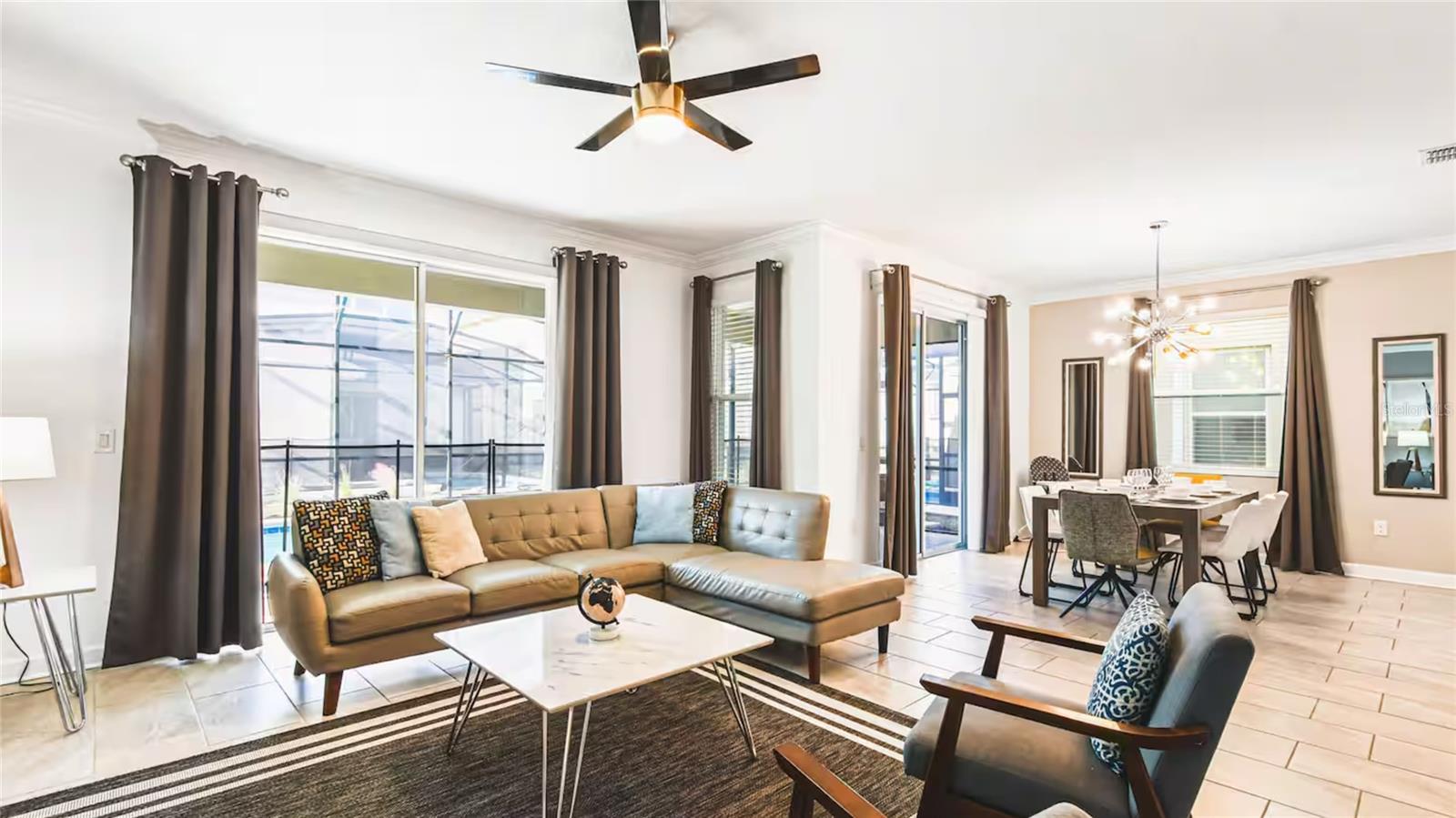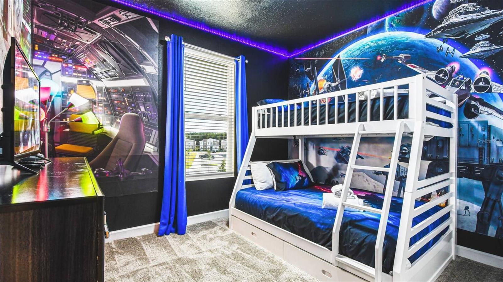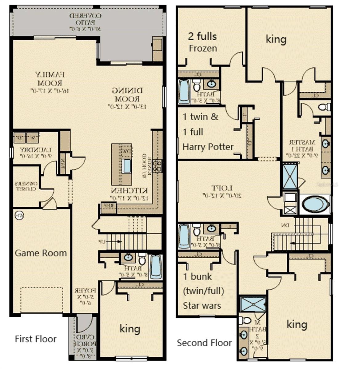 Welcome to this exceptional 6-bedroom, 5-bathroom luxury villa located in the highly desirable Storey Lake Resort community, just 7 miles from Walt Disney World. Perfectly designed for both personal enjoyment and as a high-performing vacation rental, this fully furnished home offers a blend of elegance, comfort, and family-friendly entertainment. The property features beautifully themed bedrooms—including Frozen, Harry Potter, and Star Wars—as well as spacious king suites and versatile bunk/twin layouts to accommodate guests of all ages. The open-concept ground floor includes a state-of-the-art kitchen, an elegant dining area that seats eight, a stylish living room with Smart TVs, and access to a screened-in private pool and spa with a covered patio—perfect for enjoying Florida’s year-round sunshine. Upstairs, a large loft offers a second living area, ideal for relaxing or entertaining. With five modern bathrooms, luxurious furnishings, and lightning-fast Wi-Fi throughout, every detail has been thoughtfully curated for a high-end experience. Storey Lake Resort offers world-class amenities including a resort-style pool, lazy river, water park, fitness center, Tiki Bar, arcade, and more—all within a secure, gated community close to Orlando’s top attractions, shopping, and dining. This turn-key property presents a rare opportunity to own a premier vacation home in one of Central Florida’s top-performing short-term rental communities. Contact us today to schedule your private showing and experience the exceptional lifestyle this home has to offer!