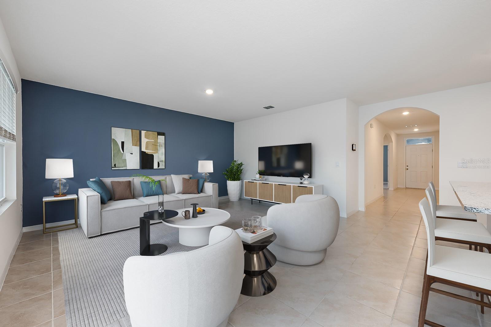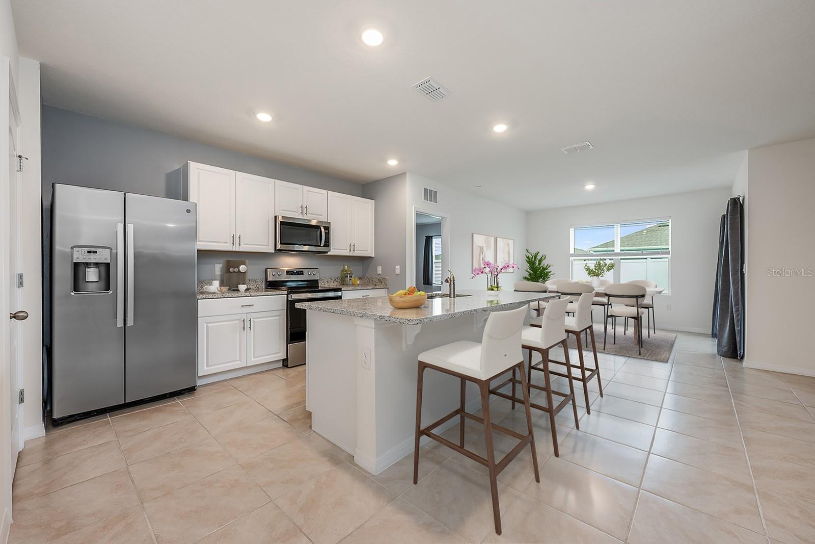 One or more photo(s) has been virtually staged. This property qualifies for a credit up to $5,790.00 through the seller's preferred lender. Discover modern living in this beautifully crafted home, BUILT IN 2022, and located in the vibrant Kindred community of Kissimmee! With a thoughtful layout and stylish finishes you have the perfect combination of comfort, functionality and access to fantastic AMENITIES! The bright OPEN FLOOR PLAN creates an inviting atmosphere with durable TILE FLOORS throughout the main living areas and soft carpeting in all the bedrooms. The heart of the home is the well appointed kitchen featuring desirable STAINLESS STEEL APPLIANCES, granite countertops, a spacious pantry, and an OVERSIZED ISLAND with a breakfast bar – perfect for casual meals or gathering with friends and family. NATURAL LIGHT flows effortlessly through double pane windows enhancing the home’s fresh color palette and eye-catching accent walls. Step outside to a SCREENED LANAI that offers a peaceful space to relax and unwind, overlooking a FULLY FENCED BACKYARD offering privacy and room to play or garden. The SPLIT BEDROOM design delivers a generous PRIMARY SUITE tucked away at the back of the home with a sizable WALK-IN CLOSET and a dedicated en-suite bath. Bedrooms two and three are on the opposite side of the home with a second full bath between them – each space within this home has been carefully designed to meet your everyday needs with style and ease! As a resident of Kindred you will enjoy access to impressive community amenities that include a RESORT-STYLE POOL, fitness center, tennis courts, beach volleyball, playground and more. Everything you need for recreation and relaxation is right outside your door. You are conveniently located just off Kings Highway for easy access to Lake Toho, Downtown Kissimmee, St Cloud, major roadways, and you are just a short drive to popular theme parks, shopping, dining and local attractions. This MOVE-IN READY home combines comfort, convenience, and community—schedule your tour today and see all it has to offer!