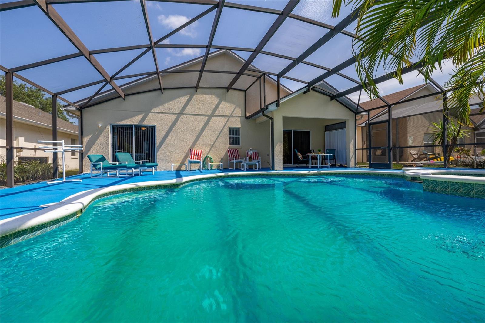 WELCOME TO 4640 EAGLE PEAK DRIVE IN THE MUCH SOUGHT-AFTER EAGLE POINTE COMMUNITY. A TRUE FLORIDA RETREAT WITH THE BEST OF THREE WORLDS. Looking for a larger lot? Larger shower? The south facing pool home; backs to conservation so not overlooked; and a water view with a short walk to the pond. Minutes to world class attractions, shopping, Sun Rail and fine dining, Step inside this spacious split-floor plan designed for comfort and privacy, whether this is your residence or investment short term rental. This home features a newer roof, hot water heater, new dishwasher, knock down ceilings even in the garage, rounded corners. covered patio and it is plumbed for an outdoor kitchen ! Four generously sized bedrooms and two bathrooms, primary bedroom has a large walk-in shower. One of the most stunning features is the large custom pool, a with tanning shelf or child bench, and the large spa. Completely enclosed with majestic views, come out to your private pool area to eat by candlelight. Experience serene privacy that's for relaxation, entertaining or enjoy breakfast or just a cup of coffee and relax. Located in Central Florida, this home truly has it all, Don't miss the chance to own this exceptional home where location, lifestyle,, and opportunity come together.