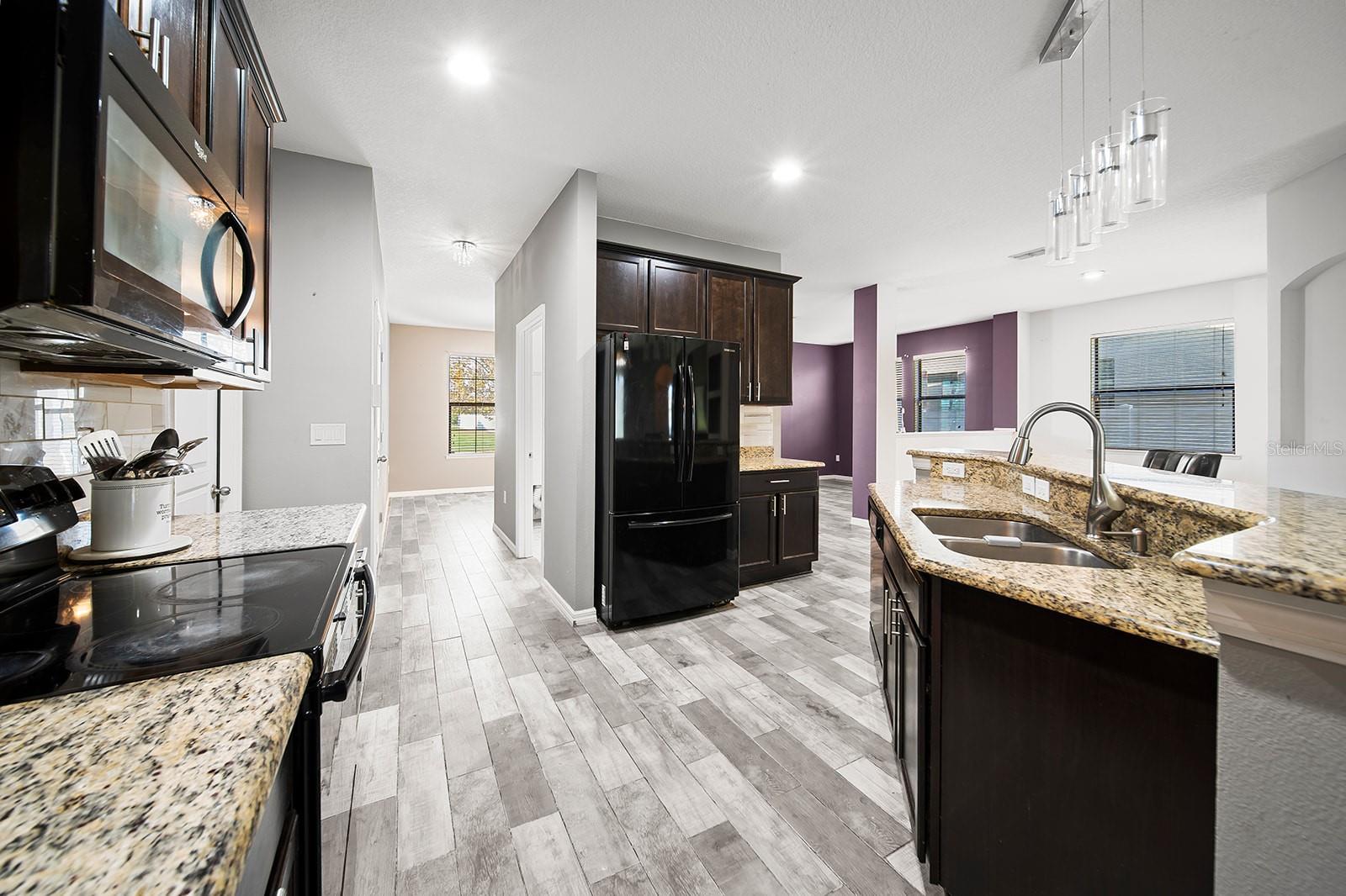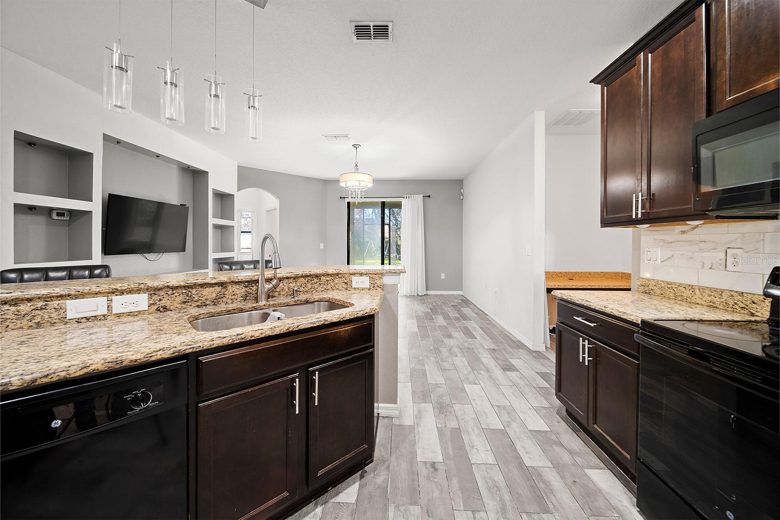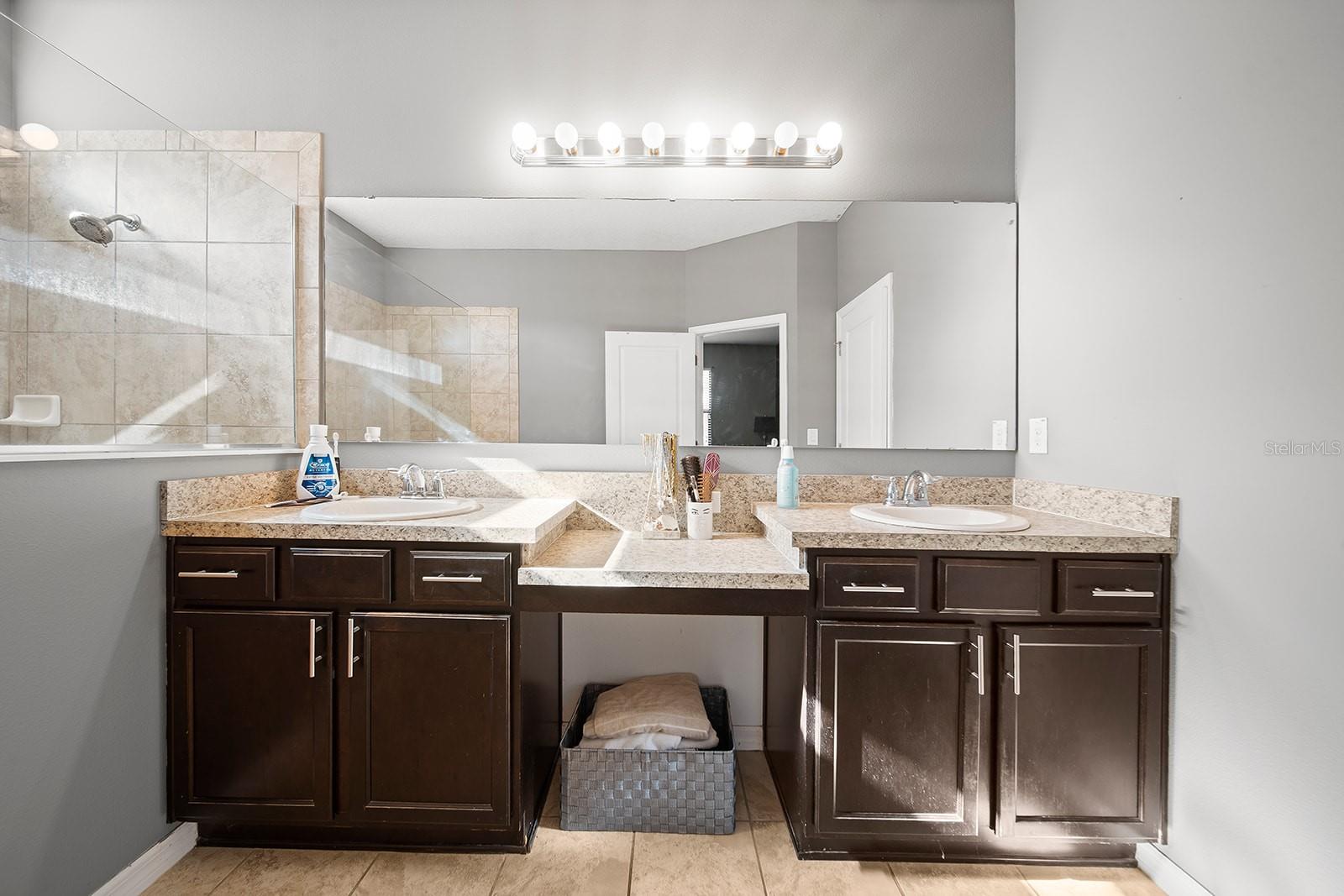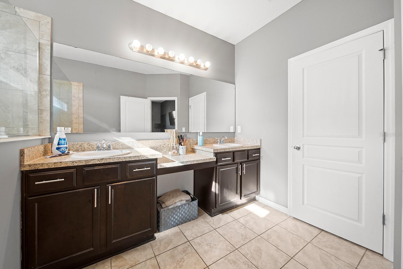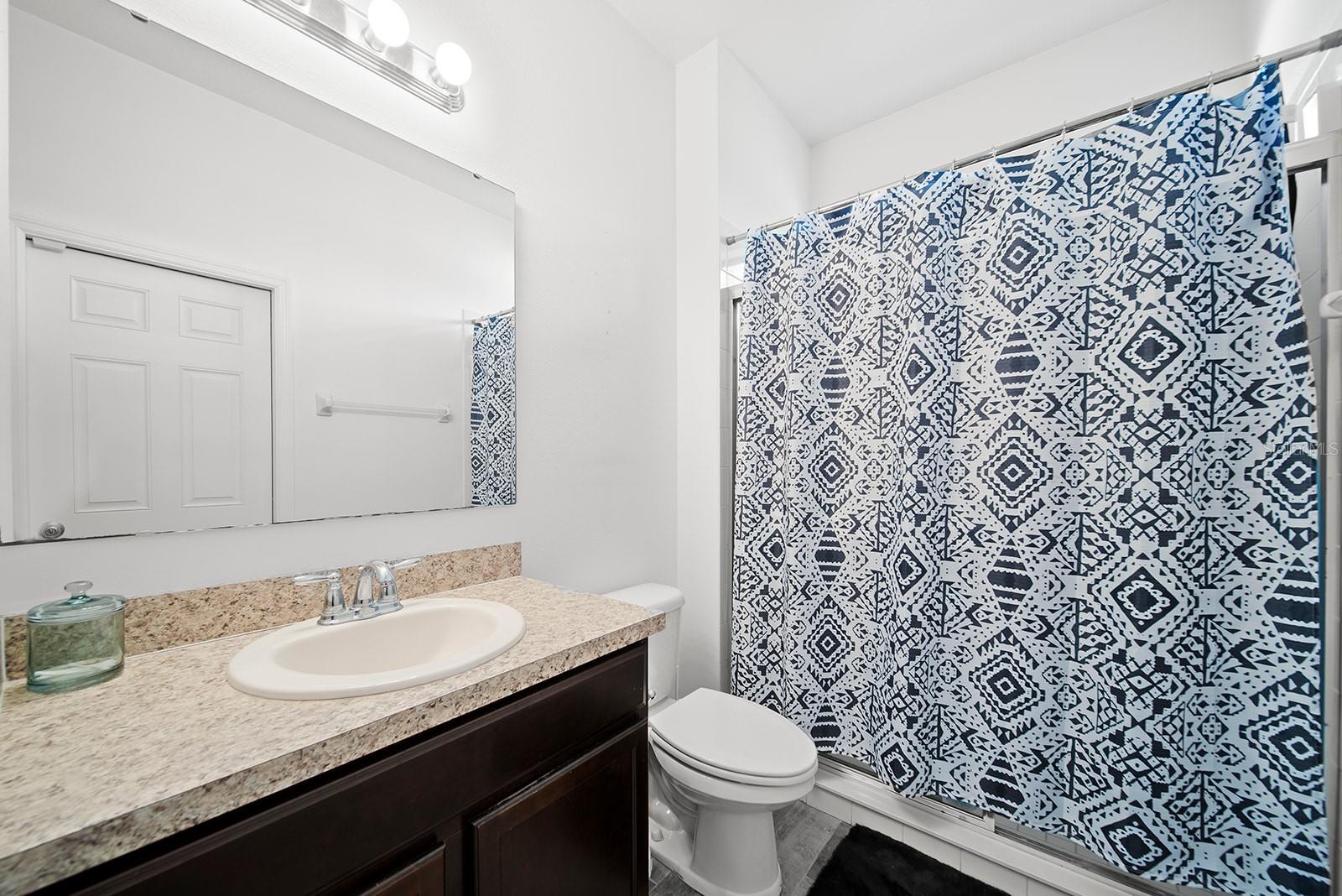 Move-in ready home with an OVERSIZED LOT and open layout concept. This home is located inside a gated community with community pool, playground, elementary school direct access and a nice walking trail. Home has an open kitchen concept with breakfast bar and granite countertops to host and overseeing different rooms of the home plus a whole home water system. Additionally to the Master Bedroom, another bedroom has its very own bathroom. It has tile throughout common areas and carpet in all bedrooms with a full size walk-in shower in the master bathroom. The laundry room with washer & dryer is conveniently located by garage door for easy drop off of dirty shoes and items. Community is located within proximity to all theme parks, just minutes to shopping, hospitals, Osceola Sheriff Department HQ and restaurants. It is Near St Cloud Lakefront Park, Remington Golf Course, and Orlando International Airport, as well as easy access to FL turnpike and major highways.