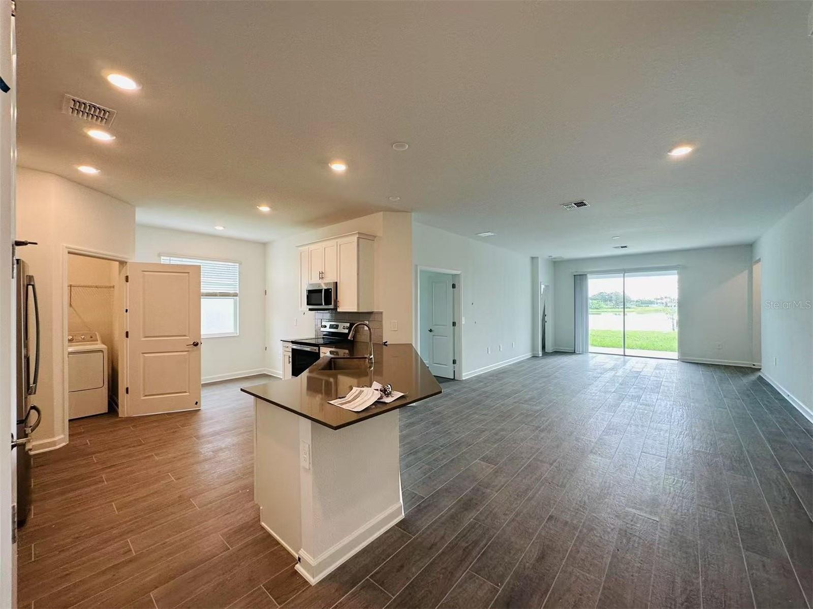 Better than new, this stunning property offers a breathtaking lake view. Caring for aging parents or have a young adult child still at home? This one story, Next Gen home has four bedrooms, three baths and a two-car garage. There is a separate entrance for a Next Gen Bedroom, living room and kitchenette, giving the sense of privacy and independence within proximity. Upgraded features include: 42" cabinets with quartz countertops in both kitchen and bathrooms and stainless appliances. There is a laundry room with washer and dryer. The community offers parks, playgrounds, a clubhouse with a resort style pool, tennis courts and walking paths. With easy access to major highways, commuting to Orlando, the theme parks, east and west coast beaches, and surrounding areas is a breeze. Don't miss the opportunity to make this exquisite house your forever home. Schedule a showing today and experience the charm and elegance of 1590 Contentment Lp for yourself!