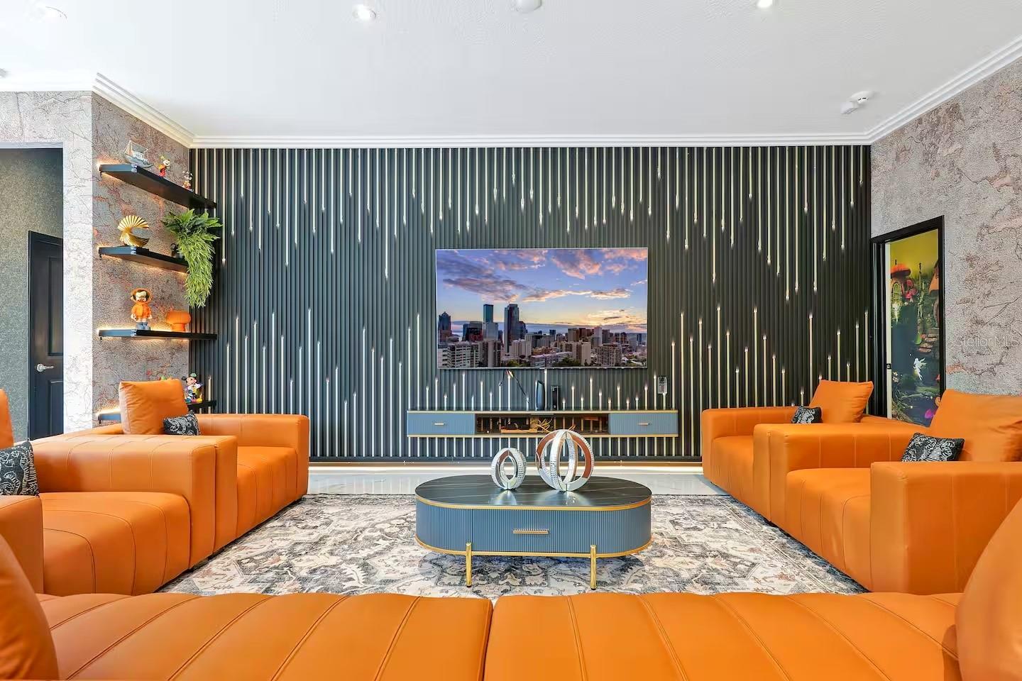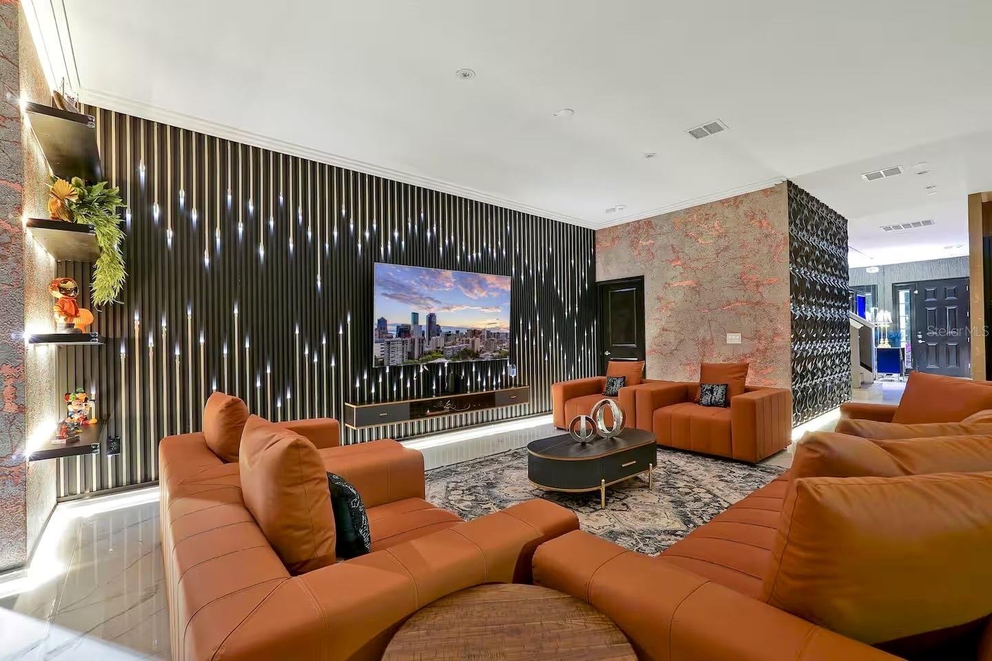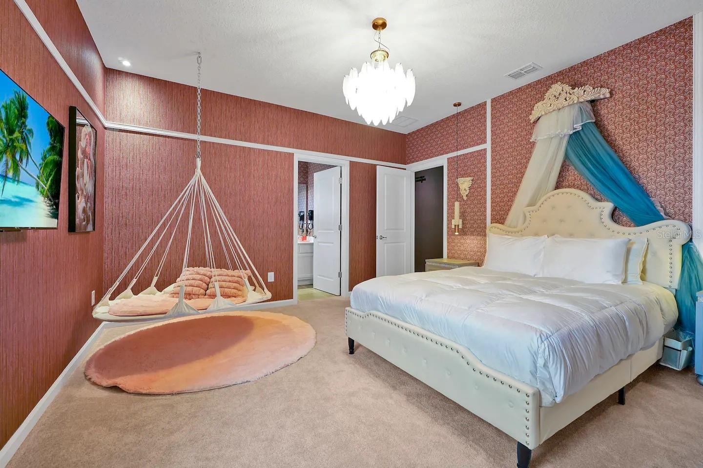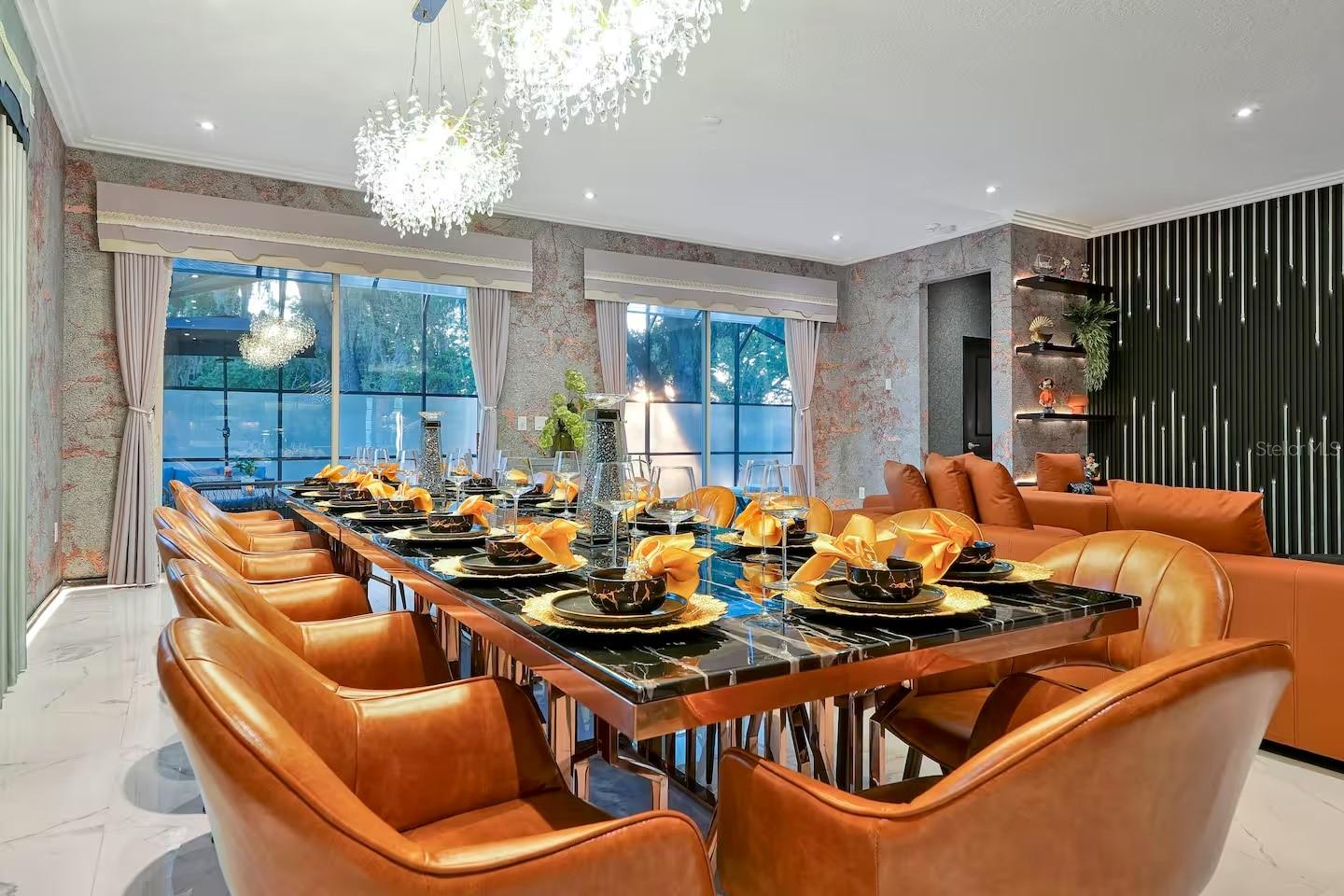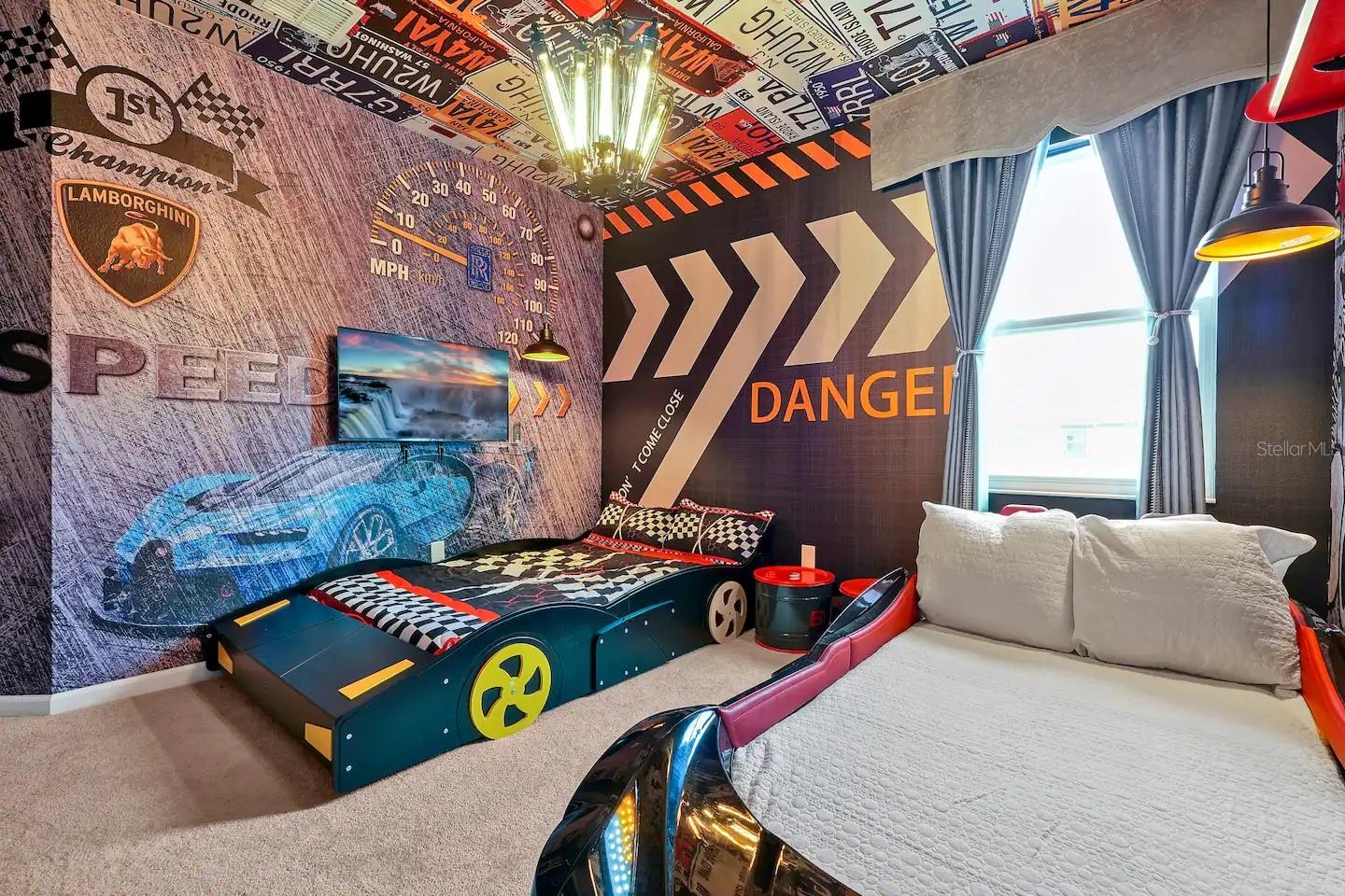 Just reduced by $152,000! Priced to sell! Exceptional Investment Opportunity! This stunning, fully furnished and professionally themed vacation home in the sought-after Veranda Palms community generated over $150,000 in gross rental income last year—with future bookings already in place that can seamlessly transfer to the new owner if continuing with the current management company. The seller has invested over $300,000 in luxury designer furnishings, high-end upgrades, and custom décor, making this property truly one-of-a-kind within the community. Boasting 12 bedrooms and 11.5 bathrooms, including two spacious master suites (one on each floor), this home is built for comfort, functionality, and a true resort-style experience. The gourmet kitchen is equipped with two microwaves, two refrigerators, two dishwashers, dual sinks, and upgraded tile finishes on both the backsplash and island. The open-concept living area has been thoughtfully expanded by enclosing the California room, and the home is loaded with upscale features including: Custom LED lighting, Accent walls and large format tile downstairs, Wood flooring upstairs, Designer light fixtures throughout, Six bathrooms upgraded with sleek, glass-enclosed showers and custom wallpaper, Hidden LED mood lighting integrated into baseboards across common areas on both floors. Entertainment is elevated with a private theater room, complete with a 120” screen, HD projector, starry ceiling, and reclining theater seating—ideal for unforgettable movie nights. Step outside to your private backyard retreat, featuring a heated pool, spa, and lounge area. With no rear neighbors and privacy film on the pool screen, this outdoor space is perfect for quiet relaxation or entertaining guests. Located just minutes from Disney parks, premium outlets, and top community amenities, and with low HOA fees and no CDD, this beautifully upgraded, turnkey income-producing property is the ideal short-term rental investment.
