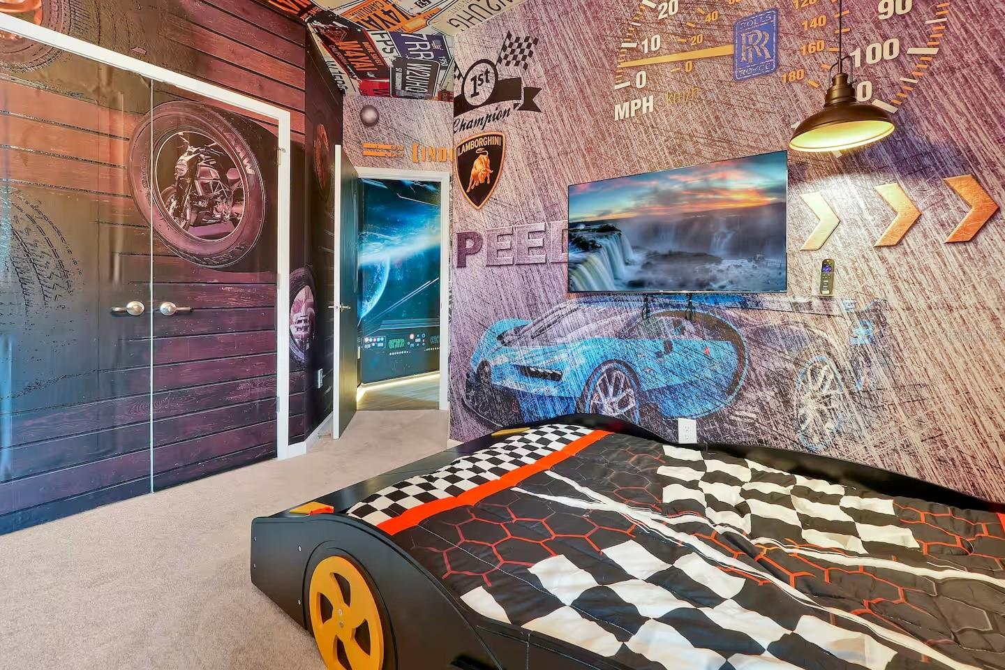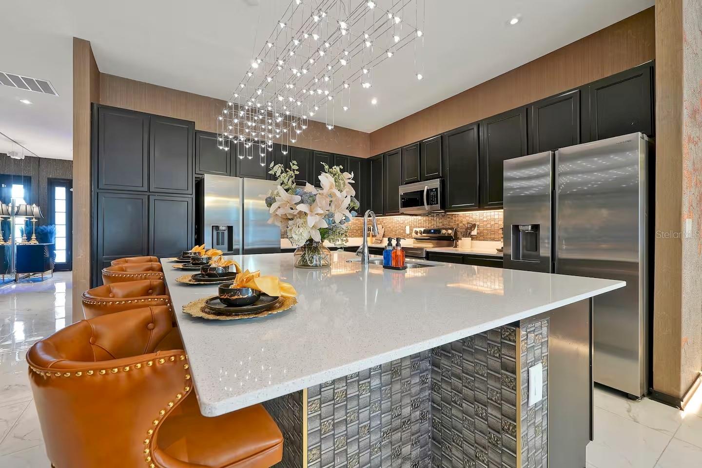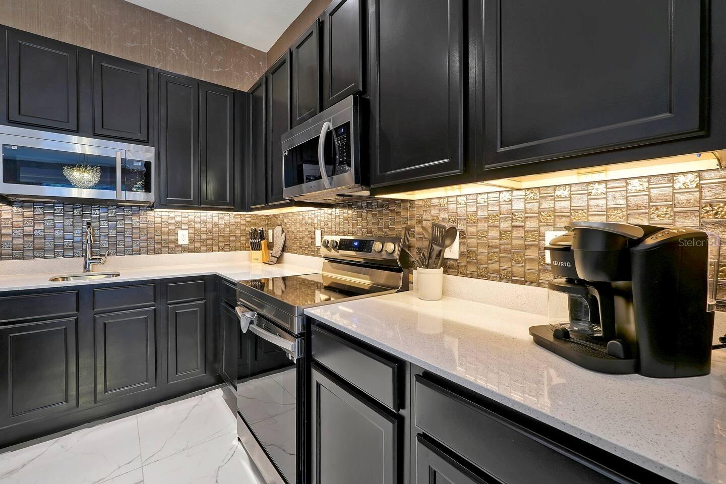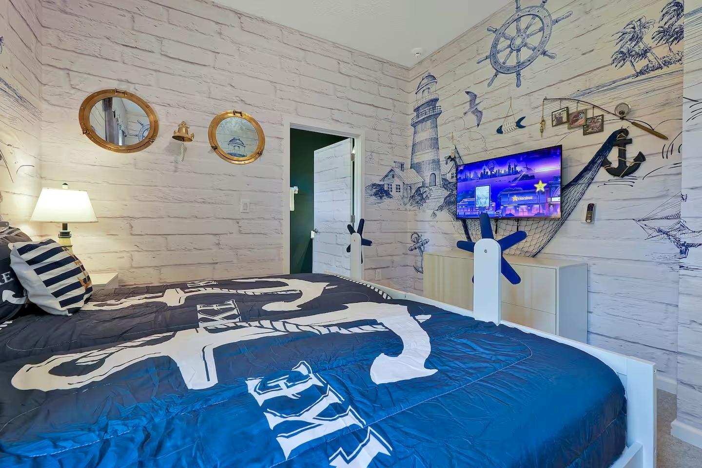 Just reduced by $152,000! Priced to sell! Exceptional Investment Opportunity! This stunning, fully furnished and professionally themed vacation home in the sought-after Veranda Palms community generated over $150,000 in gross rental income last year—with future bookings already in place that can seamlessly transfer to the new owner if continuing with the current management company. The seller has invested over $300,000 in luxury designer furnishings, high-end upgrades, and custom décor, making this property truly one-of-a-kind within the community. Boasting 12 bedrooms and 11.5 bathrooms, including two spacious master suites (one on each floor), this home is built for comfort, functionality, and a true resort-style experience. The gourmet kitchen is equipped with two microwaves, two refrigerators, two dishwashers, dual sinks, and upgraded tile finishes on both the backsplash and island. The open-concept living area has been thoughtfully expanded by enclosing the California room, and the home is loaded with upscale features including: Custom LED lighting, Accent walls and large format tile downstairs, Wood flooring upstairs, Designer light fixtures throughout, Six bathrooms upgraded with sleek, glass-enclosed showers and custom wallpaper, Hidden LED mood lighting integrated into baseboards across common areas on both floors. Entertainment is elevated with a private theater room, complete with a 120” screen, HD projector, starry ceiling, and reclining theater seating—ideal for unforgettable movie nights. Step outside to your private backyard retreat, featuring a heated pool, spa, and lounge area. With no rear neighbors and privacy film on the pool screen, this outdoor space is perfect for quiet relaxation or entertaining guests. Located just minutes from Disney parks, premium outlets, and top community amenities, and with low HOA fees and no CDD, this beautifully upgraded, turnkey income-producing property is the ideal short-term rental investment.