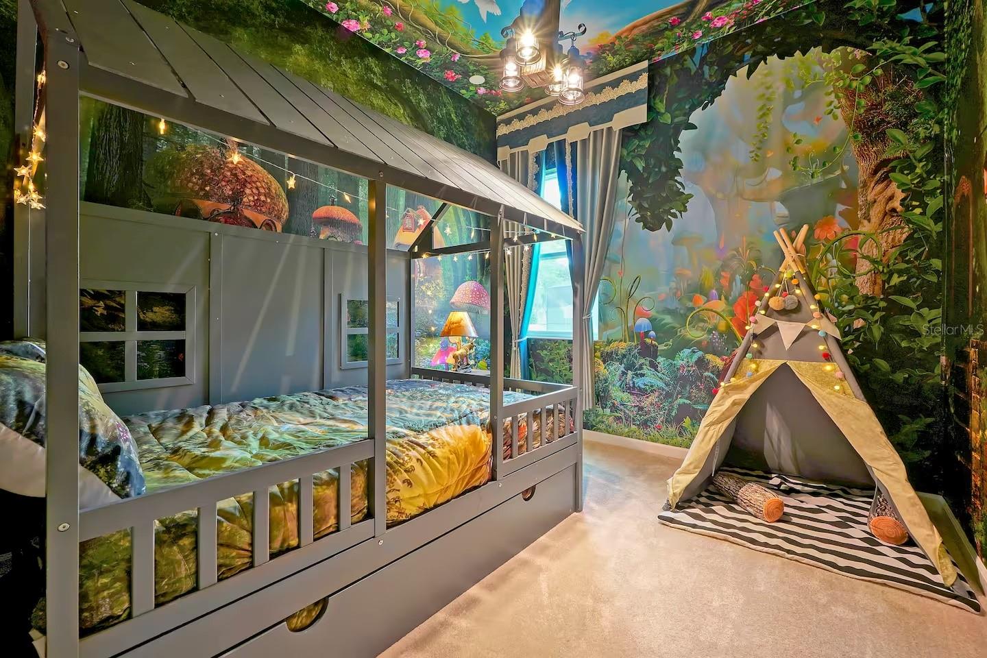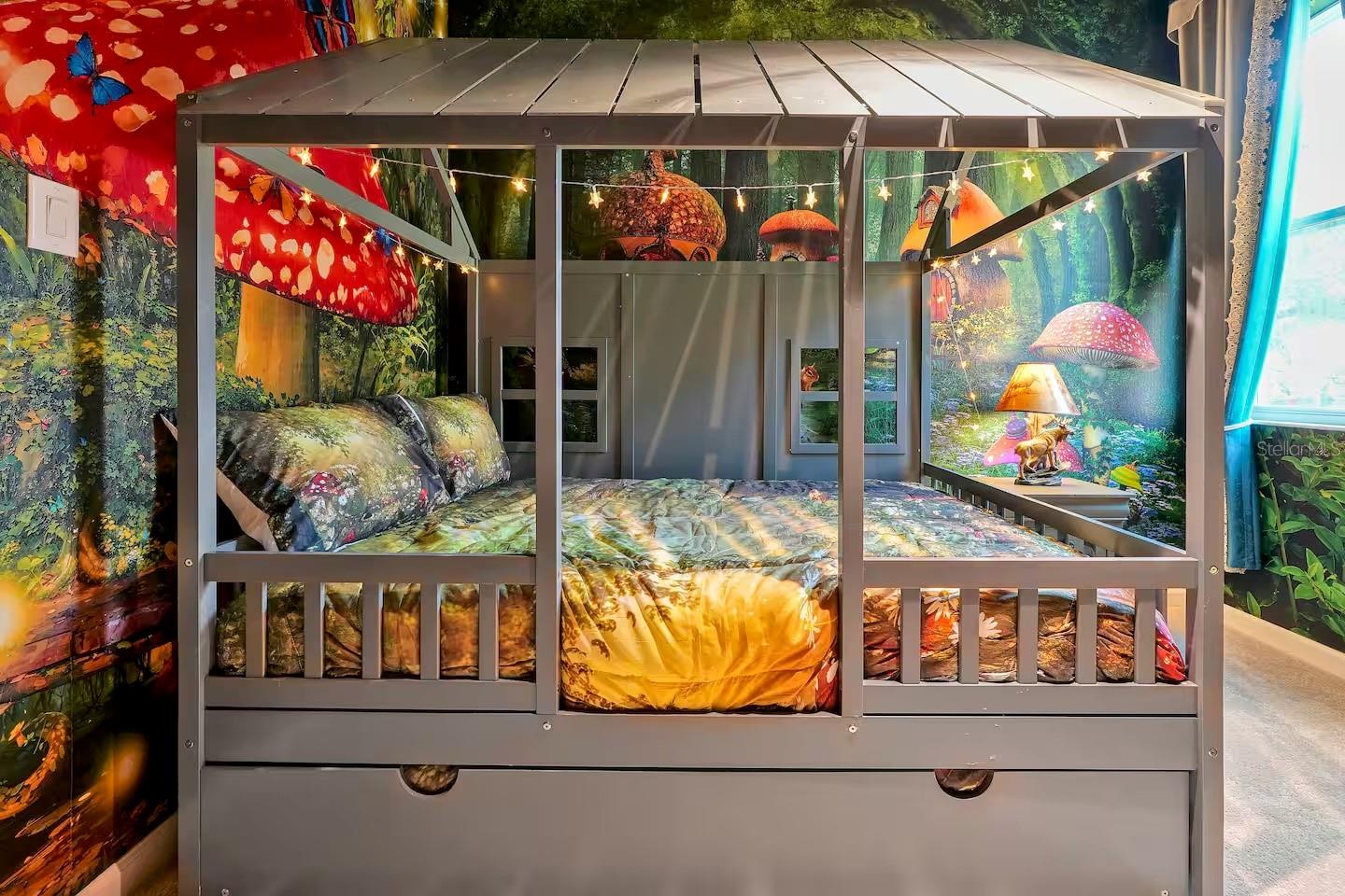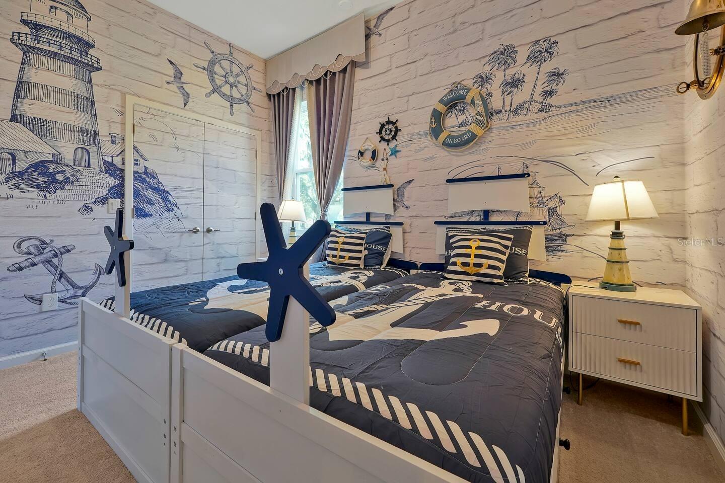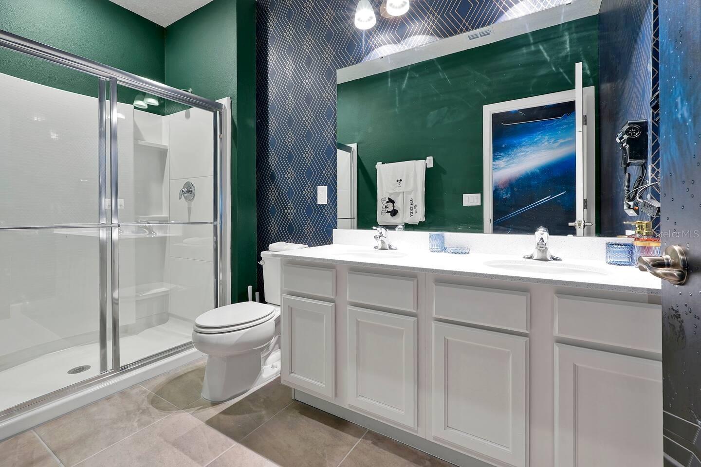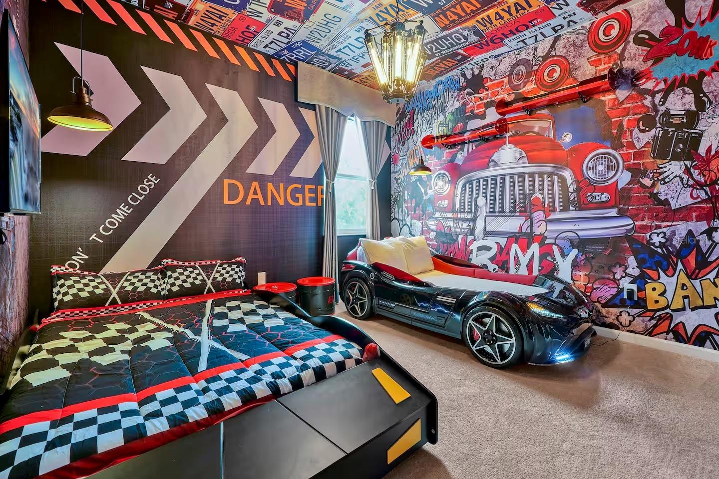 Just reduced by $152,000! Priced to sell! Exceptional Investment Opportunity! This stunning, fully furnished and professionally themed vacation home in the sought-after Veranda Palms community generated over $150,000 in gross rental income last year—with future bookings already in place that can seamlessly transfer to the new owner if continuing with the current management company. The seller has invested over $300,000 in luxury designer furnishings, high-end upgrades, and custom décor, making this property truly one-of-a-kind within the community. Boasting 12 bedrooms and 11.5 bathrooms, including two spacious master suites (one on each floor), this home is built for comfort, functionality, and a true resort-style experience. The gourmet kitchen is equipped with two microwaves, two refrigerators, two dishwashers, dual sinks, and upgraded tile finishes on both the backsplash and island. The open-concept living area has been thoughtfully expanded by enclosing the California room, and the home is loaded with upscale features including: Custom LED lighting, Accent walls and large format tile downstairs, Wood flooring upstairs, Designer light fixtures throughout, Six bathrooms upgraded with sleek, glass-enclosed showers and custom wallpaper, Hidden LED mood lighting integrated into baseboards across common areas on both floors. Entertainment is elevated with a private theater room, complete with a 120” screen, HD projector, starry ceiling, and reclining theater seating—ideal for unforgettable movie nights. Step outside to your private backyard retreat, featuring a heated pool, spa, and lounge area. With no rear neighbors and privacy film on the pool screen, this outdoor space is perfect for quiet relaxation or entertaining guests. Located just minutes from Disney parks, premium outlets, and top community amenities, and with low HOA fees and no CDD, this beautifully upgraded, turnkey income-producing property is the ideal short-term rental investment.