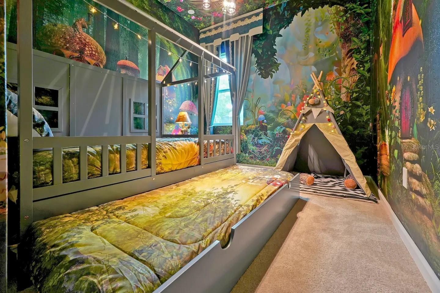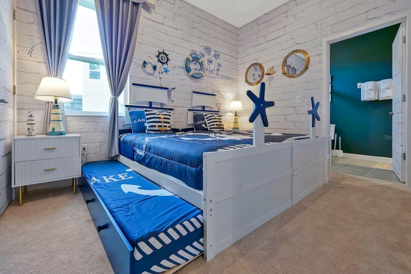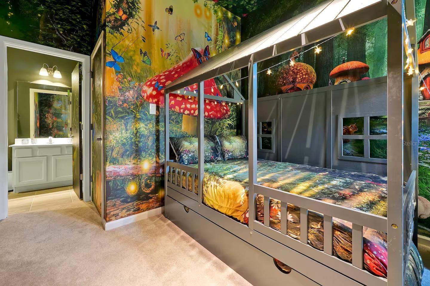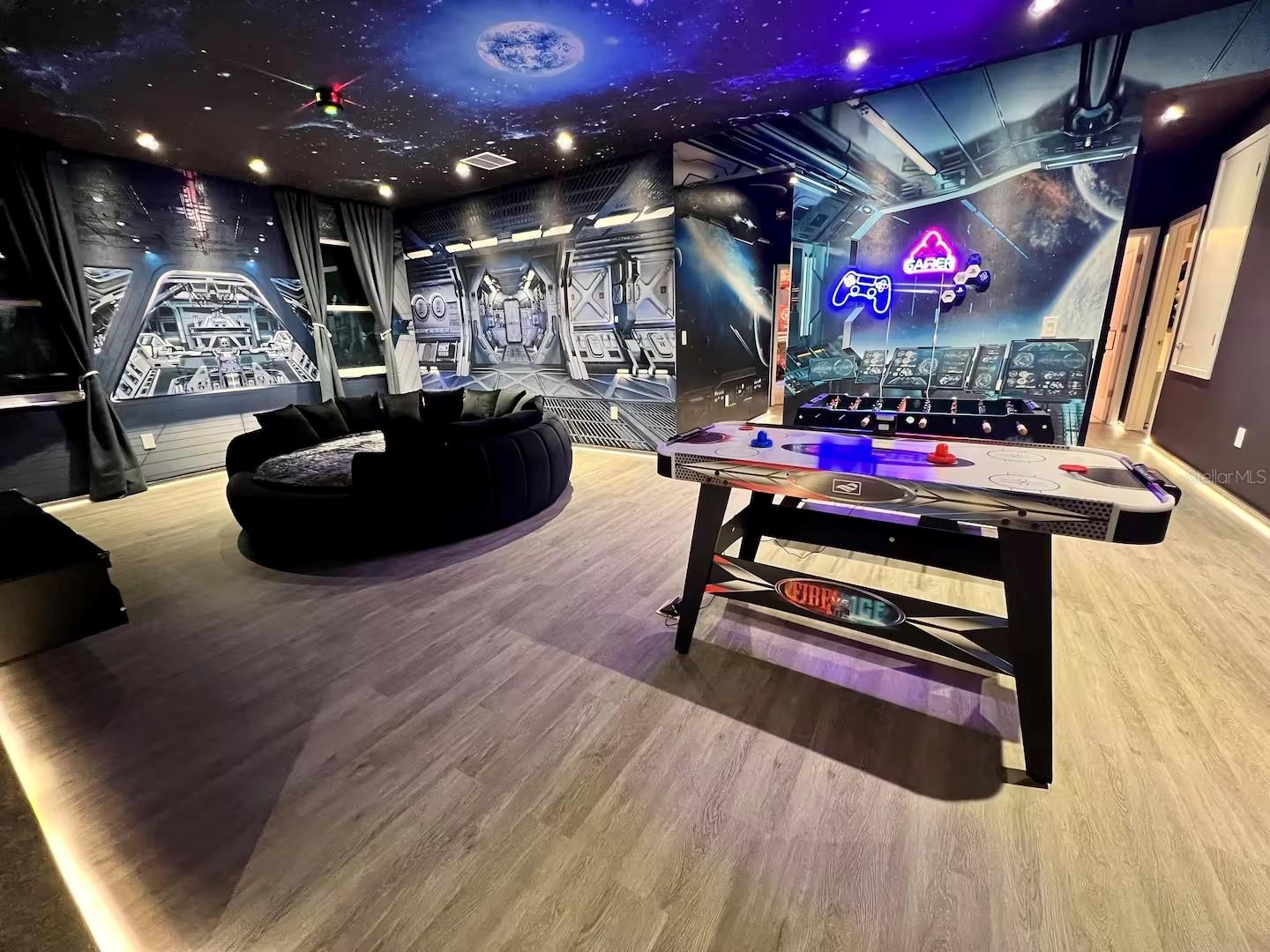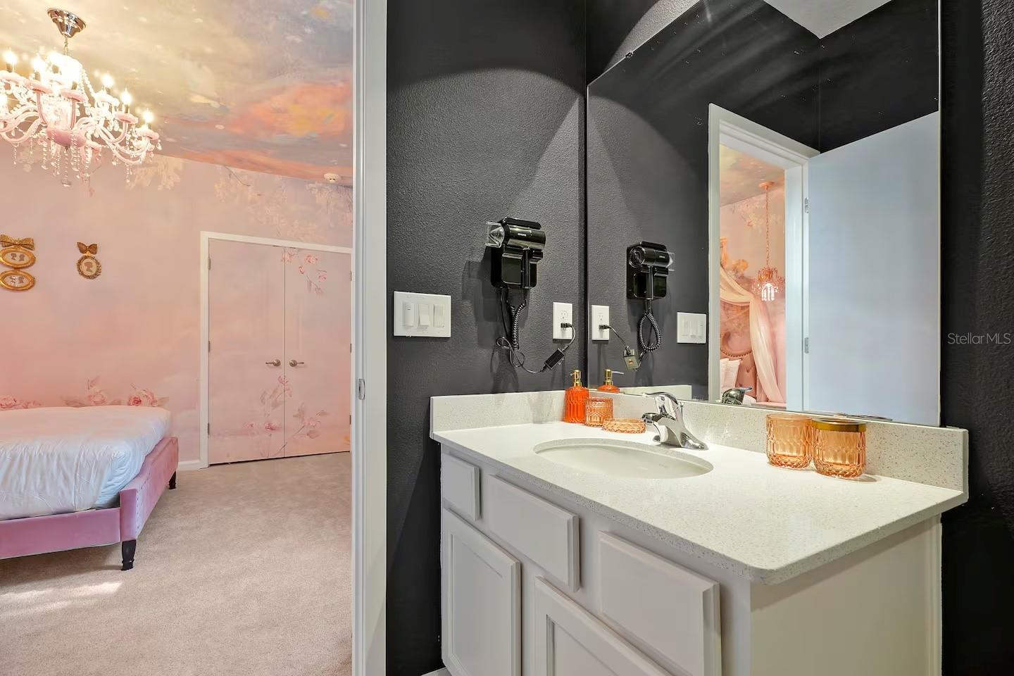 Just reduced by $152,000! Priced to sell! Exceptional Investment Opportunity! This stunning, fully furnished and professionally themed vacation home in the sought-after Veranda Palms community generated over $150,000 in gross rental income last year—with future bookings already in place that can seamlessly transfer to the new owner if continuing with the current management company. The seller has invested over $300,000 in luxury designer furnishings, high-end upgrades, and custom décor, making this property truly one-of-a-kind within the community. Boasting 12 bedrooms and 11.5 bathrooms, including two spacious master suites (one on each floor), this home is built for comfort, functionality, and a true resort-style experience. The gourmet kitchen is equipped with two microwaves, two refrigerators, two dishwashers, dual sinks, and upgraded tile finishes on both the backsplash and island. The open-concept living area has been thoughtfully expanded by enclosing the California room, and the home is loaded with upscale features including: Custom LED lighting, Accent walls and large format tile downstairs, Wood flooring upstairs, Designer light fixtures throughout, Six bathrooms upgraded with sleek, glass-enclosed showers and custom wallpaper, Hidden LED mood lighting integrated into baseboards across common areas on both floors. Entertainment is elevated with a private theater room, complete with a 120” screen, HD projector, starry ceiling, and reclining theater seating—ideal for unforgettable movie nights. Step outside to your private backyard retreat, featuring a heated pool, spa, and lounge area. With no rear neighbors and privacy film on the pool screen, this outdoor space is perfect for quiet relaxation or entertaining guests. Located just minutes from Disney parks, premium outlets, and top community amenities, and with low HOA fees and no CDD, this beautifully upgraded, turnkey income-producing property is the ideal short-term rental investment.