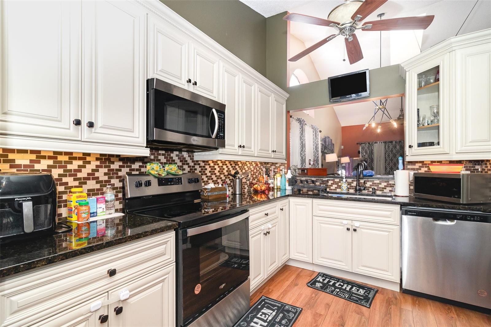 Step into style and comfort with this beautifully updated 3-bedroom, 2.5-bath townhome in the heart of Kissimmee! From the moment you arrive, the private front courtyard invites you to unwind—perfect for morning coffee or a quiet evening wind-down. Inside, you’re greeted by an airy, open-concept layout drenched in natural light and contemporary finishes throughout. The show-stopping kitchen is built for both function and flair, featuring custom cabinetry, sleek granite countertops, stainless steel appliances, and a statement tile backsplash. It flows effortlessly into the dining and living areas, which extend to a screened-in patio—your personal oasis for relaxing or entertaining. The primary suite is conveniently located on the first floor and offers a peaceful retreat with a walk-in closet and dual vanity zones. Upstairs, two additional bedrooms and a full bath provide space for family, guests, or a home office. A downstairs half-bath adds extra convenience, along with an indoor laundry room and a 1-car garage. Enjoy worry-free living with a low-maintenance lifestyle—HOA includes a resort-style pool, exterior maintenance, roof care, painting, and lawn service. And with top-notch shopping, dining, major highways, and theme parks just minutes away, this home is perfectly positioned for full-time living, a vacation getaway, or a smart investment. This is Central Florida living—elevated. Don’t miss your chance to call it home!