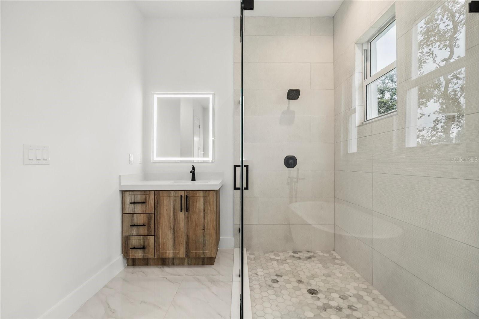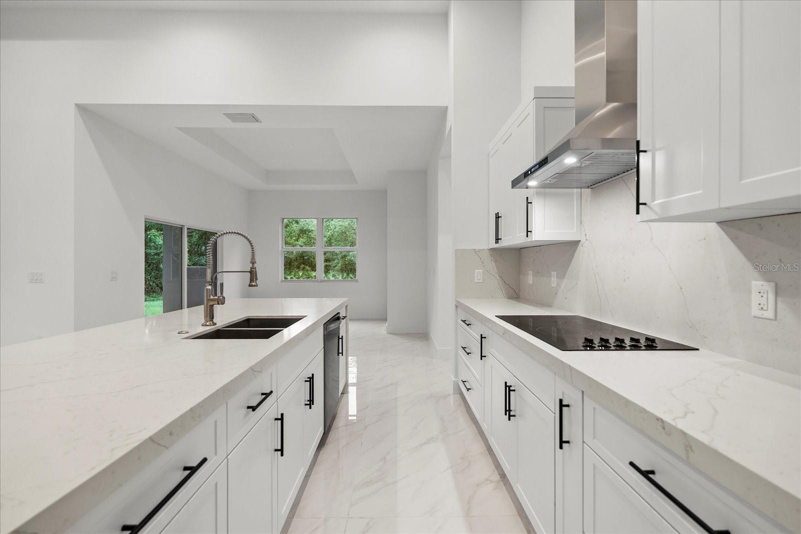 Experience modern living in your custom brand new home in Kissimmee. Open, bright and perfect for indoor/outdoor enjoyment and a luxurious master retreat. Step into this custom 3 bedroom boasting over 2200sq ft featuring an open floorplan high 14ft ceilings with integrated LED lighting that create a bright and airy atmosphere. The beautiful custom kitchen with stunning cabinets is a true centerpiece. The living room features 2 large sliding glass doors effotlessly blending indoor and outdoor features such as the huge partially enclosed HUGE lanai (30ft) perfect for entertaining. Imagine a future outdoor kitchen and pool ready bathroom with exterior access! The master suite is a true escape , featuring two massive walk in closets and a large master bathroom with dual vanities a custom shower and relaxing separate tub. Be the first to enjoy this newly consrtructed gem. Schedule you showing today