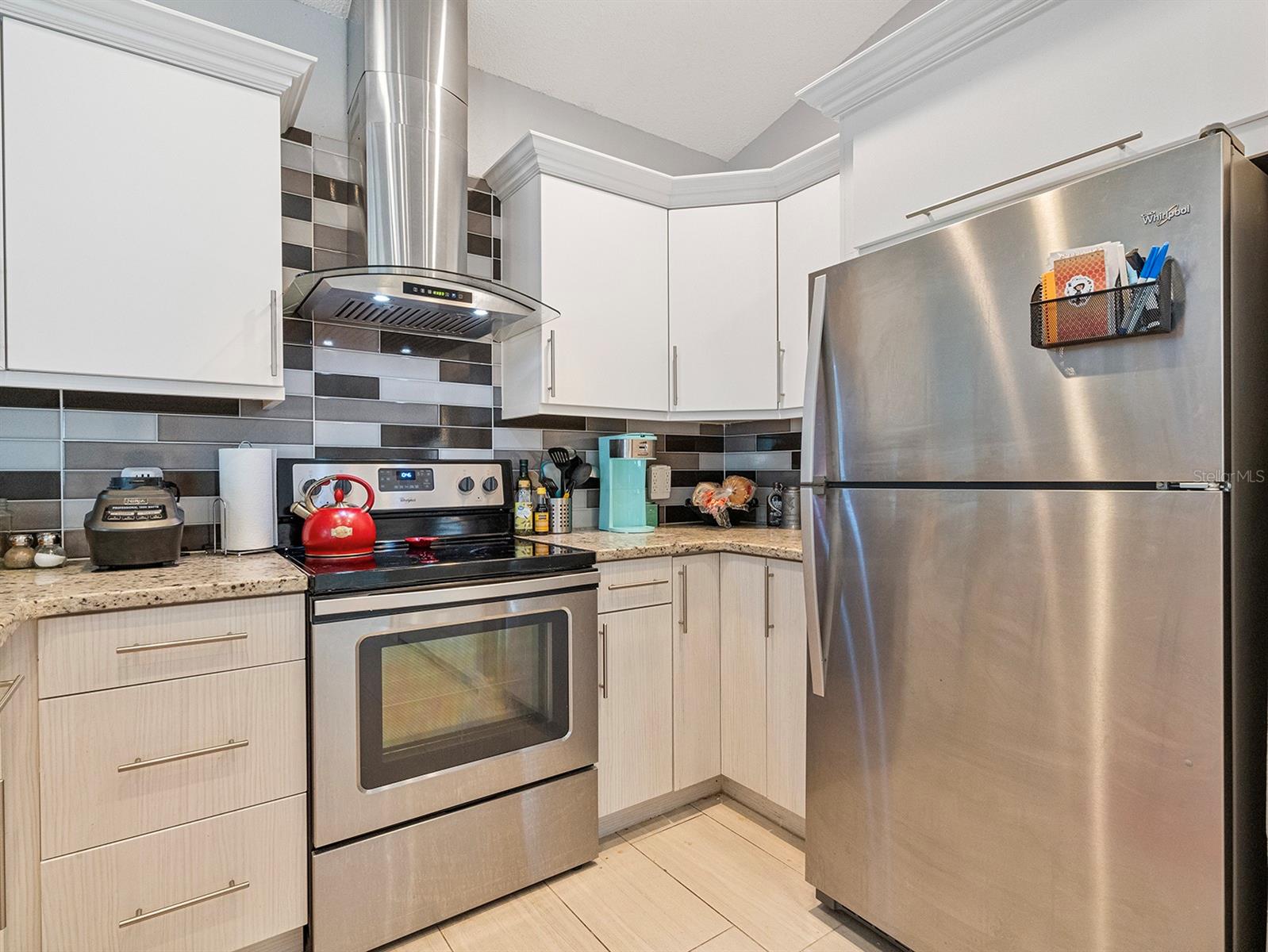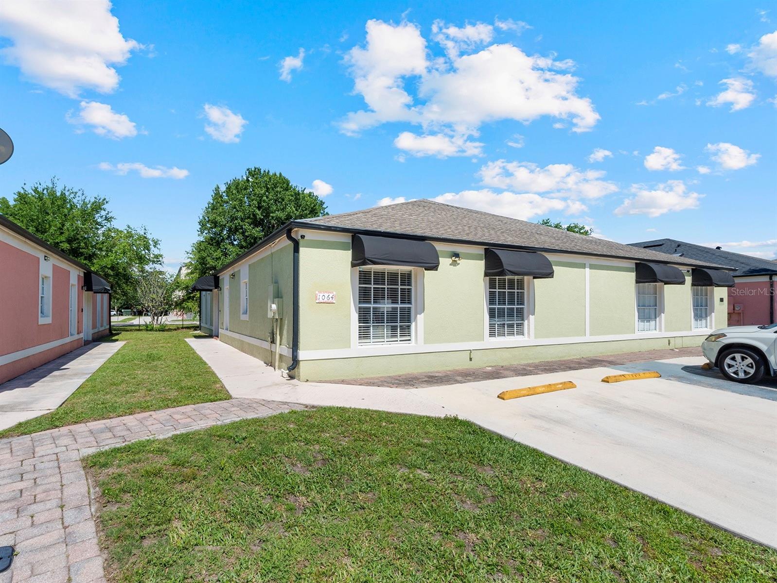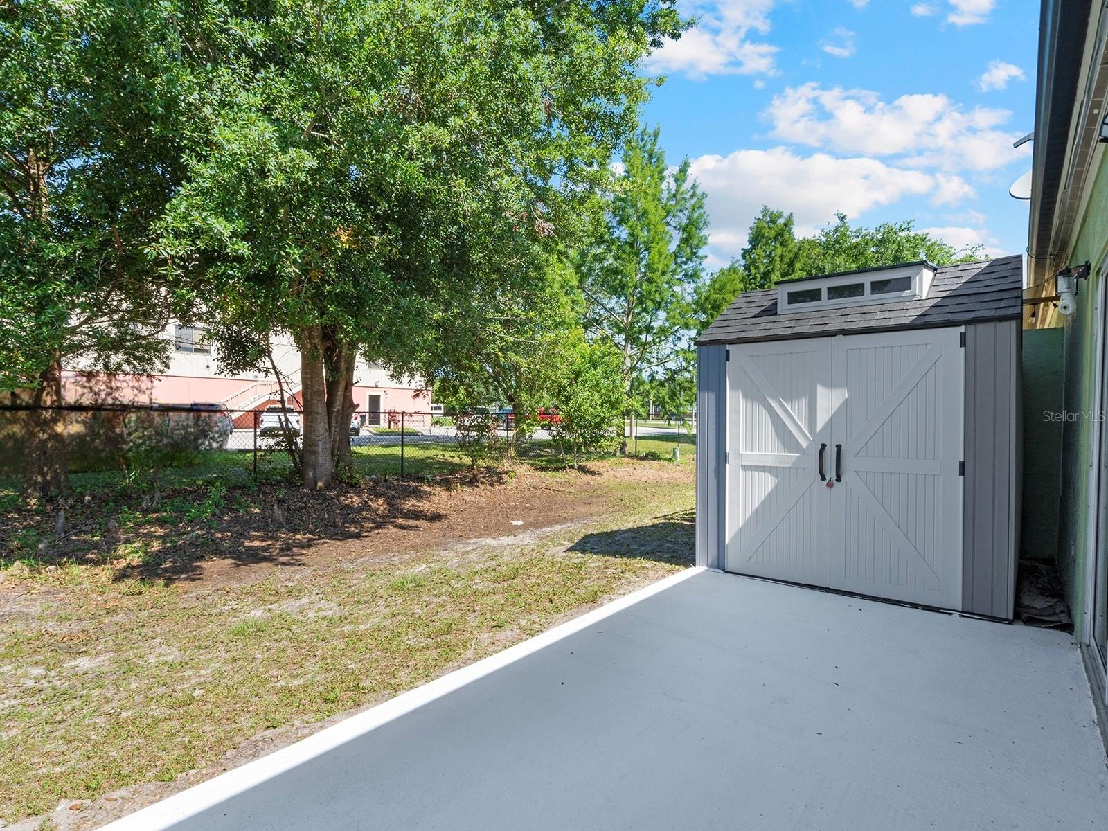 Seller said sell! Now's your chance---price improvement! Tucked within a gated neighborhood with a low HOA fee, you'll find this gorgeous single-story townhouse that feels much more like a single family home with its vaulted ceilings, open floorplan, and large back patio. TOUR THE HOUSE WITH THE VIRTUAL TOUR LINK. As you step in the front door, a spacious foyer welcomes you to an open and airy living space, with modern tile flooring throughout the whole house and no popcorn ceilings! The family room is large enough for all your future gatherings, with plenty of space for large, comfy furniture. The dining area easily fits an oversized table, as well as cabinetry. This open space has a desirable flow, with large windows and great natural light! Plan weekend Bar-B-Qs as you fire up your grill on your large back patio. The additional storage shed there stays with the house, giving you even more storage. Back inside, the family cook will always feel like part of the action while preparing meals and snacks to serve on the large granite bar. The stainless steel appliances, tile backsplash, and elegant cabinetry in the updated kitchen are show stoppers! Down the hallway 3 generously sized bedrooms await. The primary bedroom features a 14 ft X 14 ft space for your king size furniture, and the primary bathroom has been updated with a gorgeous tiled shower, double sink vanity, and both a large walk-in closet, as well as linen closet. The secondary bathroom also features a beautiful floating vanity with tile backsplash and accents in the shower/tub combo. The house is move-in ready! The roof was replaced in 2018, and the AC is only a few years old. This gated neighborhood also features a pool and tennis courts, and the HOA takes care of landscaping and some exterior maintenance. Plus, you have close access to groceries, shopping, Orlando International Airport, and an easy commute to the world class attractions Central Florida is known for!
