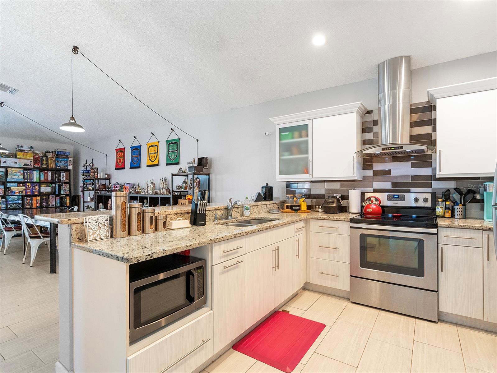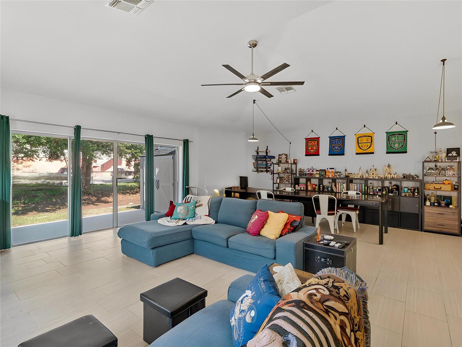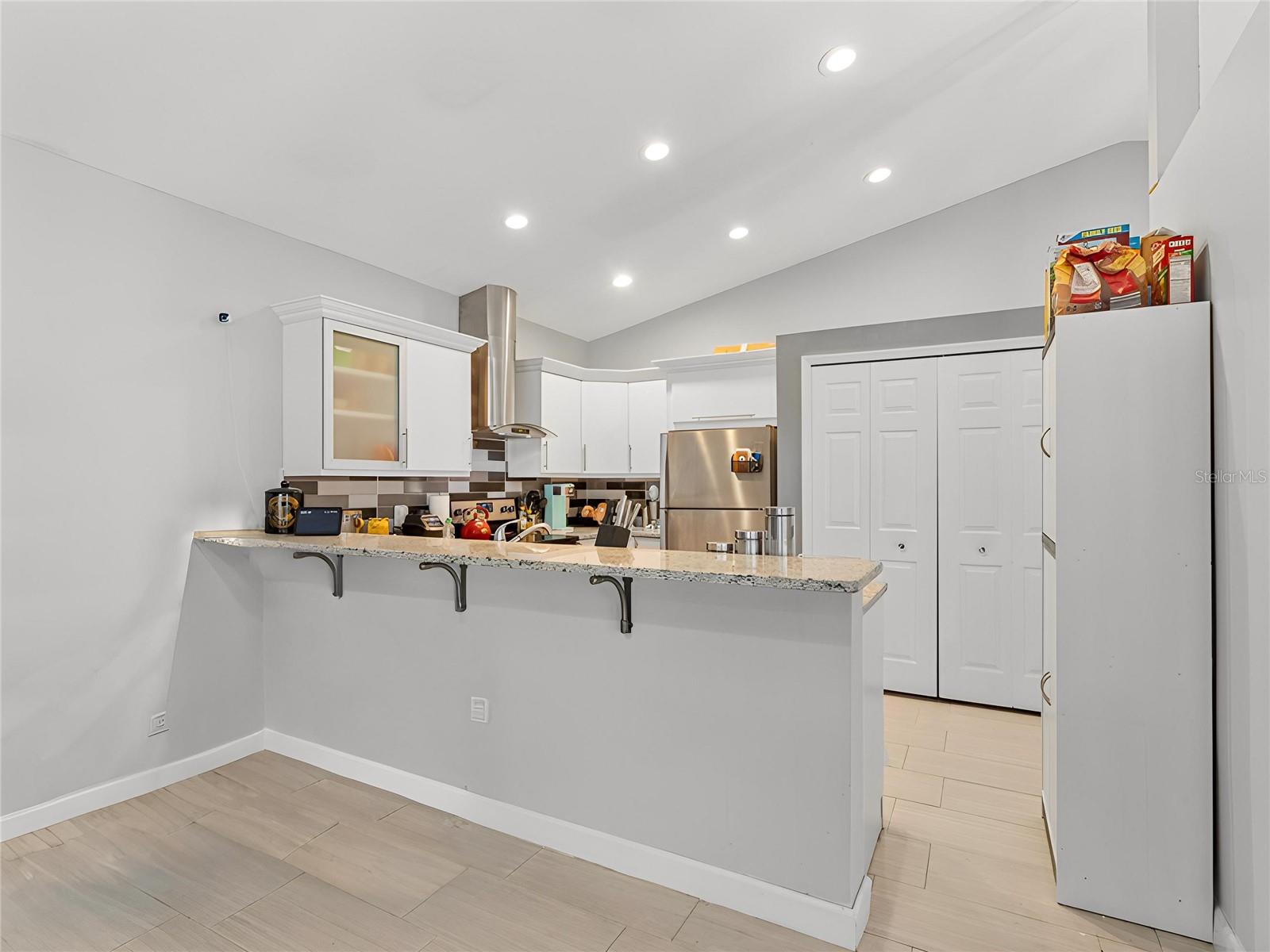 Seller said sell! Now's your chance---price improvement! Tucked within a gated neighborhood with a low HOA fee, you'll find this gorgeous single-story townhouse that feels much more like a single family home with its vaulted ceilings, open floorplan, and large back patio. TOUR THE HOUSE WITH THE VIRTUAL TOUR LINK. As you step in the front door, a spacious foyer welcomes you to an open and airy living space, with modern tile flooring throughout the whole house and no popcorn ceilings! The family room is large enough for all your future gatherings, with plenty of space for large, comfy furniture. The dining area easily fits an oversized table, as well as cabinetry. This open space has a desirable flow, with large windows and great natural light! Plan weekend Bar-B-Qs as you fire up your grill on your large back patio. The additional storage shed there stays with the house, giving you even more storage. Back inside, the family cook will always feel like part of the action while preparing meals and snacks to serve on the large granite bar. The stainless steel appliances, tile backsplash, and elegant cabinetry in the updated kitchen are show stoppers! Down the hallway 3 generously sized bedrooms await. The primary bedroom features a 14 ft X 14 ft space for your king size furniture, and the primary bathroom has been updated with a gorgeous tiled shower, double sink vanity, and both a large walk-in closet, as well as linen closet. The secondary bathroom also features a beautiful floating vanity with tile backsplash and accents in the shower/tub combo. The house is move-in ready! The roof was replaced in 2018, and the AC is only a few years old. This gated neighborhood also features a pool and tennis courts, and the HOA takes care of landscaping and some exterior maintenance. Plus, you have close access to groceries, shopping, Orlando International Airport, and an easy commute to the world class attractions Central Florida is known for!