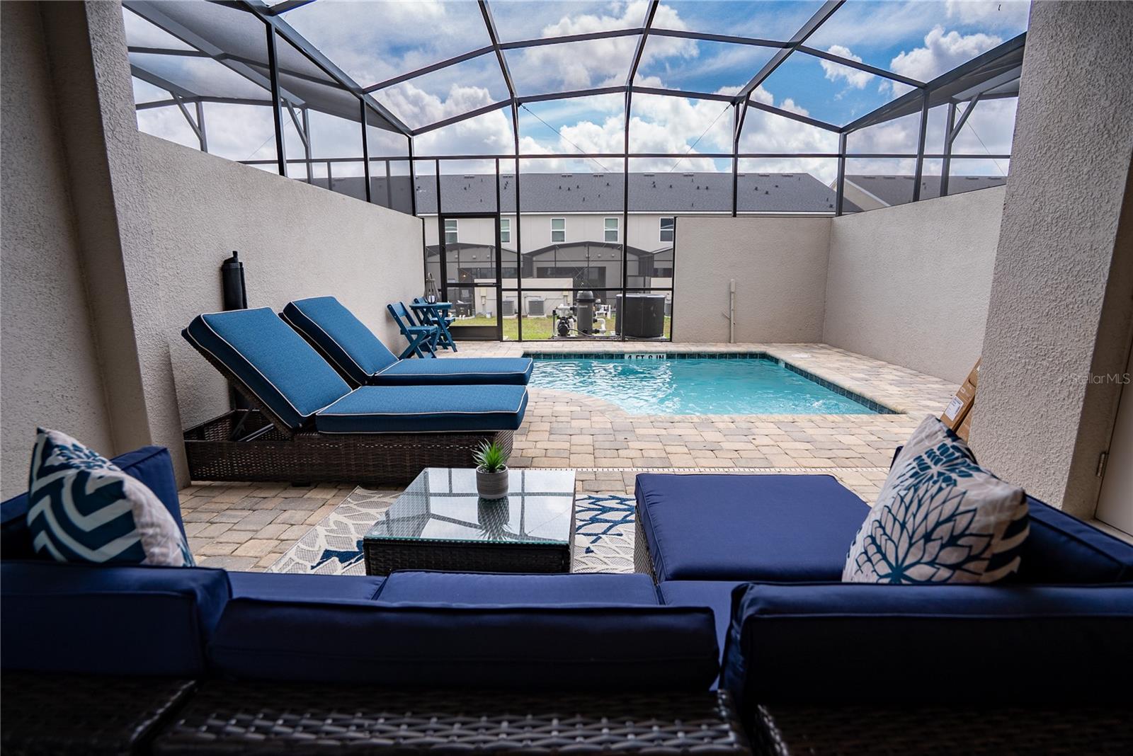 Stunning Vacation Home in the Heart of Solara Resort – Close to Disney! Fully furnished Brand NEW vacation home located in the sought-after Solara Resort. This beautifully designed property offers the perfect blend of luxury, comfort, and convenience, ideal for short-term rental or your personal retreat. This spacious home features 5 bedrooms and 4 1/2 bathrooms, an open-concept layout, and stylish finishes throughout. The gourmet kitchen boasts modern cabinetry, stainless steel appliances, and a large island perfect for entertaining. Step outside to your private screened-in pool and spa, the ultimate spot to relax after a day at the parks. Solara Resort offers great amenities, including a resort-style pool with a splash pad, flow rider surf simulator, clubhouse, fitness center, restaurant, bar, playgrounds, sports courts, and more, all within a gated, secure community.HOA fee includes resort security, use of clubhouse and amenities, landscaping house, irrigation, cable and internet house, daily trash pick up. Whether you're looking for an income-producing property or a vacation home for family getaways, this property offers it all turnkey ready and perfectly located close to Disney, shopping, dining, and entertainment. Don't miss your chance to own a piece of paradise.