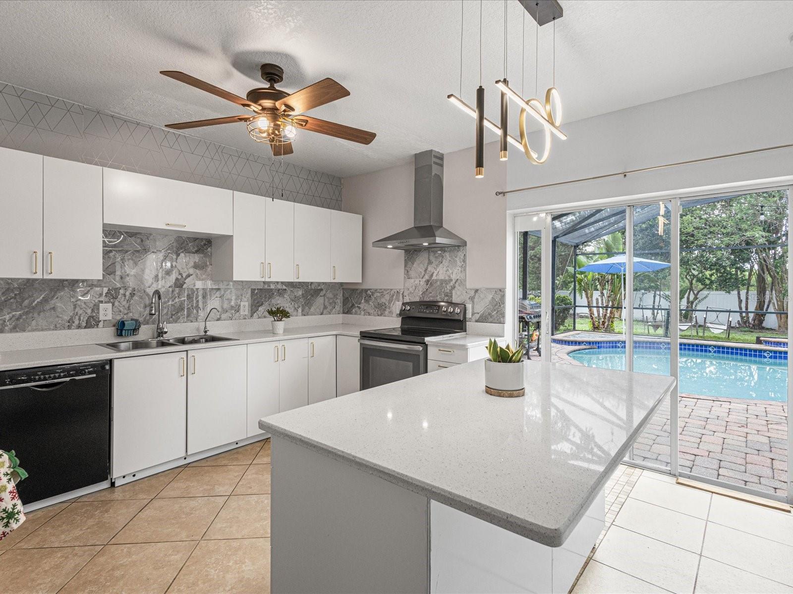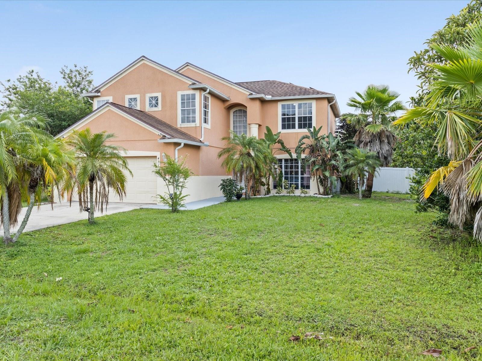 Welcome to Your Central Florida Dream! Located in the beautiful city of Poinciana, this stunning 5-bedroom, 3-bath two-story home sits on an expansive ¼+ acre fenced lot with lush mature landscaping — including your very own producing mango tree! Step inside and you’ll find no carpet anywhere, with all-new bamboo flooring upstairs and fresh interior paint (2023) giving the home a modern, updated feel. The new kitchen (2023) is a showstopper, ready for entertaining or quiet family dinners. Enjoy Florida living at its best with a generous pool and spacious pavered lanai, perfect for relaxing or hosting. Energy efficiency is covered with owned solar panels and a whole-home water treatment system — saving you money and adding peace of mind. Other highlights: a first-floor bedroom, airy upstairs loft, and freshly power-washed driveway and entry walk for fantastic curb appeal. Don’t miss this gem — a move-in-ready oasis in the heart of Central Florida! Updates to include: pool pump 2017, pool filter 2018, kitchen 2023, bamboo flooring 2023, interior paint 2023, Solar panels 2020, gutters 2017, roof 2017, AC 2020, water heater 2020, dishwasher 2023