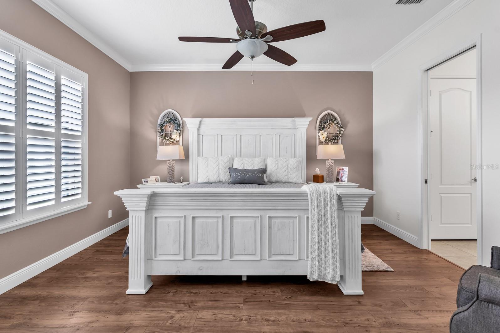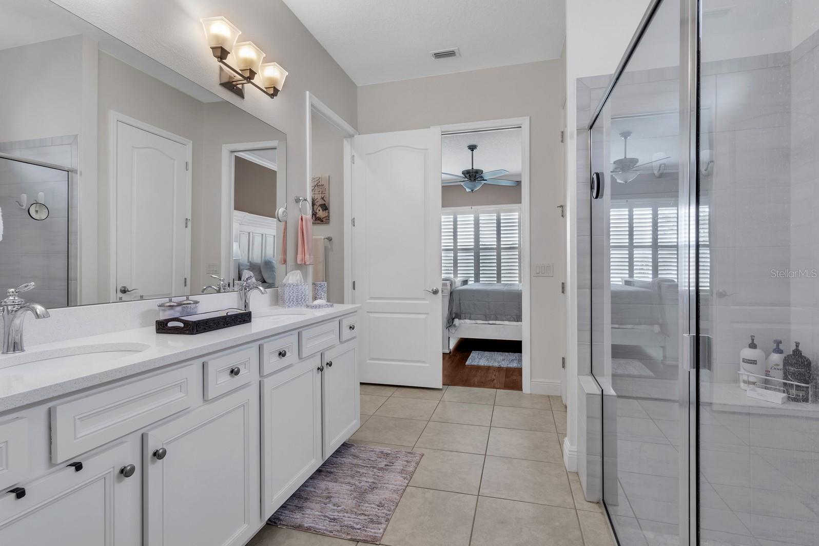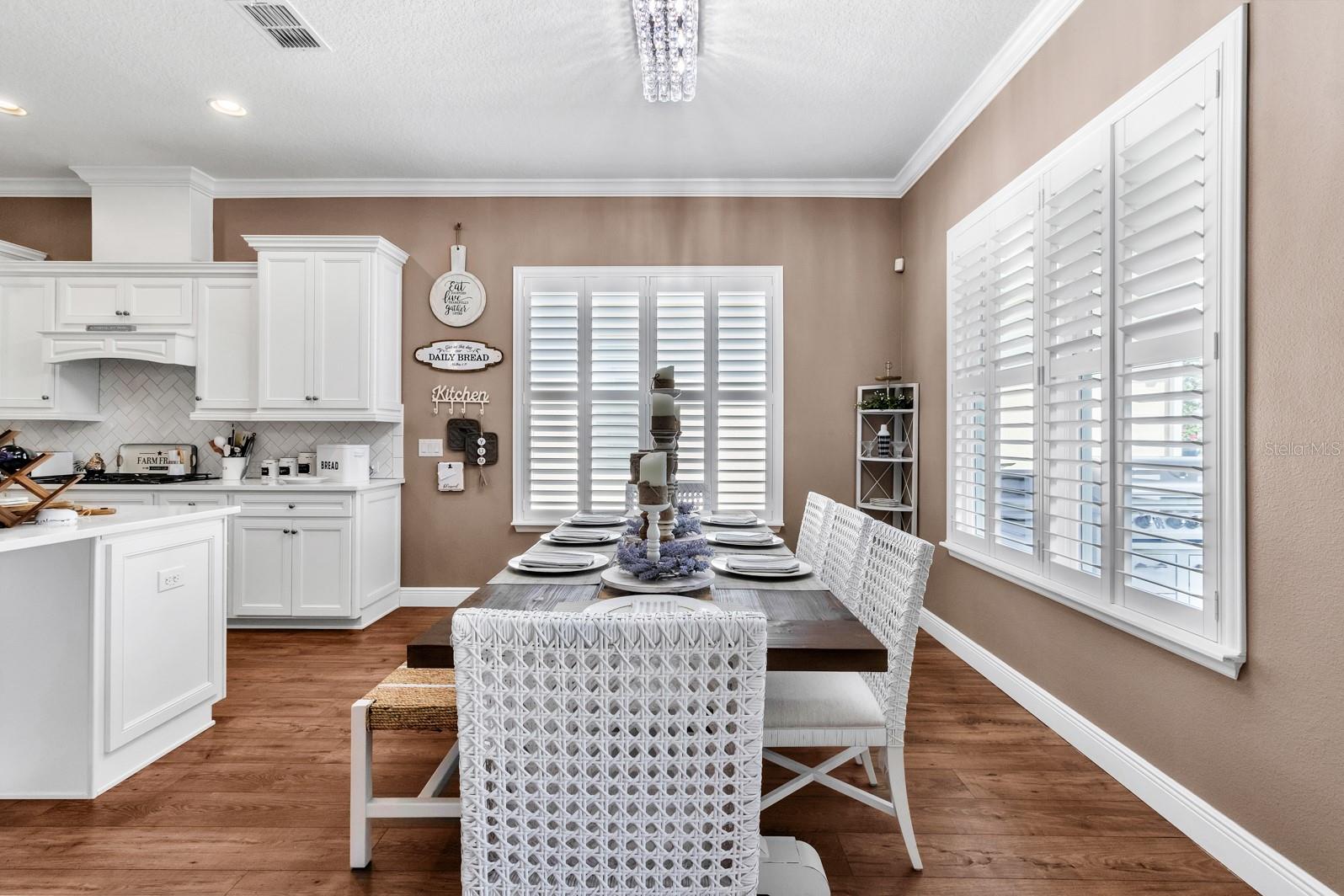 Must see this like new home the “St Thomas” model built by K. Hovnanian’s, this home features many upgrades and is located right on the golf course at Four Seasons at Orlando, one of Central Florida newest and most desirable 55+ communities. Enter and appreciate the Grand Foyer it’s very warm and inviting with the architectural design on tray ceiling, beautiful flooring which makes it’s way into the open floorplan of the kitchen and living area. You will find crown molding throughout the main living area and plantation shutters. The kitchen is a chef’s paradise where you will find, blanco maple quartz counter tops, huge island can accommodate up to 6 seats, a 5 burner gas cooktop with decorative vent hood, built in stainless steel GE double convection ovens and refrigerator, stainless steel apron sink and large walk in corner pantry. In the back of the house, you will find the master featuring an incredibly large walk in closet, double sinks, walk in shower featuring beautiful bianco carrrera tiles throughout. The other two rooms are at the front of the house at entry with a shared full bathroom. There is a private office space off the hallway which sellers used to place a small bed. By the garage entry you will find a large laundry room with front load washer and gas dryer, this home also provides a tankless gas water heater for efficiency. The exterior porch area is another entertaining paradise the outdoor kitchen has under counter refrigerator, storage and sink. This home is perfect for active adult lifestyle, with beautiful Club house, fitness center, pools, tennis courts, pickle ball courts and much more. Located near all the mayor park attractions such as Disney Parks and Resorts. The community is gated and manned by security 24/7.
