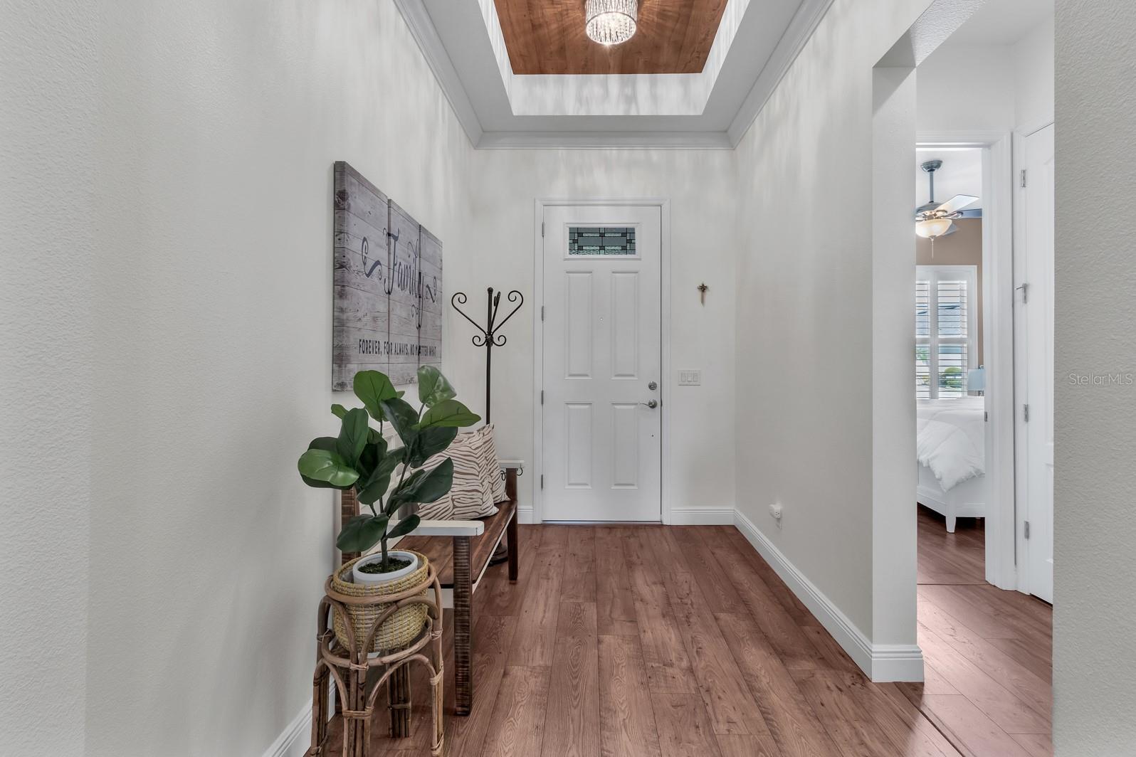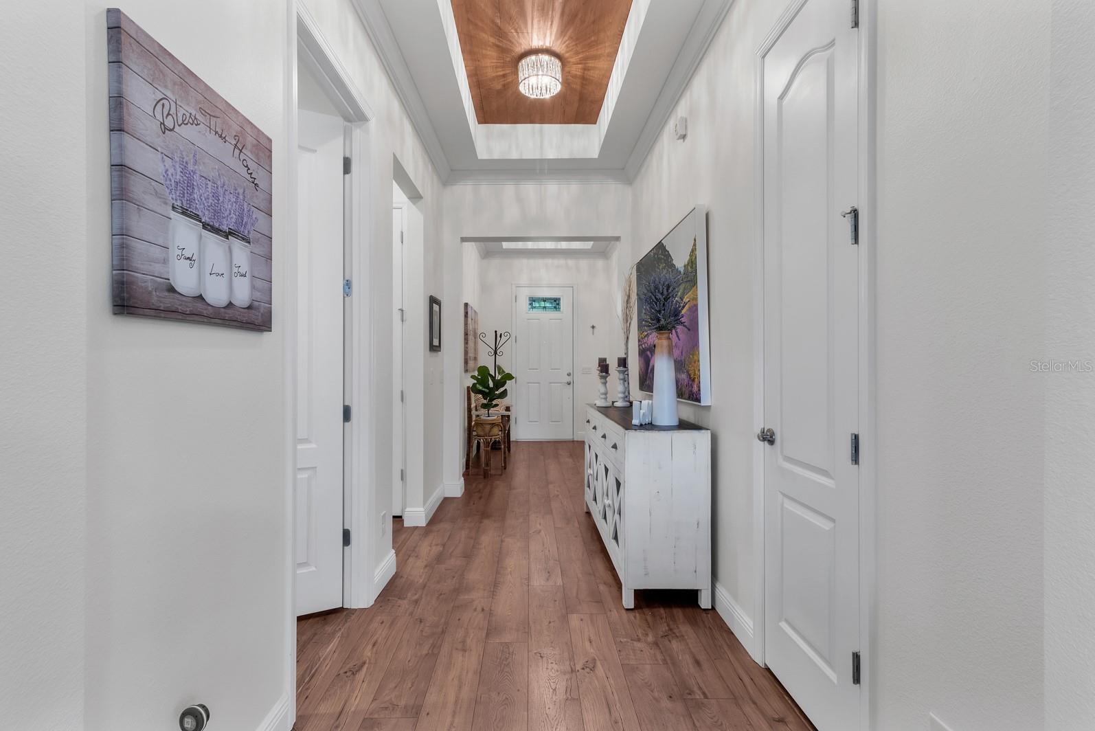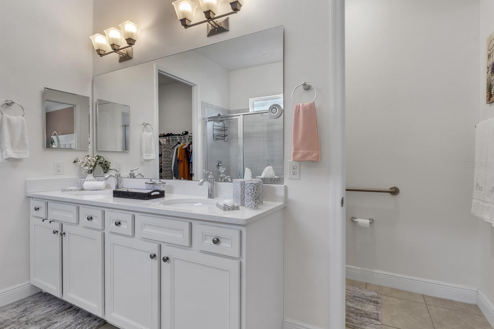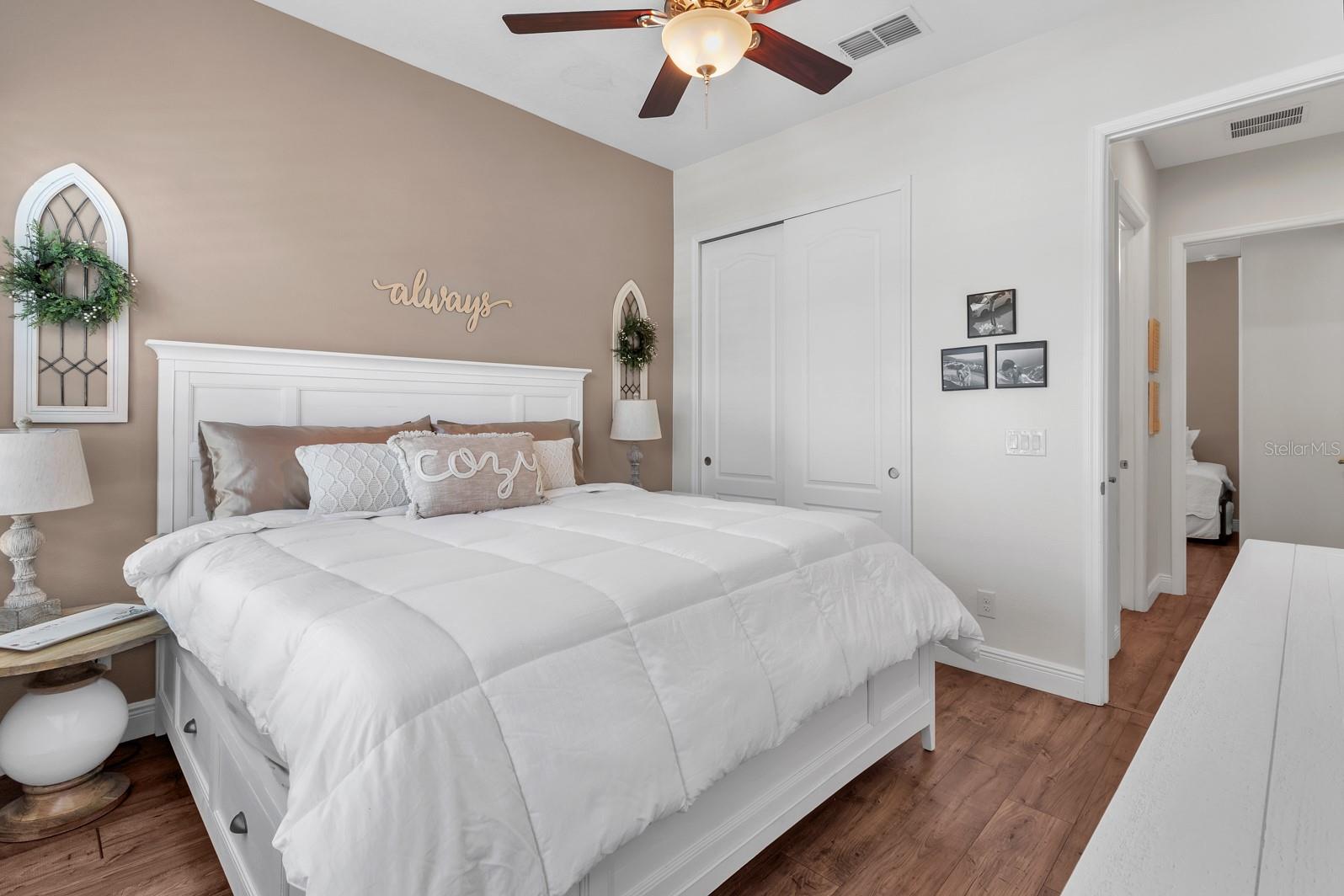 Must see this like new home the “St Thomas” model built by K. Hovnanian’s, this home features many upgrades and is located right on the golf course at Four Seasons at Orlando, one of Central Florida newest and most desirable 55+ communities. Enter and appreciate the Grand Foyer it’s very warm and inviting with the architectural design on tray ceiling, beautiful flooring which makes it’s way into the open floorplan of the kitchen and living area. You will find crown molding throughout the main living area and plantation shutters. The kitchen is a chef’s paradise where you will find, blanco maple quartz counter tops, huge island can accommodate up to 6 seats, a 5 burner gas cooktop with decorative vent hood, built in stainless steel GE double convection ovens and refrigerator, stainless steel apron sink and large walk in corner pantry. In the back of the house, you will find the master featuring an incredibly large walk in closet, double sinks, walk in shower featuring beautiful bianco carrrera tiles throughout. The other two rooms are at the front of the house at entry with a shared full bathroom. There is a private office space off the hallway which sellers used to place a small bed. By the garage entry you will find a large laundry room with front load washer and gas dryer, this home also provides a tankless gas water heater for efficiency. The exterior porch area is another entertaining paradise the outdoor kitchen has under counter refrigerator, storage and sink. This home is perfect for active adult lifestyle, with beautiful Club house, fitness center, pools, tennis courts, pickle ball courts and much more. Located near all the mayor park attractions such as Disney Parks and Resorts. The community is gated and manned by security 24/7.