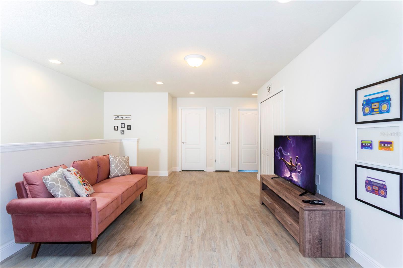 This fully furnished 5-bedroom, 4.5-bath townhouse is located in the Windsor at Westside community. Features include a modern kitchen with granite countertops and stainless steel appliances, open concept living and dining areas, loft upstairs, and laundry room with cabinets. The property offers a heated, screened private pool, a one-car garage with alley access, and central air conditioning. Windsor at Westside amenities include clubhouse, lazy river, pools, sports courts, playground, arcade room, poolside bar and restaurant, and 24-hour security. HOA fees cover maintenance. Conveniently located near schools, shopping, and major highways.