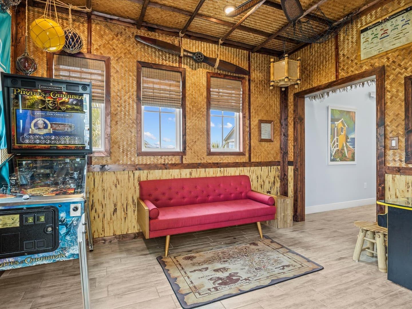Spectacular ONE-OF-A-KIND Phase 1 Premium Waterfront Cottage at Margaritaville! LARGE 3 Bedroom, 3.5 Bathroom 1818-A Model with UNIQUE ONE OF A KIND CUSTOM BUILT TIKI THEMED LOFT - THE ONLY ONE IN THE ENTIRE RESORT! Loft is a Magnificent Tranquil Hideaway with "Pirates of the Caribbean" Pinball Machine and Cocktail Table Style Arcade Game with Hundreds of Games! Cottage is Located on a Corner Lot Next to the Bridge with Water Views on Three Sides of the Home and a Tiki Hut on the West Side! Backyard has Beautiful Foliage and Palm Trees, In Ground Heated Pool and Spa with Patio Overlooking Large Lake with Stunning Sunsets! Upgraded Tile Flooring and Quartz Countertops! GE Stainless Steel Appliances, Ceiling Fans and In-Ceiling Speakers in Living Room that Connects to TV or Phone for Music Via App! Dining Area has Large Windows Providing Natural Sunlight and Scenic Views. List Price INCLUDES MRO Approved High-End Ethan Allen "IN PARADISE" Furniture/Housewares Package, PINBALL MACHINE, ARCADE GAME, TIKI ROOM FURNITURE and Decor. Furniture/Housewares Package also includes Blinds, Drapes, TVs, Artwork, Kitchen Necessities, Dishware, Linens, and so MUCH MORE! Unique First of its Kind Resort with Multiple Pools, Gym, On-Site Water Park, Sunset Walk Restaurants Bars, Live Music, Retail, Live Music and More! LOCATED MINUTES FROM DISNEY! It's A Lifestyle Choice For Those Who Want To Experience The Best Of Florida Living, Where Every Day Feels Like A Vacation!