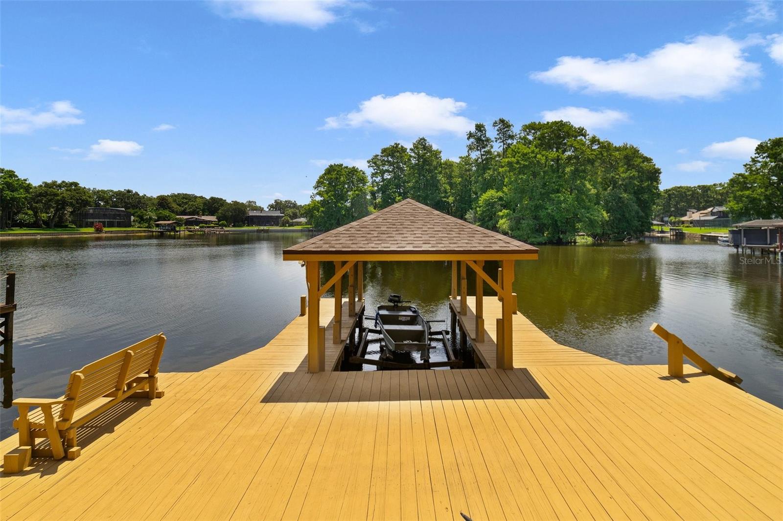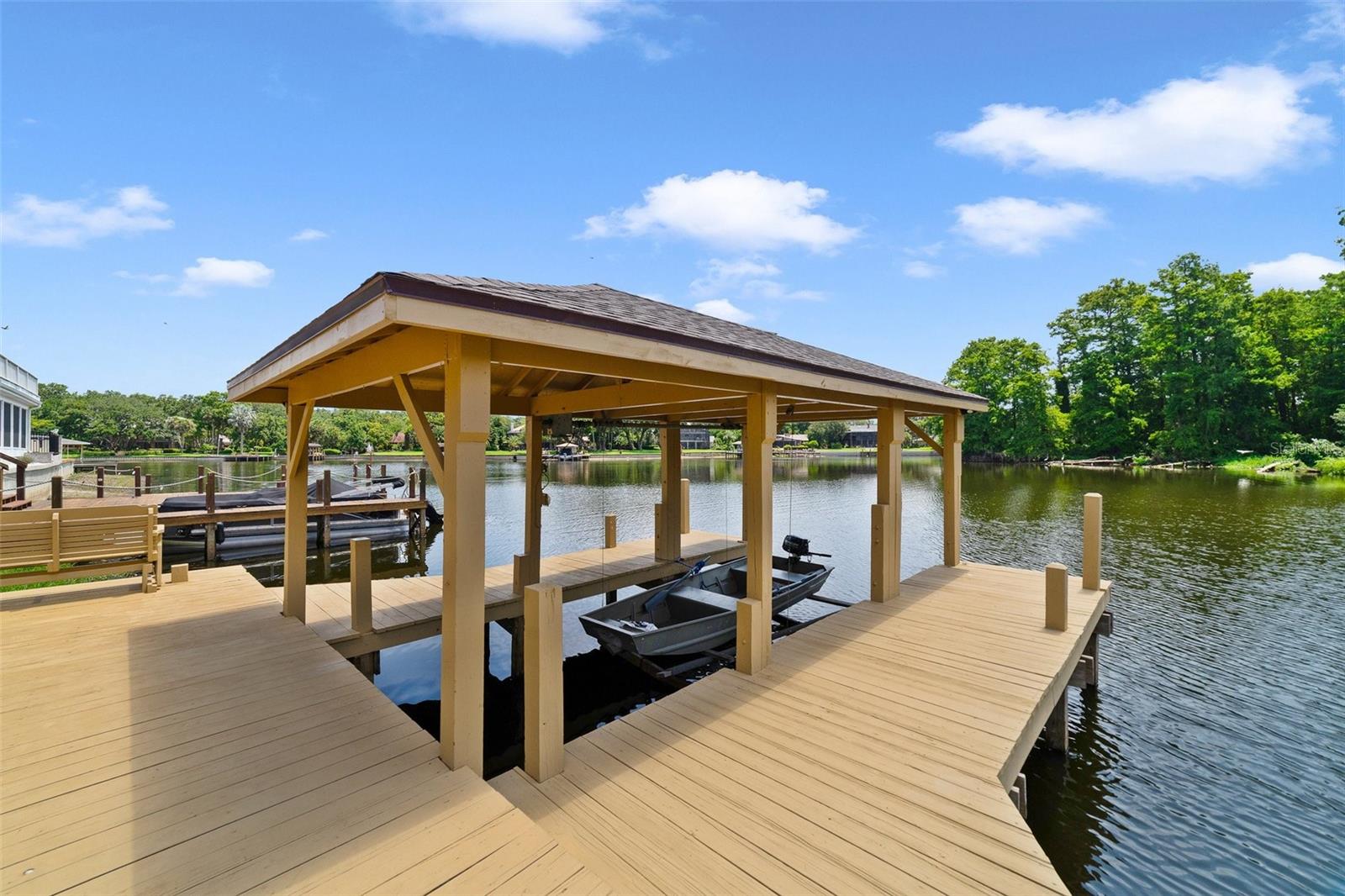 One or more photo(s) has been virtually staged. Florida LAKE LIFE is calling – are you ready to answer? Welcome to Regal Bay, a small GATED COMMUNITY tucked along the shores of LAKE TOHO – where nature meets neighborly charm! With just 23 homes, Regal Bay is a hidden gem in Kissimmee offering residents tranquility, friendly faces and a truly idyllic Florida lifestyle. This spacious two story WATERFRONT HOME sits proudly towards the end of a quiet CUL-DE-SAC on a generous .22 ACTE LOT, surrounded by CONSERVATION and serenaded by the sounds of native birds from the nearby BIRD SANCTUARY! Inside, you will be pleased to discover a light and bright interior featuring crown molding, chair rail details, and a neutral color palette that lets the LAKE VIEWS take center stage. The massive floor plan offers space for everyone and everything – whether you are hosting family and friends or enjoying a quiet sunset. The MAIN FLOOR PRIMARY SUITE is a retreat in itself, with serene water views, DUAL WALK-IN CLOSETS, and a private en-suite bath. Need a second primary suite? There is potential for that upstairs! There are MULTIPLE FLEX SPACES, formal and casual living/dining areas, and the many windows along the back of the home bring in natural light and the unbeatable Regal Bay/Lake Toho views. Out back your PRIVATE DOCK & BOATHOUSE with lift (updated/refreshed between 2020-2025 with a 2.5 ton lift capacity) make lake access a breeze. Spend your days on your boat, fishing, or simply soaking up some sun on the water. In the evenings catch breathtaking sunsets from the front of the home while the birds in the sanctuary settle in for the night. This home has been well maintained and offers a NEWER A/C (downstairs 2023, upstairs 2019), WATER HEATER (2020), ROOF (2017) and EXTERIOR PAINT (2023). The landscaping has been thoughtfully designed to compliment the charming brick accents and add to the home’s delightful curb appeal. Living in Regal Bay means enjoying community perks like the gated access, a screened COMMUNITY POOL, tennis courts and of course easy LAKE ACCESS – all while still being close to every convenience. You are just minutes from Cross Prairie Parkway, Neptune Road, the Florida Turnpike, and Highway 192 for easy access to a variety of shopping and dining options. You will also appreciate the proximity to area theme parks and attractions, downtown Kissimmee, St Cloud and several other lakes are all within easy reach. With a transferable termite bond for peace of mind and a location that’s all about laid back Florida living, this home is ready to welcome you into a life of lakefront fun. Call today to schedule a tour and fall in love with your new HOME SWEET HOME!