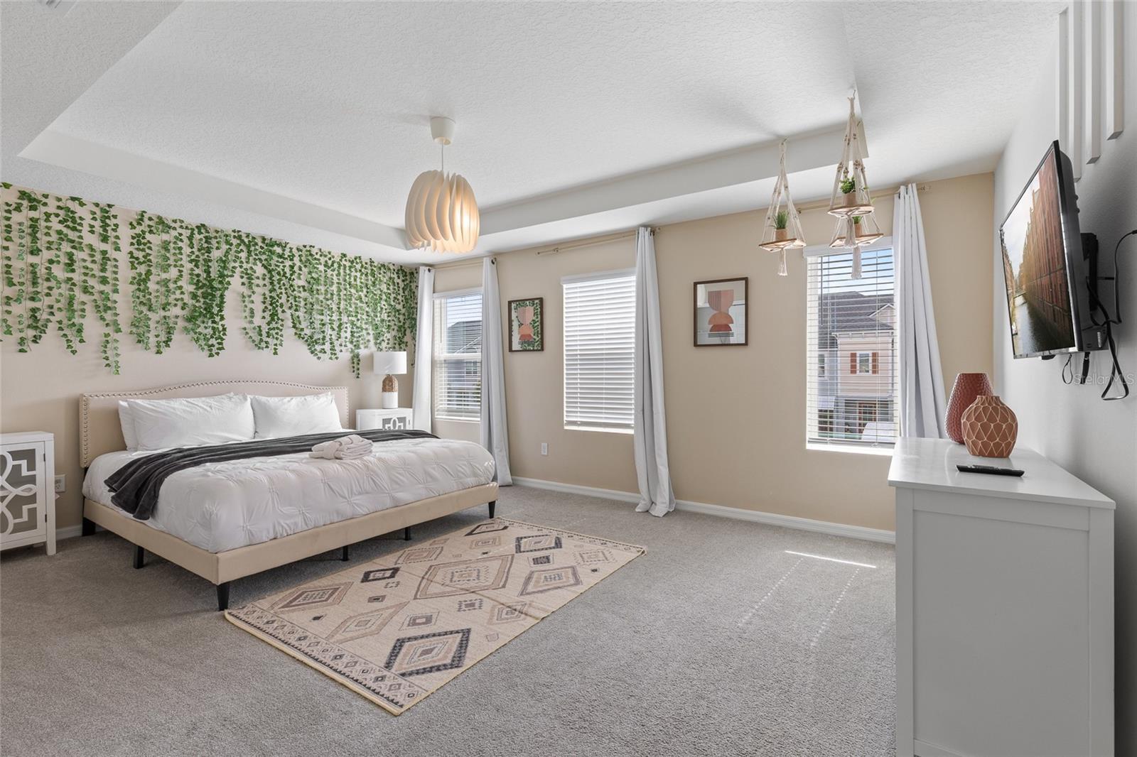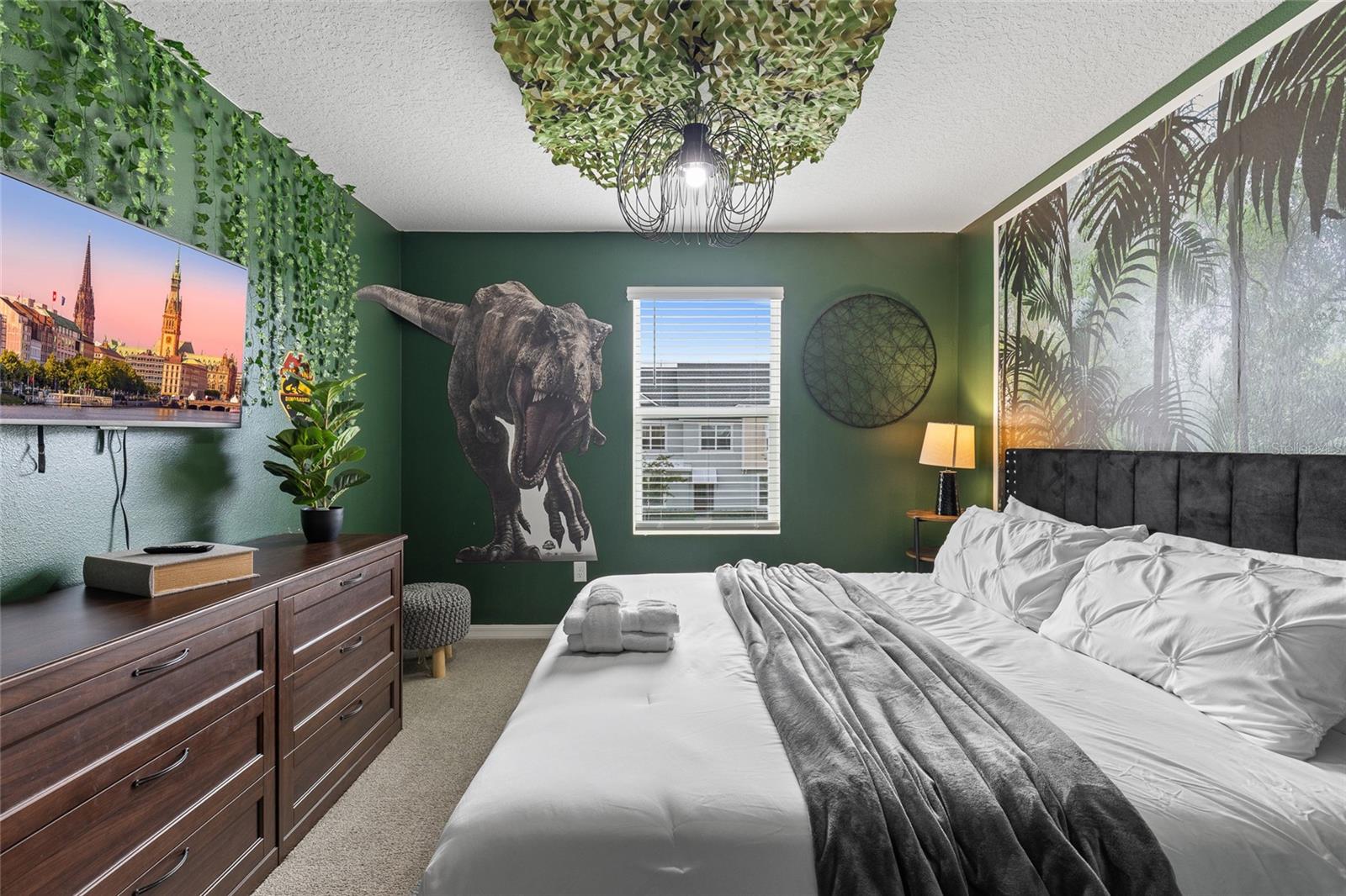 SELLER MOTIVATED. Step into resort-style comfort at 1809 Tropical Palms Circle, an 7-bedroom, 6.5-bathroom pool home located within the gated Solara Resort—a premier destination for short-term rental investments and Central Florida living near Disney. From the moment you arrive, this home sets the tone with a clean, contemporary façade and a welcoming covered entry. Inside, the foyer opens into a sunlit main living area with sleek tile flooring, natural light, and high ceilings that accentuate the open-concept design. The foyer leads directly into a spacious main living area where you’ll find a gourmet kitchen outfitted with quartz countertops, stainless steel appliances, a large center island, and ample cabinetry—perfect for hosting or relaxed family dinners. The thoughtful layout includes a bright dining space and generous living room with stackable sliding glass doors that extend your living space to the PRIVATE HEATED POOL & SPA. Whether lounging poolside or entertaining under the covered lanai, this home is built for creating unforgettable moments in the Florida sun. Downstairs, a spacious primary suite offers a tranquil escape, complete with an en-suite bath featuring double vanities and a walk-in shower. An additional first-floor bedroom provides flexibility for guests or multi-generational living. Upstairs, the oversized loft offers bonus space for entertainment, play, or relaxation. Each of the themed bedrooms upstairs is uniquely styled to create an unforgettable experience. Guests will delight in the Star Wars and Disney princess-inspired rooms—both visually captivating and perfect for a short-term rental audience. Multiple en-suite bathrooms, generous closet space, and a full-sized laundry room on the second floor add comfort and convenience for large groups. This home is FULLY FURNISHED and MOVE-IN READY, with thoughtful updates throughout, including stylish décor, quality furnishings, and turn-key design that meets the expectations of today’s travelers or relocating buyers. Located in the highly sought-after Solara Resort, residents and guests enjoy access to world-class amenities including a resort-style pool with splash zone and water slide, FlowRider® surf simulator, clubhouse, fitness center, basketball and volleyball courts, game room, on-site restaurant, and daily resort activities. Solara is one of Central Florida’s premier short-term rental communities, zoned for 1–7 day minimum stays, making it a smart investment for those seeking income potential plus personal use flexibility. Just minutes from Walt Disney World, Margaritaville, Sunset Walk, and renowned golf courses, plus dining, shopping, and entertainment, this MOVE-IN READY home blends lifestyle, location, and luxury.