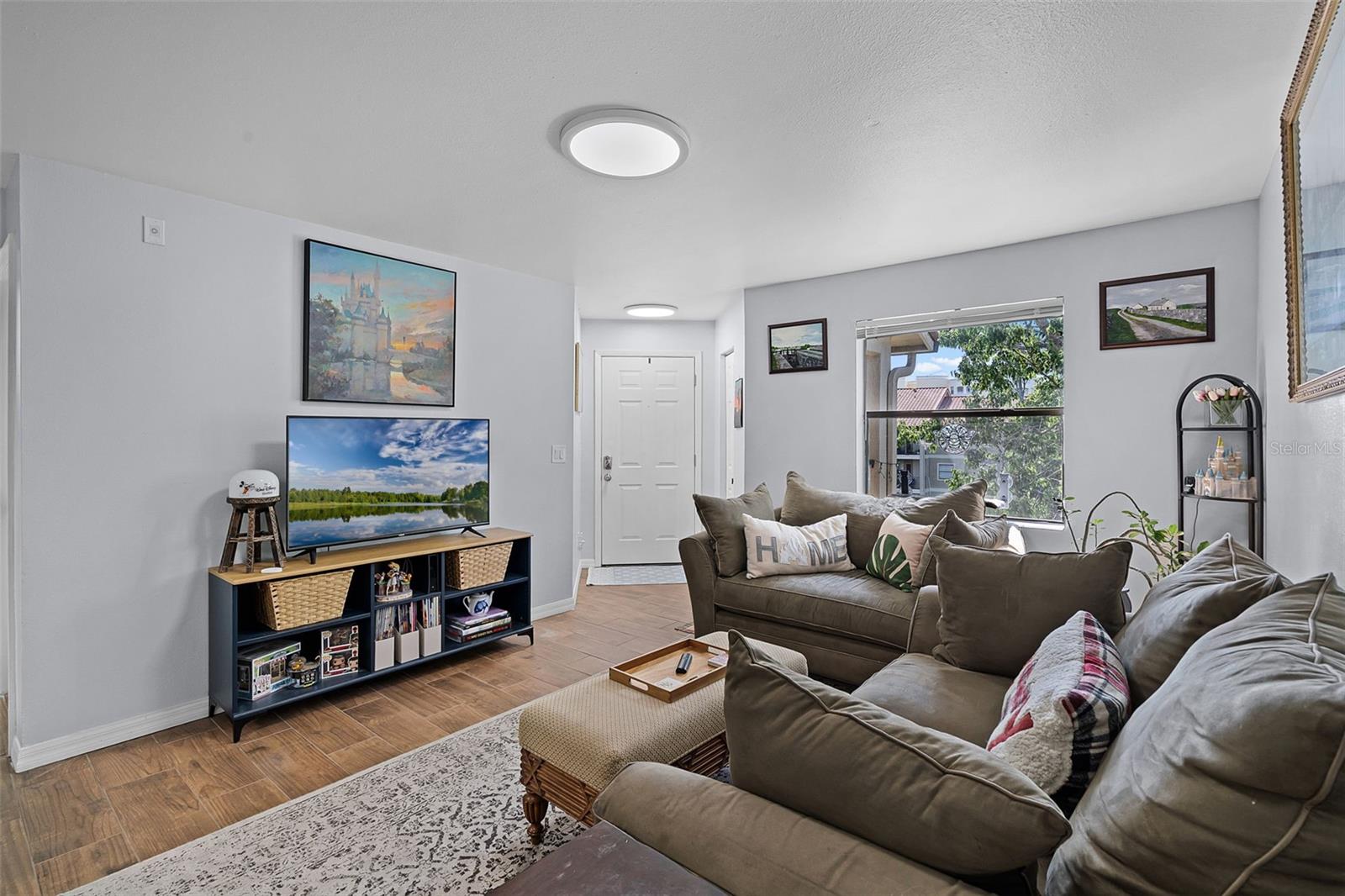 Take advantage of the Seller's current assumable loan rate of 4.875% for qualified buyers! Take in the views, stop paying rent and start building wealth in the heart of this Disney location situated in between picturesque Disney Resorts and Celebration communities. Seller relocation to your benefit, as the work is done in this beautifully upgraded, immaculately maintained home on the top floor away from neighbors. Peaceful water views from the spacious front lanai allowing you to unwind from the day. Charming open floor plan is ideal for entertaining. Kitchen has a large island, commercial grade sink and faucet and beautifully designed with granite, glass tile back splash. Enjoy the split bedroom plan ensuring individual privacy with their own bathrooms. Primary Ensuite has been completely updated with rain shower doors, new vanity and custom closet for maximum storage. Every room has green tree and water views! You will appreciate the convenience of the private laundry room allowing you to close away while laundering clothing in your home. For physical activity, take a dunk in the large pool after working out in the fitness center. Have guests participate in a game of tennis or basketball and take tots to the playground and picnics for weekend fun. The clubhouse is very convenient for larger gatherings. Too much to share, schedule a private showing before this special property is gone in this outstanding location close to all Disney facilities, shopping and posh Celebration!