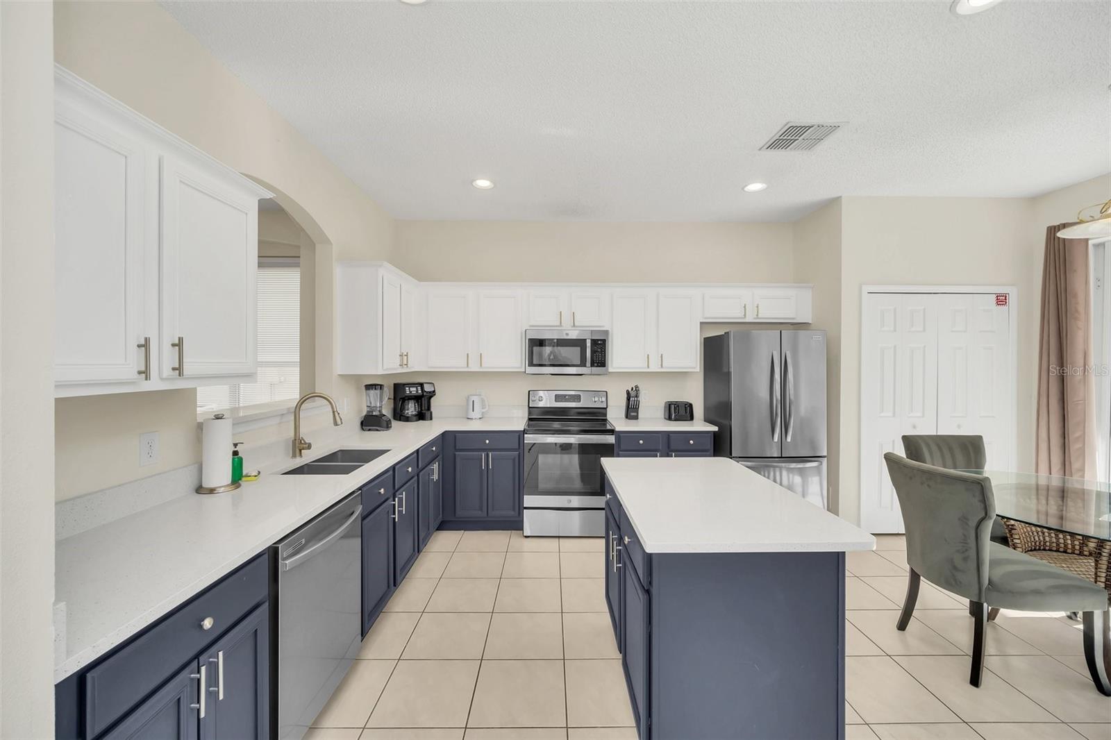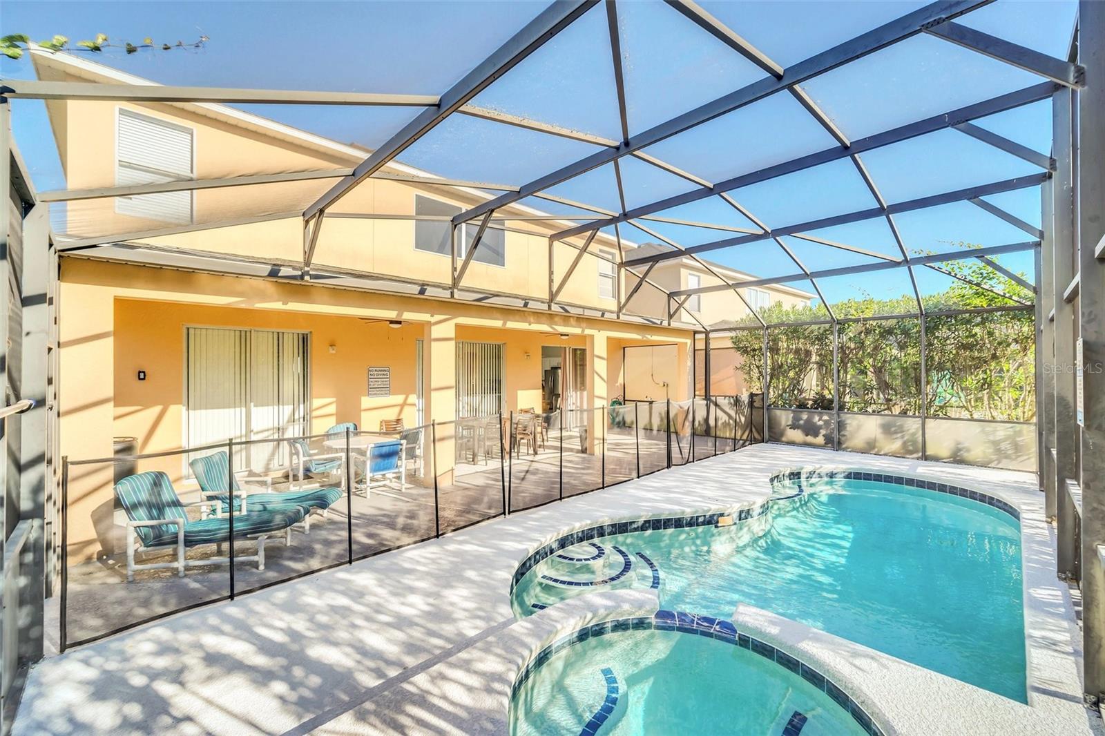 Motivated seller!!! $20,000 PRICE REDUCTION!!! Welcome to your vacation oasis! Nestled in the beautiful Emerald Island Resort, this 6-bedroom pool home is a true delight. Perfectly suited for short-term rental, this property boasts a new pool heater ensuring year-round enjoyment of the pool and spa, new roof in 2024, kitchen remodel, garage converted to game ready room, new paint throughout the home, all new smart televisions. . Currently in a rental pool with strong reservations, the projected revenue for 2025 exceeds $50,000, providing an attractive investment opportunity. Future reservations that are strong through October can stay with the home with continued use of current management company. The tastefully decorated interiors provide a clean slate for you to infuse your own magic touch. Home is loaded with potential! All furnishings will remain, facilitating a smooth transition. Owners and guests alike enjoy access to the resort's premier amenities, including 2 heated outdoor pools, a spa, dry sauna, fitness center, Tiki Bar, volleyball court, tennis, basketball & pickleball court, arcade, 2 playgrounds, and 11 acres of nature trails! Conveniently located with quick access to major theme parks, especially Disney World, being just 10 minutes away, this