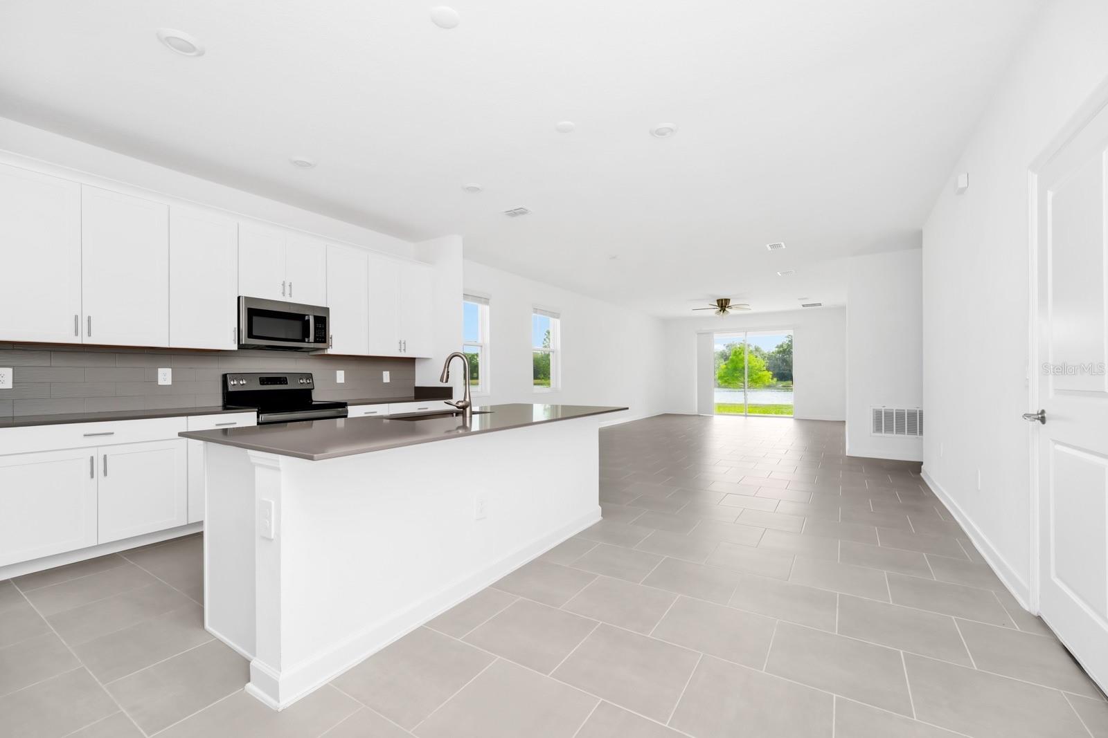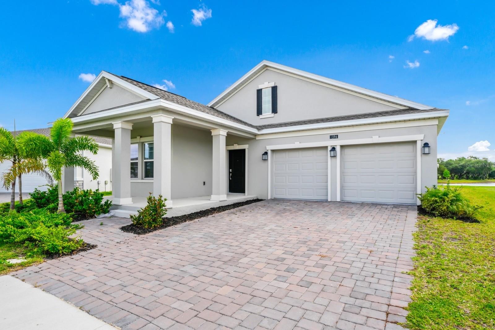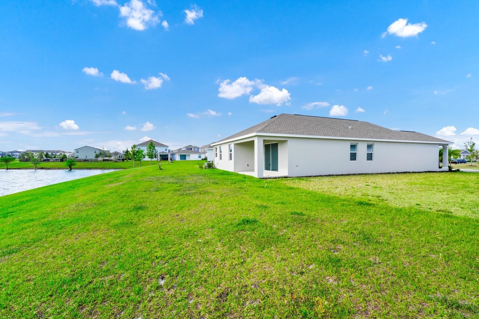 SELLER MOTIVATED. Better than new, this stunning property offers a breathtaking lake view, where tranquil waters shimmer under the sun and serene sunsets paint the sky each evening. The Bourne checks all your boxes. This exceptional three-bedroom, two bathroom home features a welcoming front porch and a two car garage. The open fully equipped kitchen overlooks the combination dining and family rooms. The luxurious owner bedroom includes a spa-inspired owner bath, with separate bathtub and shower as well as his and her sinks. Upgraded features include: 42" cabinets with quartz countertops in both kitchen and bathrooms and stainless appliances. There is a laundry room with washer and dryer. The community offers parks, playgrounds, a clubhouse with a resort style pool, tennis courts and walking paths. With easy access to major highways, commuting to Orlando, the theme parks, east and west coast beaches, and surrounding areas is a breeze. Don't miss the opportunity to make this exquisite house your forever home. Schedule a showing today and experience the charm and elegance of 1596 Contentment Lp for yourself.