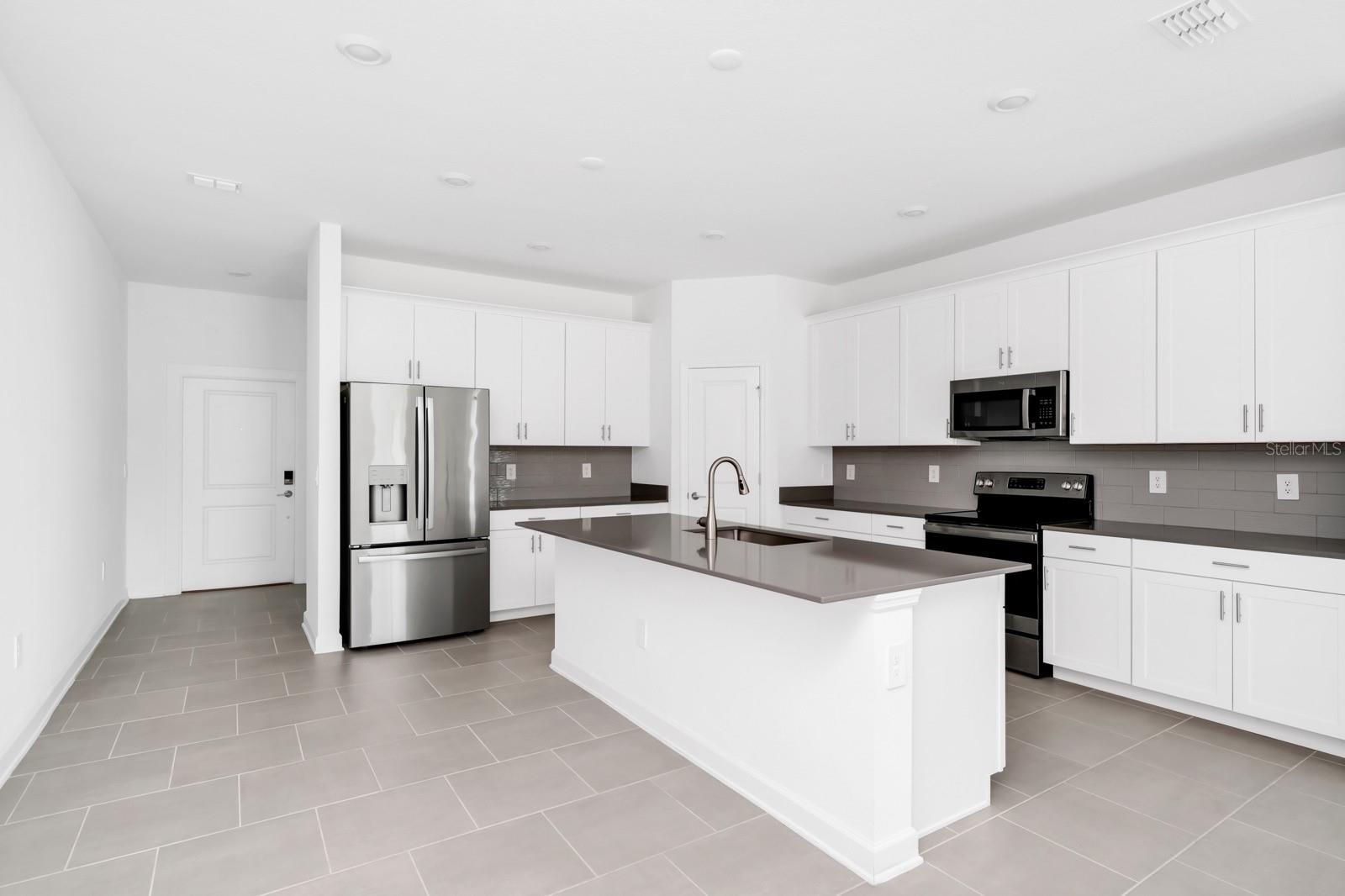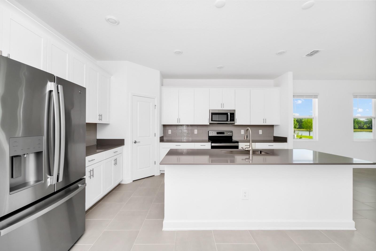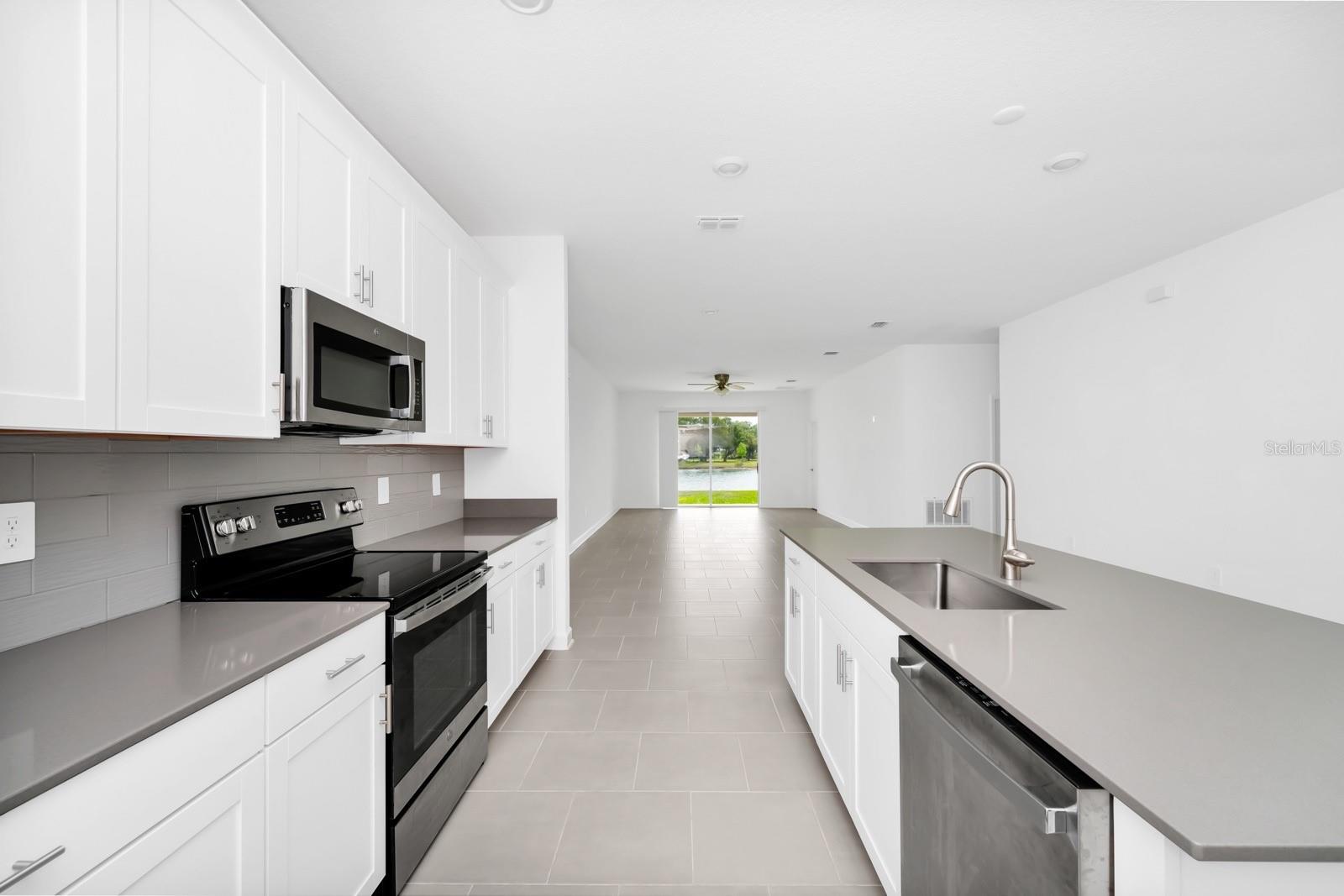 SELLER MOTIVATED. Better than new, this stunning property offers a breathtaking lake view, where tranquil waters shimmer under the sun and serene sunsets paint the sky each evening. The Bourne checks all your boxes. This exceptional three-bedroom, two bathroom home features a welcoming front porch and a two car garage. The open fully equipped kitchen overlooks the combination dining and family rooms. The luxurious owner bedroom includes a spa-inspired owner bath, with separate bathtub and shower as well as his and her sinks. Upgraded features include: 42" cabinets with quartz countertops in both kitchen and bathrooms and stainless appliances. There is a laundry room with washer and dryer. The community offers parks, playgrounds, a clubhouse with a resort style pool, tennis courts and walking paths. With easy access to major highways, commuting to Orlando, the theme parks, east and west coast beaches, and surrounding areas is a breeze. Don't miss the opportunity to make this exquisite house your forever home. Schedule a showing today and experience the charm and elegance of 1596 Contentment Lp for yourself.