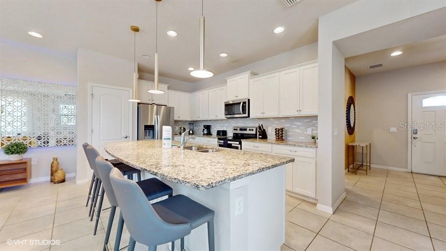 Massive PRICE DROP! Welcome to this FULLY BOOKED end-unit townhome in the sought after 24-hour guard-gated, short-term rental/vacation community of Windsor at Westside! This home is booked well in to 2026 and all the bookings will transfer to the new owner. Originally the builder’s model home, this property features over $60K in upgrades and a high-end furniture package. It has been well maintained and is the perfect retreat. This 5-bedroom, 4.5-bathroom home offers a highly functional layout, including one bedroom on the main floor and a convenient half bath off the south-facing poolside patio—perfect for entertaining or relaxing under the Florida sun. Interior upgrades include premium cabinetry and luxury countertops, adding style and durability. Directly outside of the back pool area is a walkway to the Mediterranean style recreation center, which is an amenity rich hub featuring a resort style pool and lazy river, kids splash pad, indoor/outdoor restaurant & bar, full gym, outdoor fireplace, sports courts, playground & more! Located between ChampionsGate and US-192, with quick access to I-4, Disney, Orlando International Airport, shopping, dining, and world-class attractions—this is the ultimate vacation investment, where you can receive rental income right away or use as your personal family getaway. Don’t miss this opportunity to own a professionally furnished, turn-key home in one of Central Florida’s most sought-after vacation communities!