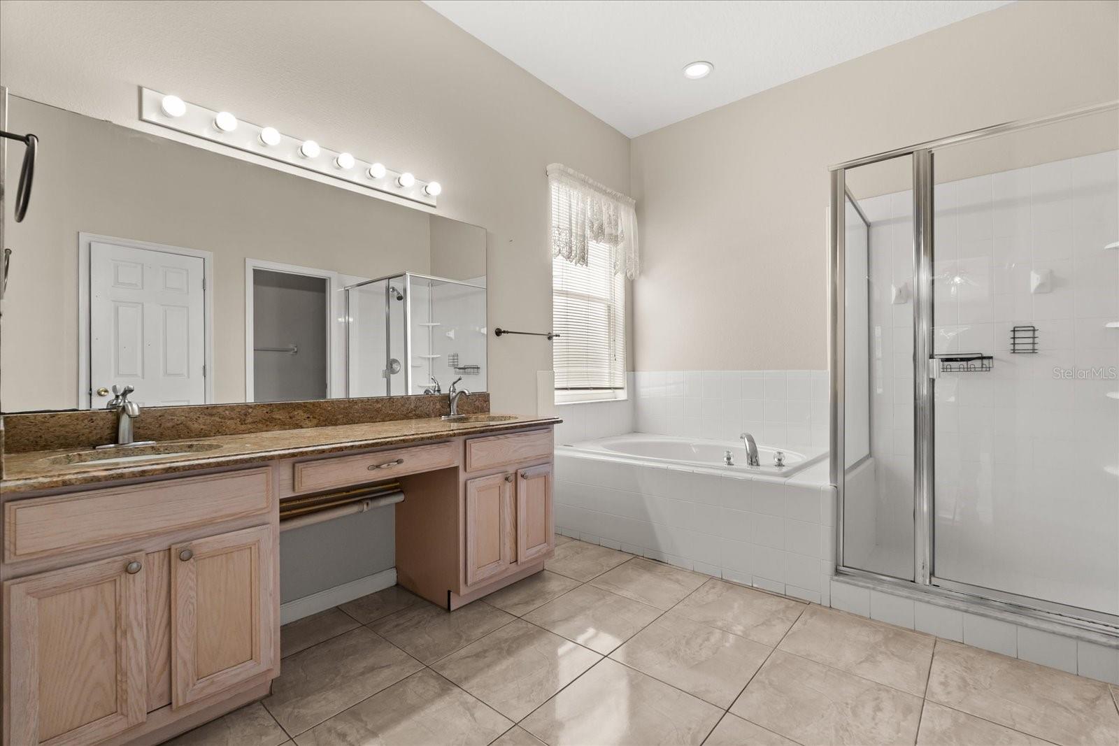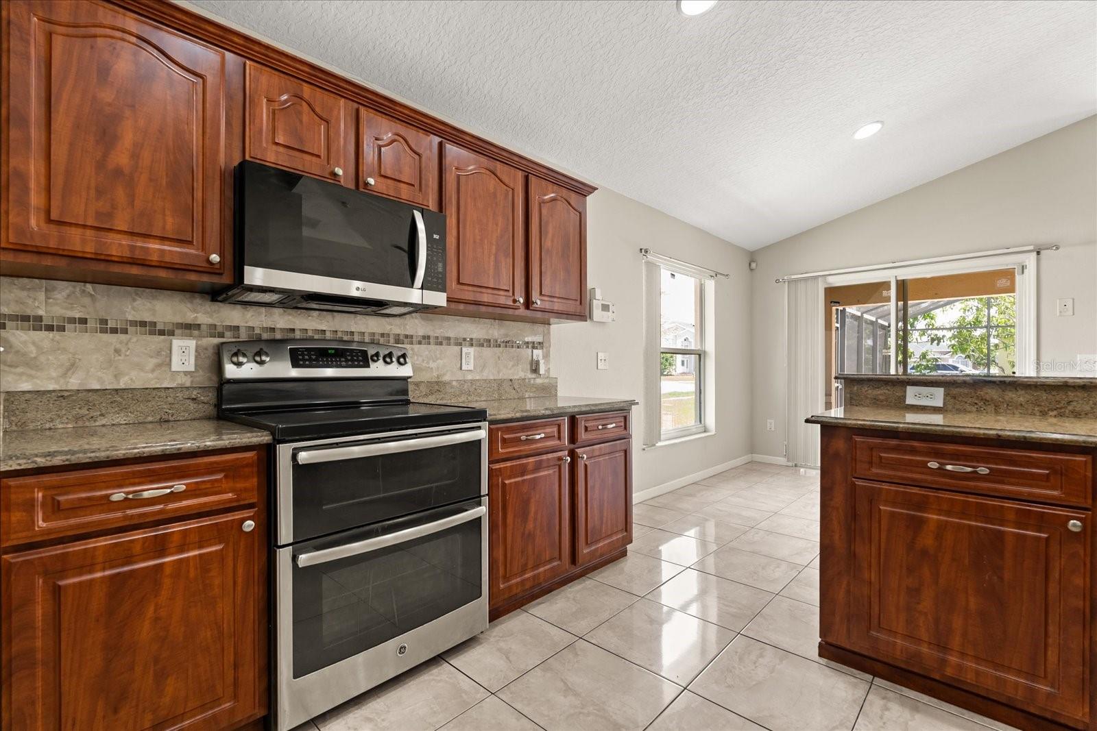 Welcome to this move-in ready pool home featuring 4 bedrooms and 3 bathrooms, situated on a spacious corner lot with a newer A/C (2020) and roof (2019). With 2,383 sqft of living space, the open floor plan is filled with natural light and perfect for entertaining. The upgraded kitchen boasts soft-close cabinets, granite countertops, stainless steel appliances, a walk-in pantry, and a large island. The main-level primary suite includes a granite dual-sink vanity, soaking tub, separate shower, and walk-in closet. Upstairs offers three generously sized bedrooms, each with a walk-in closet, and a full bath. Step outside to a screened-in patio and in-ground pool, perfect for relaxing or hosting. Additional highlights include a 2-car garage, mature landscaping, tile and vinyl flooring throughout, block construction, and a low HOA. Conveniently located near Disney, Universal, SeaWorld, major highways, Orlando International Airport, shopping, and dining.