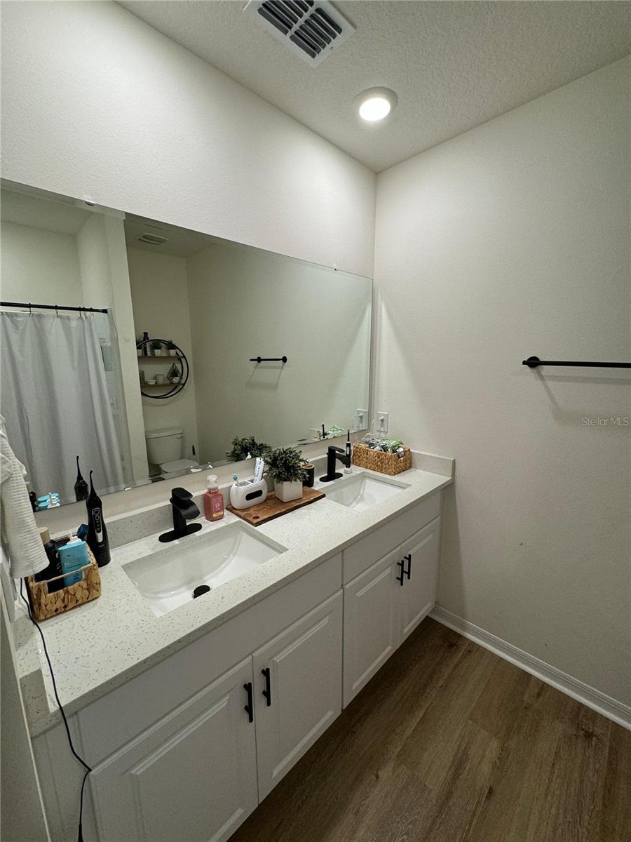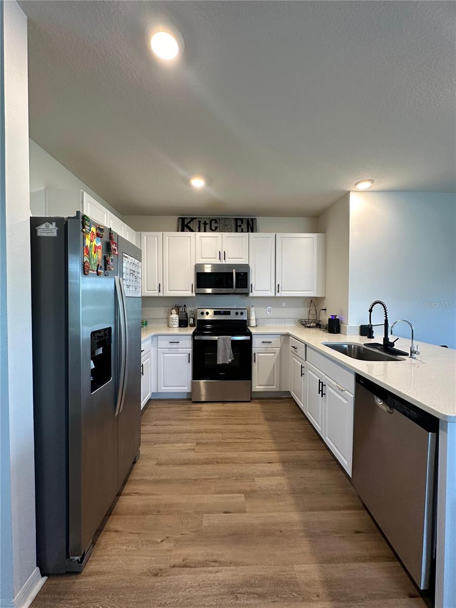 This 2023-built 3-bed, 2-bath home with a 2-car garage offers stylish upgrades and flexible living. Features include luxury vinyl flooring, new kitchen and bathroom countertops, updated faucets, and a mini-split AC in the garage? Ideal for a gym or workspace. Located in a resort-style community with a clubhouse, fitness center, pool, tennis courts, park, and playground. Currently leased through 11/16/25, with the tenant willing to vacate early if needed? Great for both investors and owner-occupants. Disclosure: Listing agent is also one of the owners of the property.