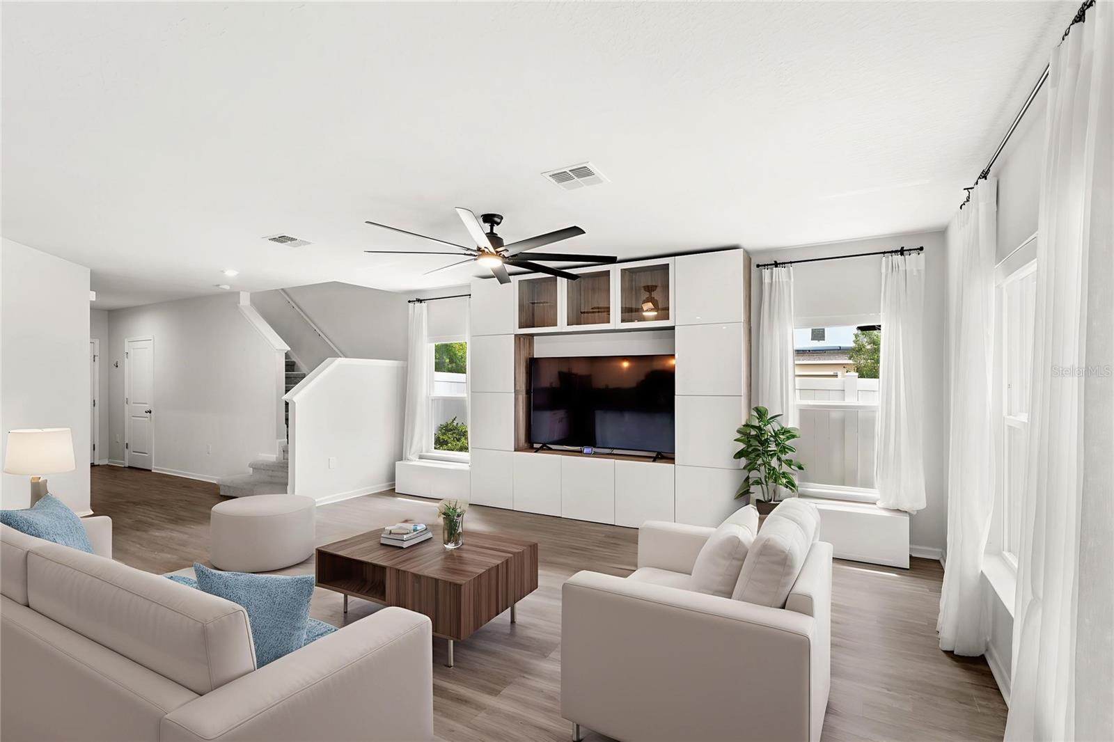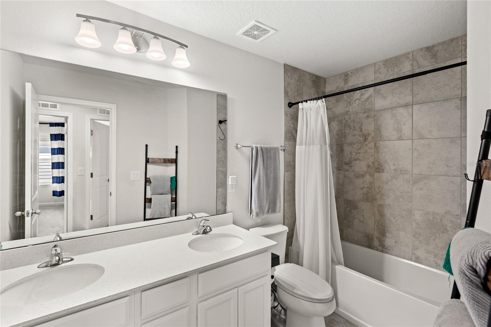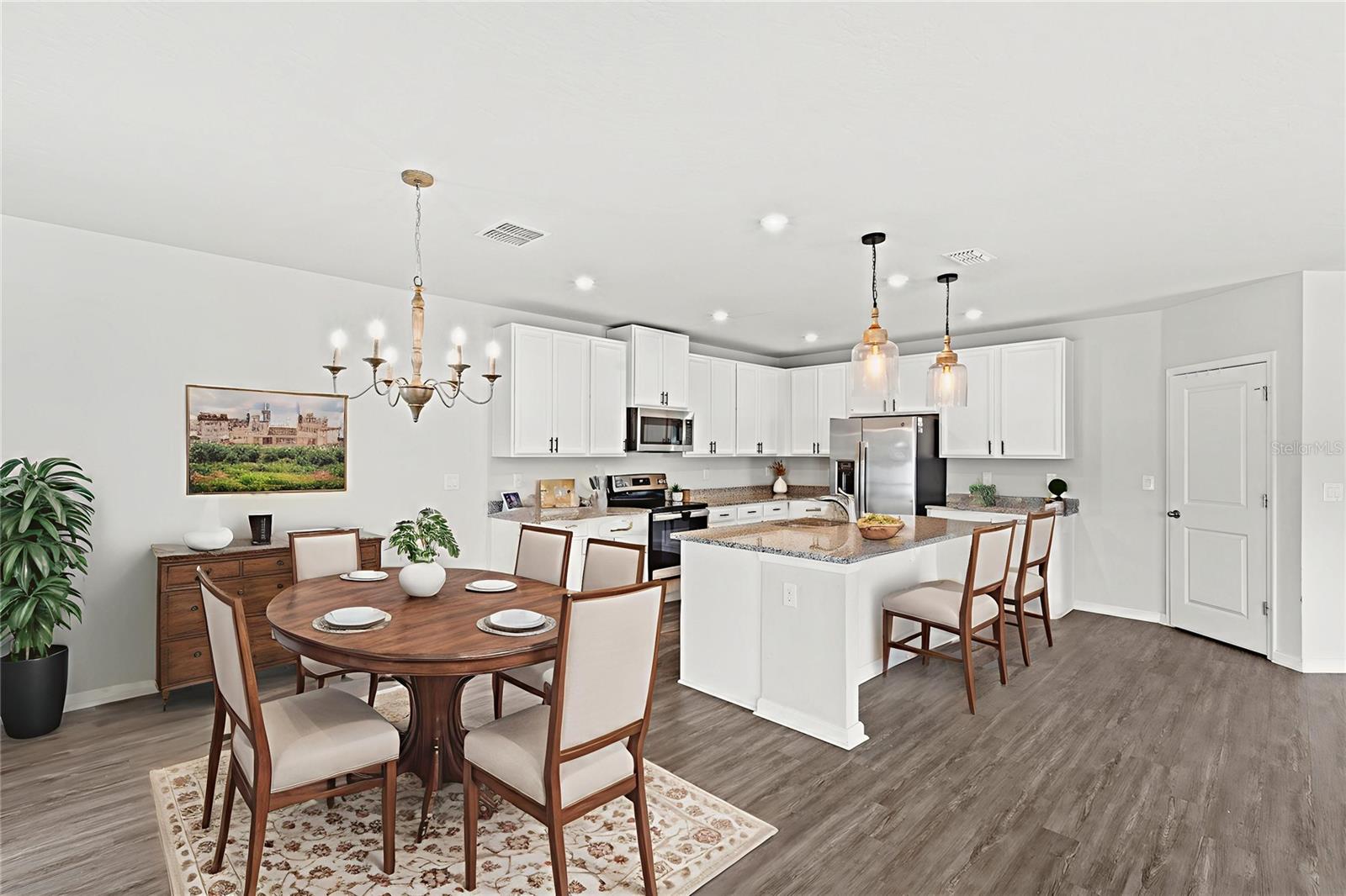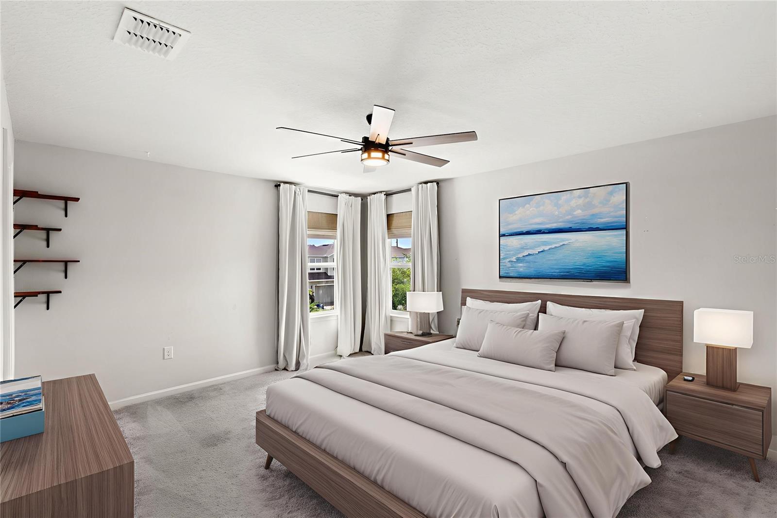 Schedule your showing now, this is the one you’ve been waiting for! Welcome to your future home in the peaceful, gated community of Creekside. This beautiful 5-bedroom, 2.5-bathroom home was built in 2020 and offers 2,370 square feet of stylish, energy-efficient living just minutes from Lake Nona’s Medical City, top-rated schools, and all the shopping and dining you could want. Inside, you’ll love the open-concept design that seamlessly connects the kitchen, dining, and living areas—perfect for hosting guests or cozy nights in. The kitchen features solid surface countertops, wood cabinetry, and a bright breakfast nook that makes every morning feel like a fresh start. Upstairs, a spacious loft gives you options—a game room, home office, or media space. The owner’s suite is a true retreat with dual walk-in closets and a spa-like bath with double sinks and a walk-in shower with seating. This home is also packed with smart savings: ENERGY STAR appliances, windows, and a smart thermostat help lower your monthly bills while keeping you comfortable all year round. Creekside offers resort-style amenities including a pool, clubhouse, and playground, all within a quiet, gated neighborhood. Don’t wait—homes like this near Lake Nona don’t last long. Schedule your private showing today and make it yours!