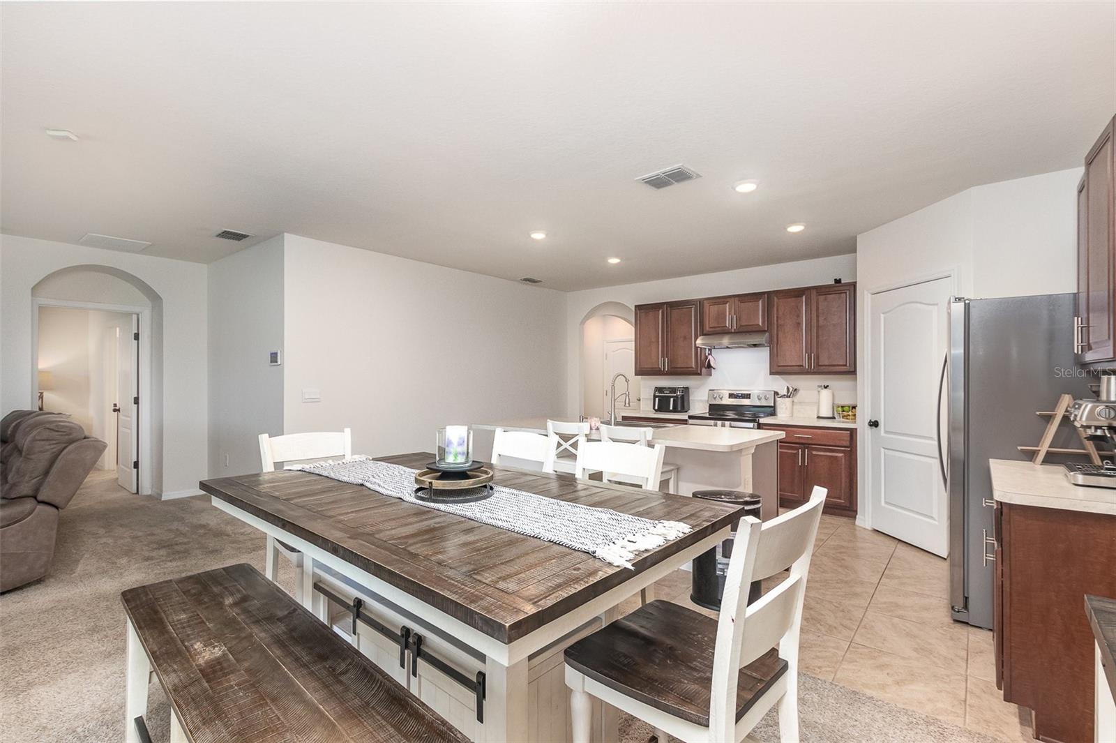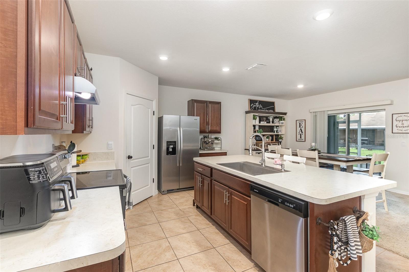 Welcome to 1010 Morvan Lane, a stunning 4-bedroom, 2-bathroom home built in 2021 and located in the vibrant Poinciana Village community. This beautifully maintained residence combines modern design, functionality, and style—perfect for families, professionals, or anyone seeking the perfect blend of comfort and convenience. Step inside and fall in love with the bright, open-concept floor plan. The front of the home offers three spacious bedrooms and a full bath—ideal for guests, a home office, or a playroom. Toward the back, you’ll find the true heart of the home: a modern kitchen featuring a large island with bar seating, stainless steel appliances, a walk-in pantry, and elegant wood cabinetry that seamlessly flows into the dining and living areas. The private primary suite is tucked away for ultimate relaxation, featuring a walk-in closet and a spa-inspired en suite bathroom with dual vanities and a large walk-in shower. Step outside to enjoy Florida’s year-round sunshine in the screened-in, enclosed patio—perfect for morning coffee, family gatherings, or relaxing evenings. Residents of Poinciana Village enjoy access to fantastic amenities including a community pool, fitness center, playground, and walking trails. Plus, you’re just minutes from the Florida Turnpike, downtown Kissimmee, and a variety of shopping, dining, and entertainment options. This move-in-ready gem has everything you’ve been searching for—modern style, great community, and a prime location. Don’t wait—schedule your private showing today and experience this home for yourself!