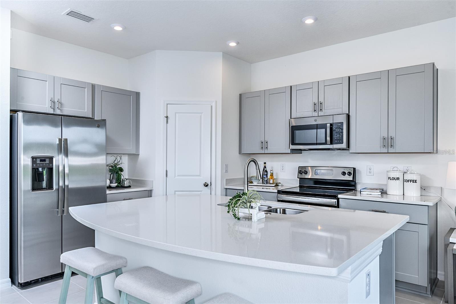 Short Sale. ***BEST SHORTSALE OPPORTUNITY for a BUYER***LOW HOA FEES****ADD CLOSING COSTS IN YOUR OFFER*** Welcome to this stunning, fully remodeled former model! Bright, open-concept 3 bedroom 2.5 bath townhome showcases quartz countertops, stainless steel appliances, and tile flooring throughout the main level. A spacious island kitchen, pantry and breakfast bar flow seamlessly into the great room, which opens via sliding glass doors to a private patio—perfect for indoor-outdoor living. Upstairs you’ll find a serene owner’s suite with dual vanity and walk-in closet, two guest bedrooms, a full bath, plus a dedicated laundry room. Modern finishes run throughout: whole-house blinds, UV lighting in bathrooms, recessed lighting and chic tile accents. This turnkey home includes ample storage—from under-stair cubby to walk-in pantry—and a one-car garage. Located in the vibrant Reedy Reserve community, residents enjoy a resort-style pool, tot lot, dog park, clubhouse, spa, sidewalks and street lighting. This walkable, family-friendly neighborhood is just minutes from shopping (Bellalago, The Loop, Publix), dining, outdoor recreation (lake boat ramps, trails, Disney Wilderness Preserve), top-rated schools, and major theme parks. Commuters will appreciate easy access to Orlando Gateway, Kissimmee Gateway airports and major highways.
