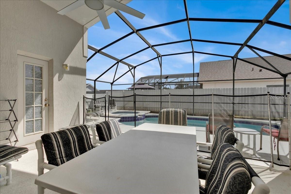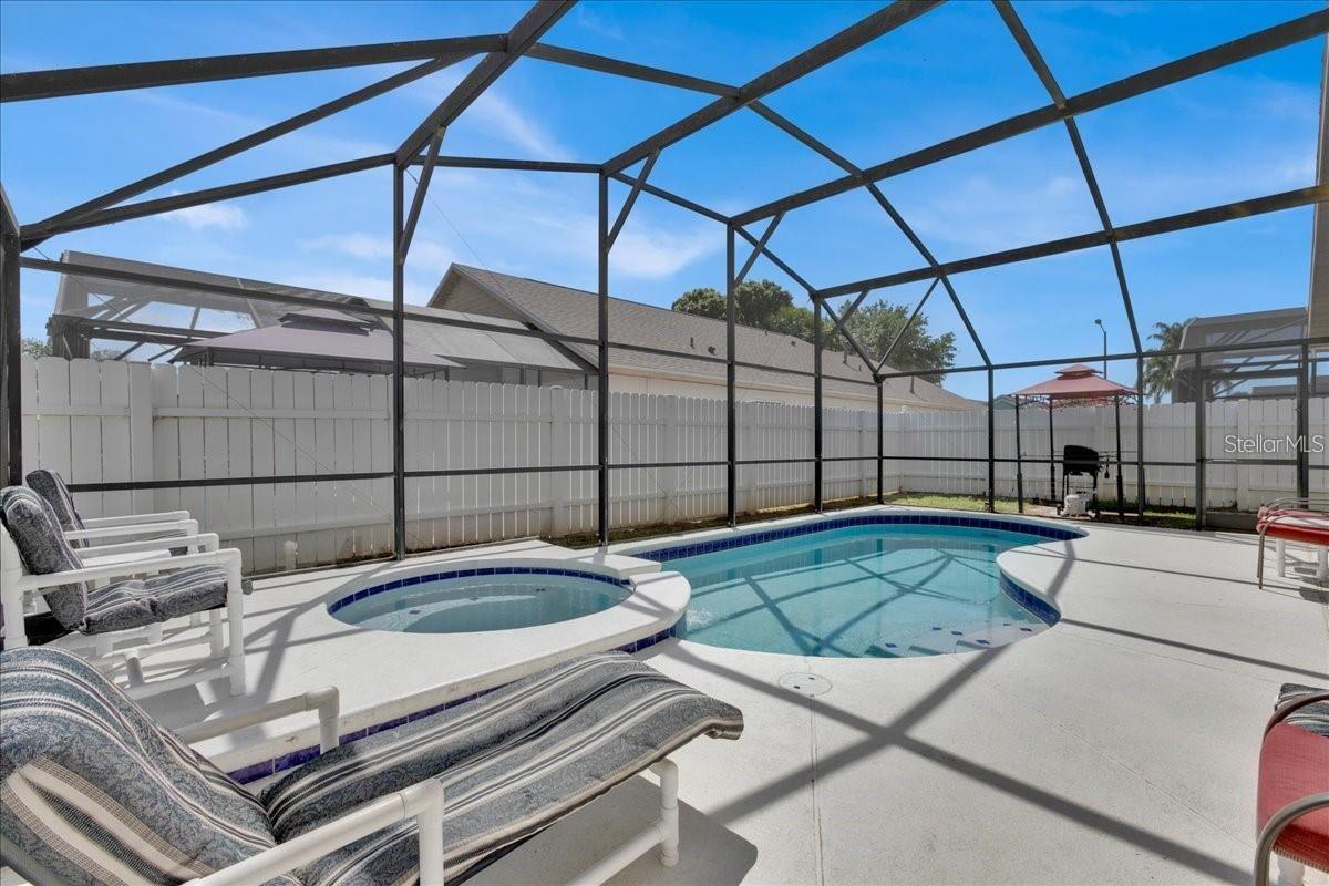 This beautiful five-bedroom, four-bath single-family home in the Indian Creek community offers an inviting open floor plan with a formal dining area, ample living space, and a kitchen with stainless steel appliances. The living room enjoys plenty of natural light through its high ceilings, and outside, you can relax on the screened-in lanai by your large private pool and spa. Moreover, the primary bedroom includes an en-suite bath with a tub, separate shower and double vanity. The garage has been transformed into a game room with a pool table and table football game for your entertainment. Indian Creek provides amenities, including a playground, tennis court and basketball court, all conveniently just minutes from the famous Margaritaville resort and major theme parks, shopping and dining. Whether you're looking for a primary residence, a second home, or a short-term rental investment, this property has much to offer. New pool heater just fitted this year. Air-conditioning unit replaced in 2017. Roof in 2021. Tankless water heater in 2021. The property also benefits from the added advantage of solar panels fitted in 2021 PAID OFF. with the addition of a new roof and tankless water heater, making this a green home and extremely economical to maintain, also reducing your carbon footprint and providing long-term savings on monthly energy costs.
