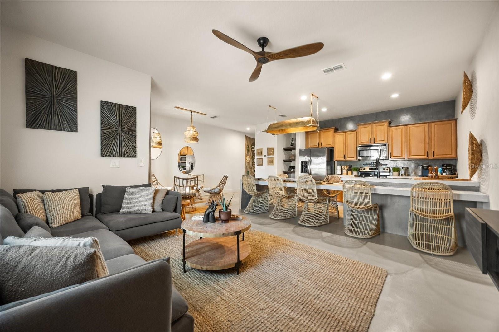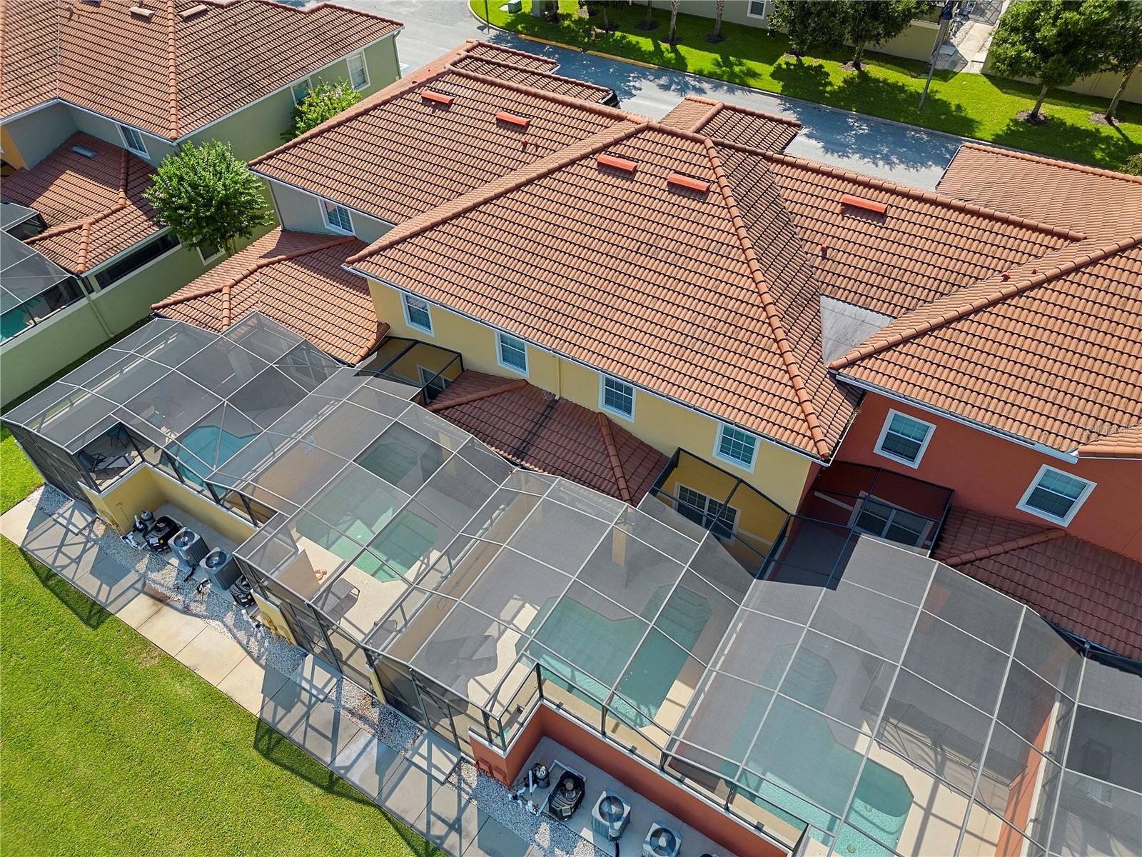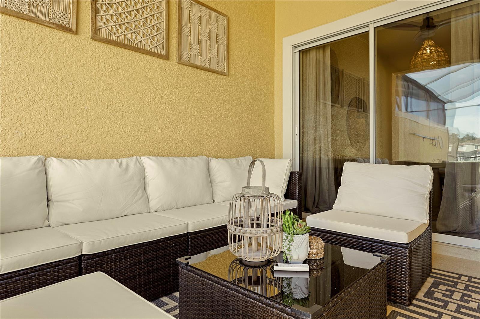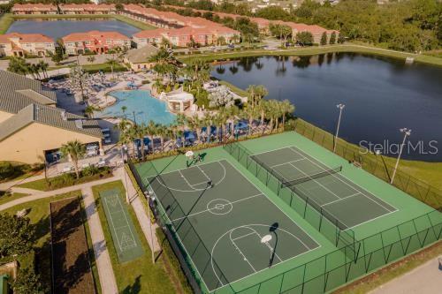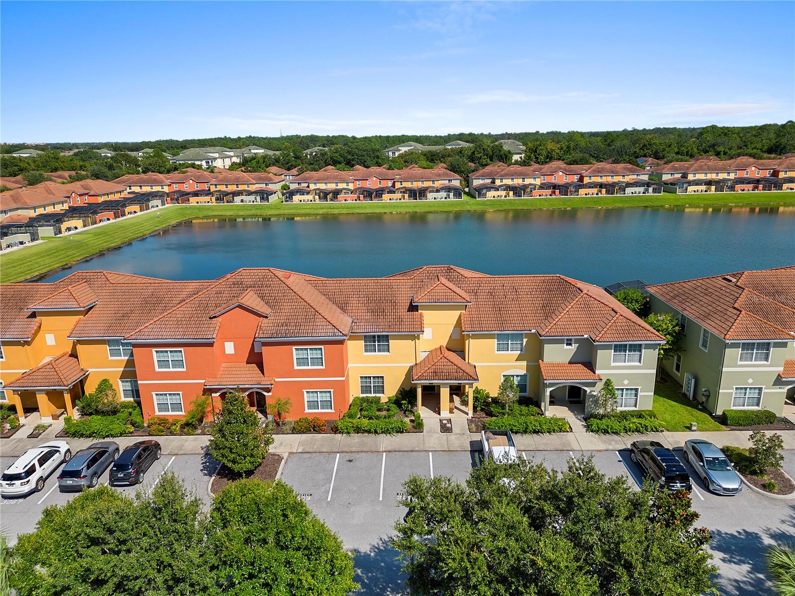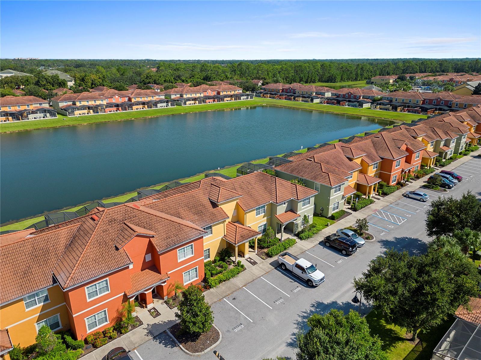Welcome to a beautifully designed, tastefully remodeled, fully furnished 4-bedroom/3 bathrooms townhouse located in a highly desirable gated community Paradise Palms Resort-just minutes from Disney and major attractions. This turn-key property is currently a successful Airbnb with exceptional 5 star reviews that can be purchased as primary residence or investment property as it's zoned for short term rentals. Step inside the two-story home and be welcomed by an open concept floor plan. The thoughtfully curated interior features natural textures and tones, concrete counter tops and concrete floors and high-end Boho decor that instantly make guests feel at home. Enjoy a chef-style kitchen with stainless steel appliances, a large concrete waterfall-edge island that sits eight. The open concept layout flows into a spacious living area with two sitting areas, perfect for hosting family or group stays. Bedrooms include three designer-inspired king suites and one additional bedroom with 2 twin beds, all decorated with the feel of a boutique hotel level. One bedroom and full bathroom are conveniently located on the first floor. Relax in the private screened in patio with lake views, swim in private heated pool or sip your morning coffee in the cozy rattan sitting nook. The resort offers a great amount of amenities, giant community pool, movie theater, tennis court, gym and more to keep guests entertained. HOA fee includes internet and cable, and also HOA covers home owner's insurance for exterior of the building so you only have to obtain HO-6 coverage. Whether you are looking for a revenue generating vacation rental or a stylish personal retreat, this home is ready to impress.