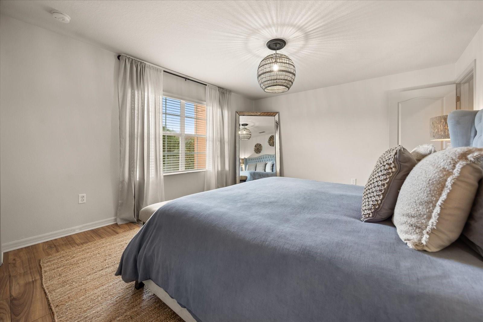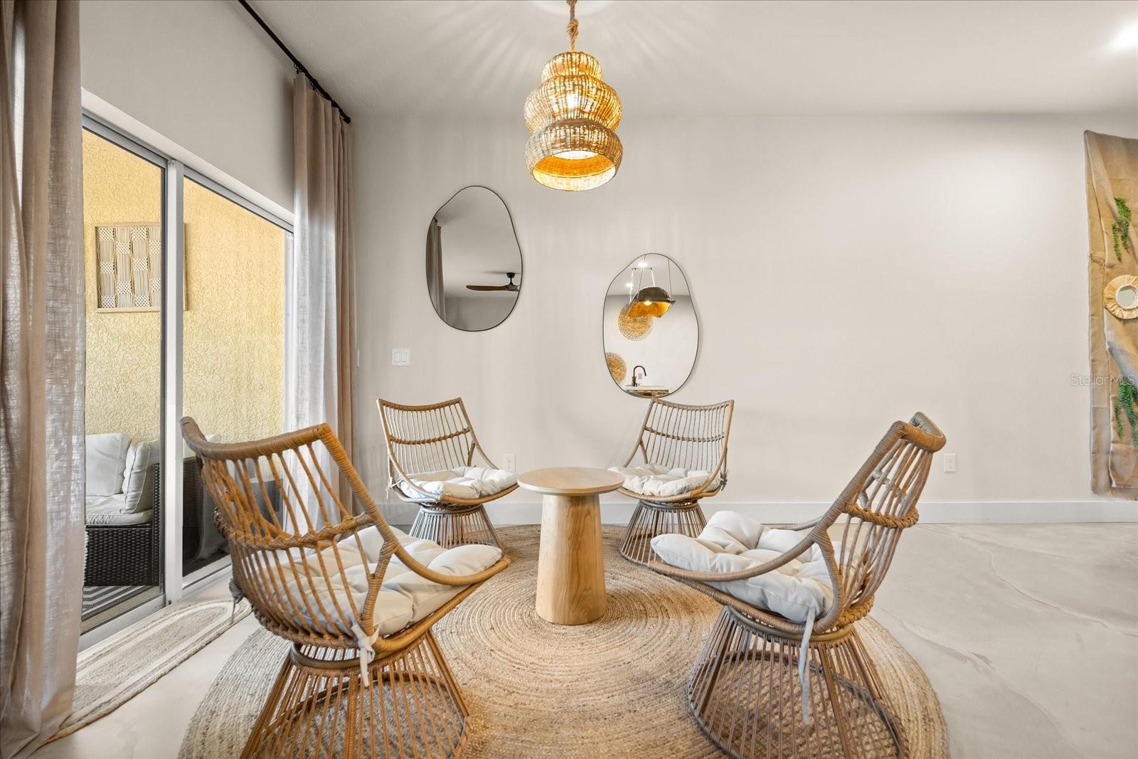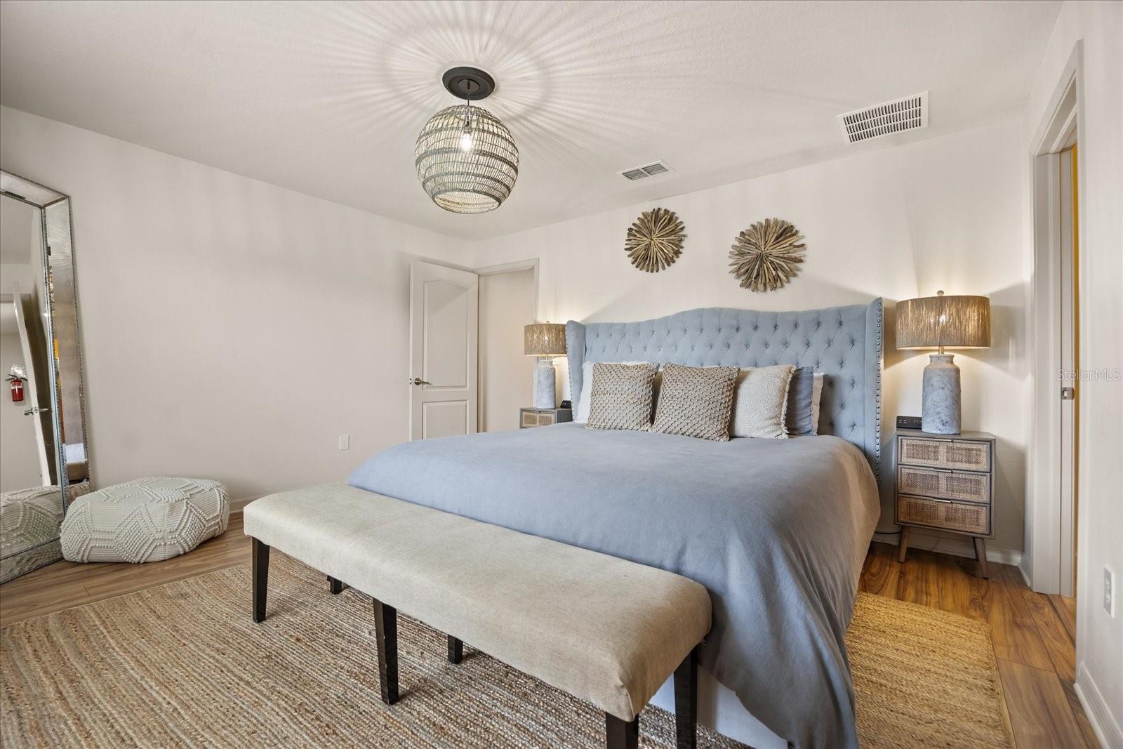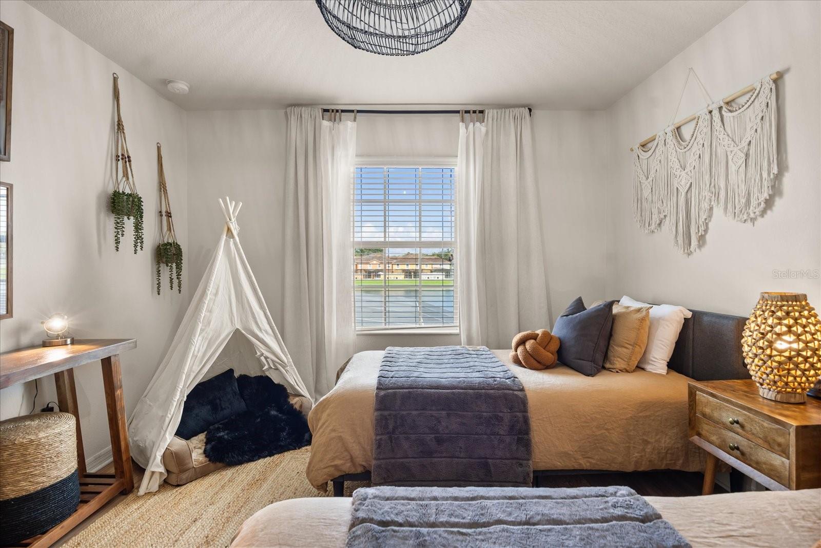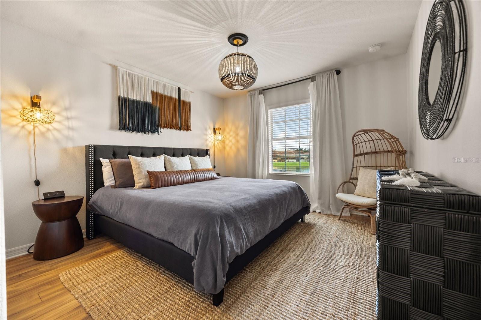Welcome to a beautifully designed, tastefully remodeled, fully furnished 4-bedroom/3 bathrooms townhouse located in a highly desirable gated community Paradise Palms Resort-just minutes from Disney and major attractions. This turn-key property is currently a successful Airbnb with exceptional 5 star reviews that can be purchased as primary residence or investment property as it's zoned for short term rentals. Step inside the two-story home and be welcomed by an open concept floor plan. The thoughtfully curated interior features natural textures and tones, concrete counter tops and concrete floors and high-end Boho decor that instantly make guests feel at home. Enjoy a chef-style kitchen with stainless steel appliances, a large concrete waterfall-edge island that sits eight. The open concept layout flows into a spacious living area with two sitting areas, perfect for hosting family or group stays. Bedrooms include three designer-inspired king suites and one additional bedroom with 2 twin beds, all decorated with the feel of a boutique hotel level. One bedroom and full bathroom are conveniently located on the first floor. Relax in the private screened in patio with lake views, swim in private heated pool or sip your morning coffee in the cozy rattan sitting nook. The resort offers a great amount of amenities, giant community pool, movie theater, tennis court, gym and more to keep guests entertained. HOA fee includes internet and cable, and also HOA covers home owner's insurance for exterior of the building so you only have to obtain HO-6 coverage. Whether you are looking for a revenue generating vacation rental or a stylish personal retreat, this home is ready to impress.