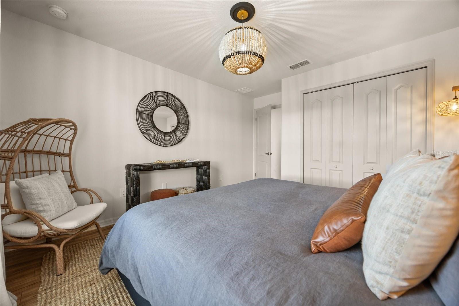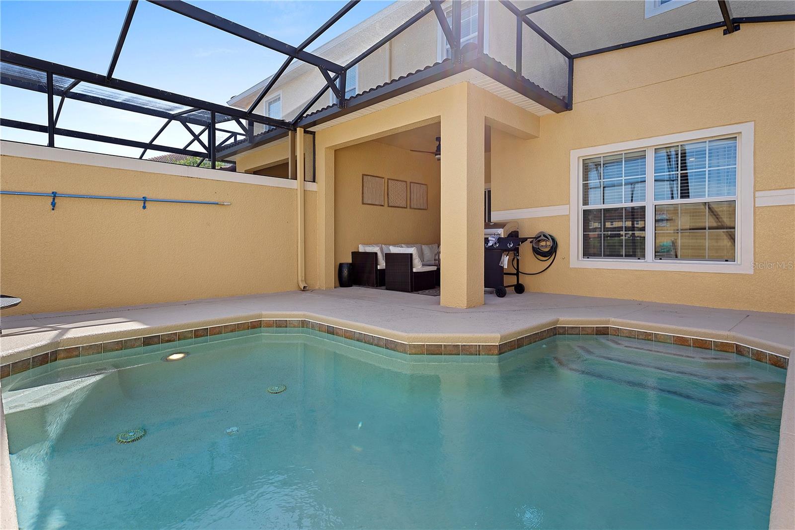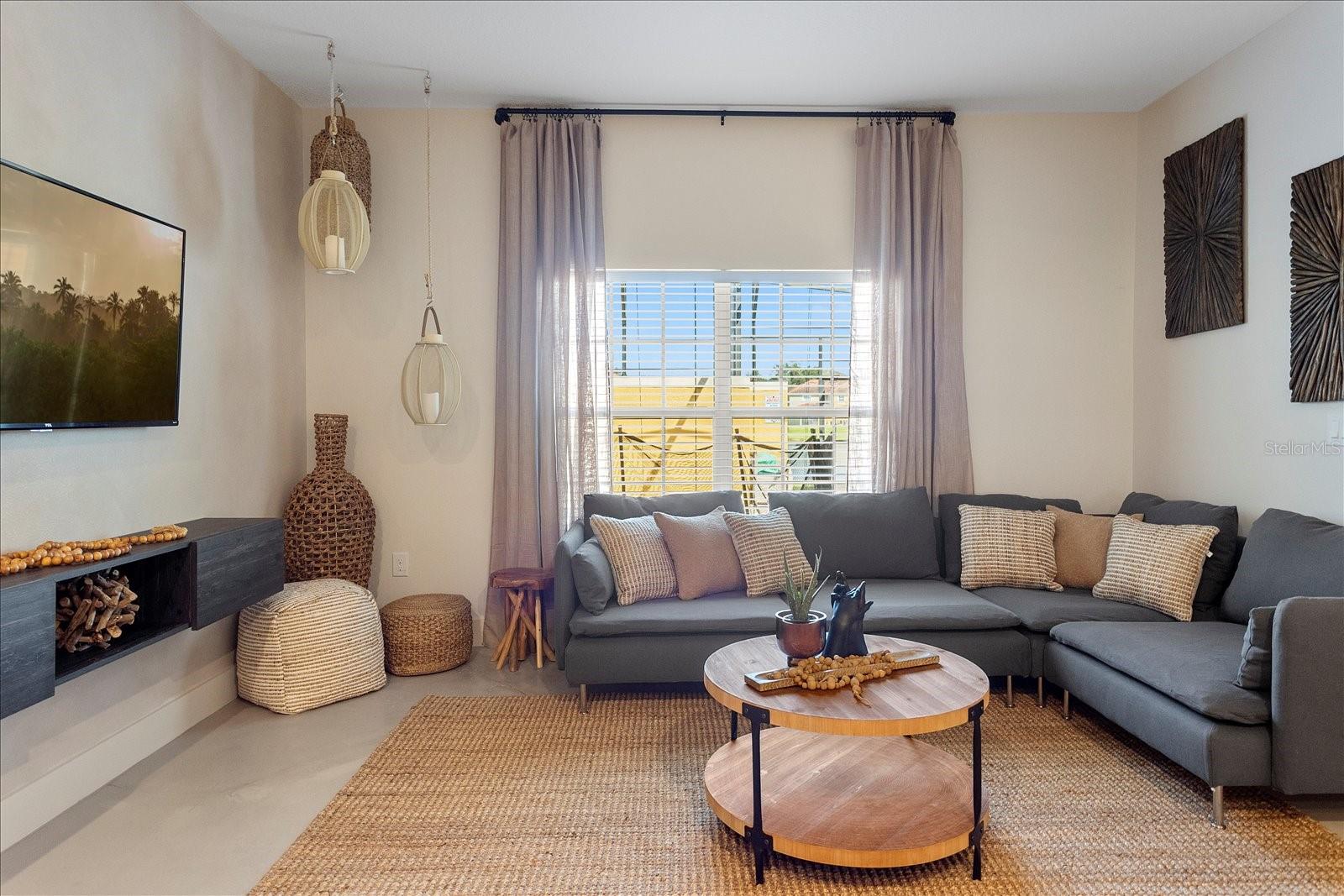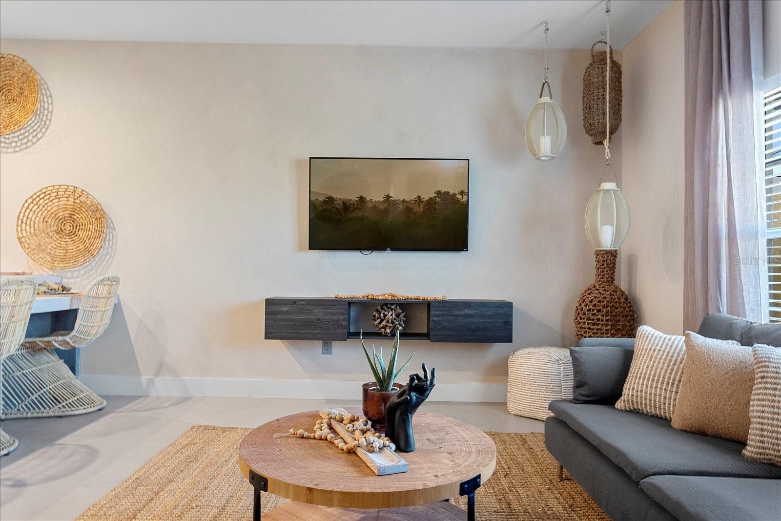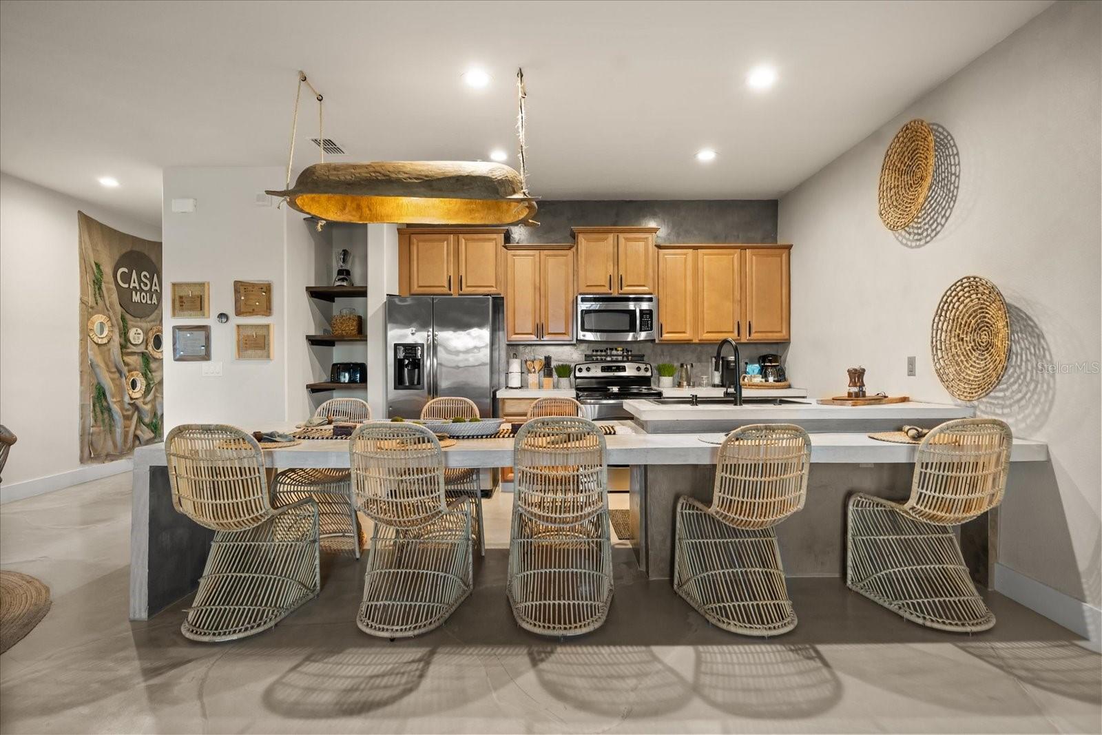 Welcome to a beautifully designed, tastefully remodeled, fully furnished 4-bedroom/3 bathrooms townhouse located in a highly desirable gated community Paradise Palms Resort-just minutes from Disney and major attractions. This turn-key property is currently a successful Airbnb with exceptional 5 star reviews that can be purchased as primary residence or investment property as it's zoned for short term rentals. Step inside the two-story home and be welcomed by an open concept floor plan. The thoughtfully curated interior features natural textures and tones, concrete counter tops and concrete floors and high-end Boho decor that instantly make guests feel at home. Enjoy a chef-style kitchen with stainless steel appliances, a large concrete waterfall-edge island that sits eight. The open concept layout flows into a spacious living area with two sitting areas, perfect for hosting family or group stays. Bedrooms include three designer-inspired king suites and one additional bedroom with 2 twin beds, all decorated with the feel of a boutique hotel level. One bedroom and full bathroom are conveniently located on the first floor. Relax in the private screened in patio with lake views, swim in private heated pool or sip your morning coffee in the cozy rattan sitting nook. The resort offers a great amount of amenities, giant community pool, movie theater, tennis court, gym and more to keep guests entertained. HOA fee includes internet and cable, and also HOA covers home owner's insurance for exterior of the building so you only have to obtain HO-6 coverage. Whether you are looking for a revenue generating vacation rental or a stylish personal retreat, this home is ready to impress.
