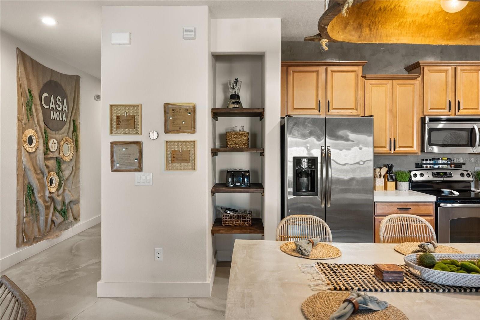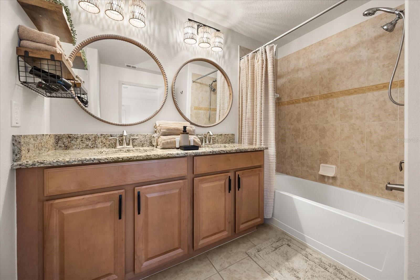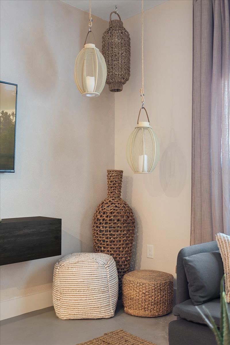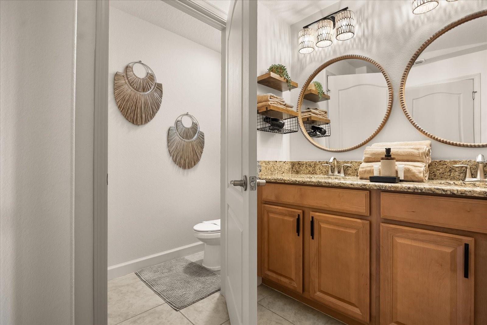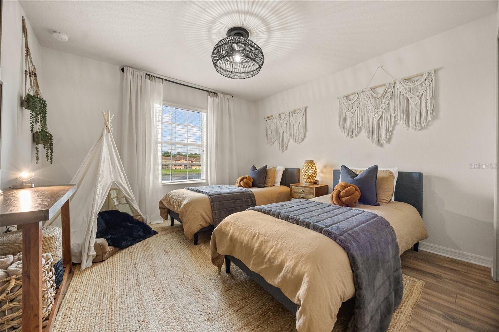 Welcome to a beautifully designed, tastefully remodeled, fully furnished 4-bedroom/3 bathrooms townhouse located in a highly desirable gated community Paradise Palms Resort-just minutes from Disney and major attractions. This turn-key property is currently a successful Airbnb with exceptional 5 star reviews that can be purchased as primary residence or investment property as it's zoned for short term rentals. Step inside the two-story home and be welcomed by an open concept floor plan. The thoughtfully curated interior features natural textures and tones, concrete counter tops and concrete floors and high-end Boho decor that instantly make guests feel at home. Enjoy a chef-style kitchen with stainless steel appliances, a large concrete waterfall-edge island that sits eight. The open concept layout flows into a spacious living area with two sitting areas, perfect for hosting family or group stays. Bedrooms include three designer-inspired king suites and one additional bedroom with 2 twin beds, all decorated with the feel of a boutique hotel level. One bedroom and full bathroom are conveniently located on the first floor. Relax in the private screened in patio with lake views, swim in private heated pool or sip your morning coffee in the cozy rattan sitting nook. The resort offers a great amount of amenities, giant community pool, movie theater, tennis court, gym and more to keep guests entertained. HOA fee includes internet and cable, and also HOA covers home owner's insurance for exterior of the building so you only have to obtain HO-6 coverage. Whether you are looking for a revenue generating vacation rental or a stylish personal retreat, this home is ready to impress.