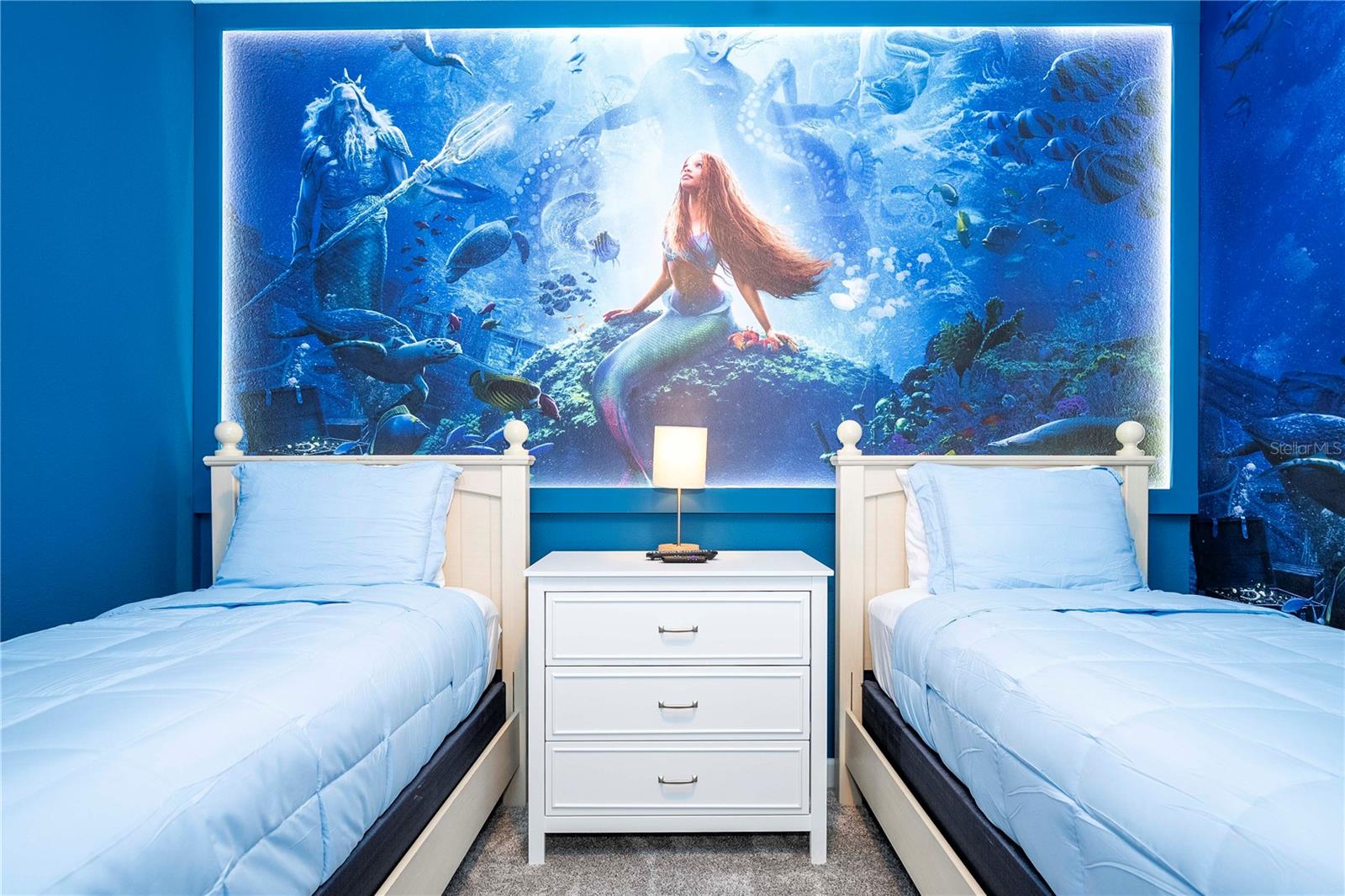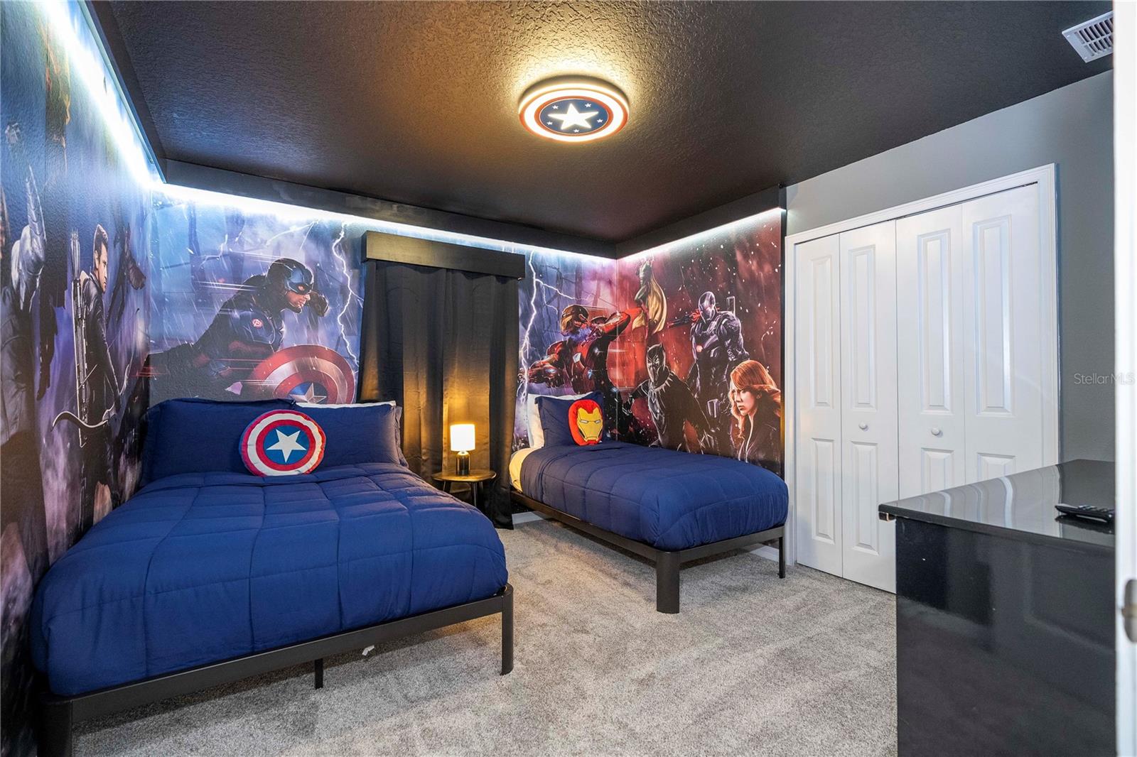 Welcome to 3193 Pequod Place, a 5-bedroom, 4 bath FULLY FURNISHED home in the AIRBNB friendly resort community of Storey Lake Resort. Located LESS THAN 20 MINUTES FROM DISNEY WORLD, this Mediterranean-style END UNIT with convenient access to the community's guard gated entrance. One of the home's highlights is the PRIVATE POOL, complemented by a screened-in lanai and sliding glass doors that create an indoor-outdoor living space. The kitchen features granite counters, stainless appliances, and an island with additional seating. This home features Little Mermaid and Avengers THEMED BEDROOMS, appealing to a broad range of vacationers and enhancing rental attractiveness. Enjoy the RESORT-STYLE COMMUNITY AMENITIES including a clubhouse, zero-entry pool, splash pad, LAZY RIVER, sports courts, exclusive restaurant, bar, gym, and more. HOA covers cable, high-speed internet, daily trash pick-up, exterior pest control, lawn care, and grounds maintenance for hassle-free ownership—a prime investment opportunity in a sought-after resort VACATION HOME community. Don't miss out; book your showing today!